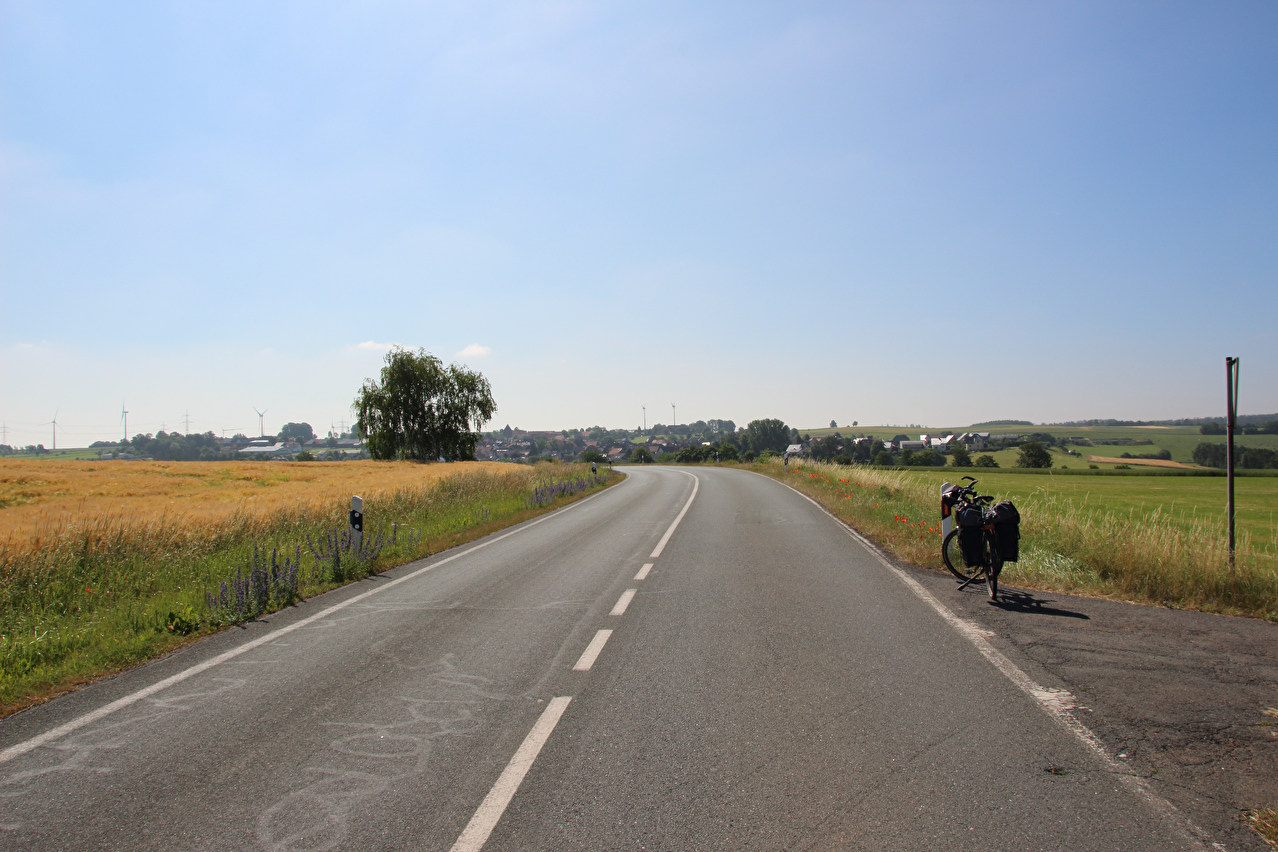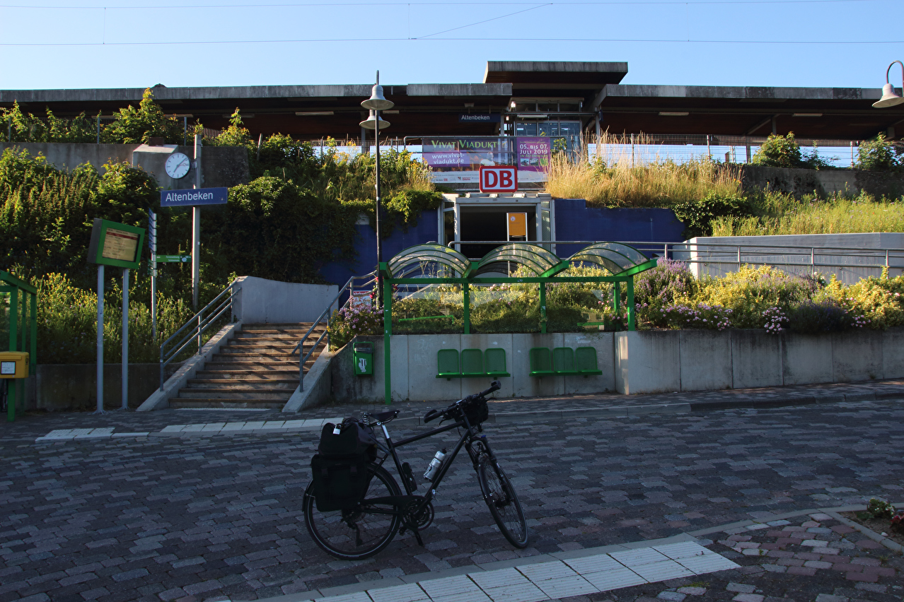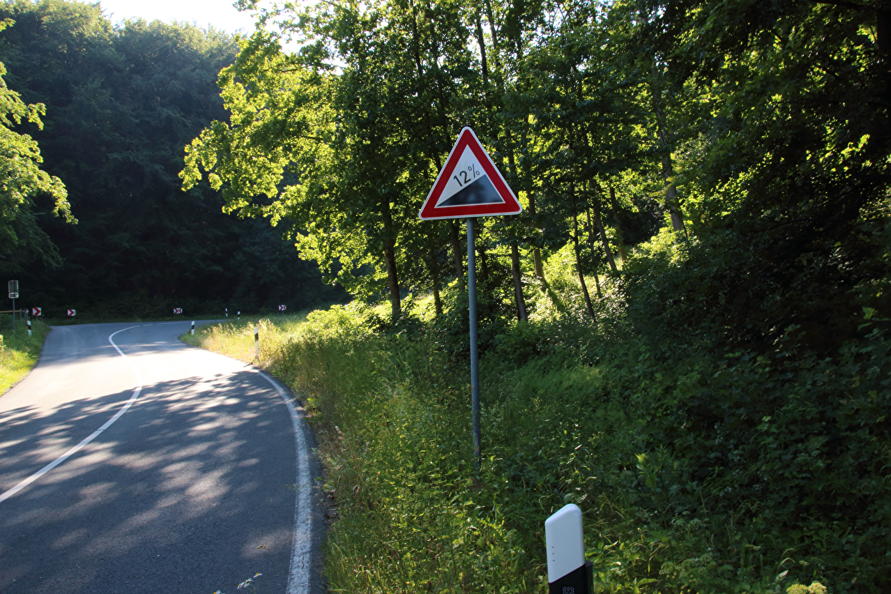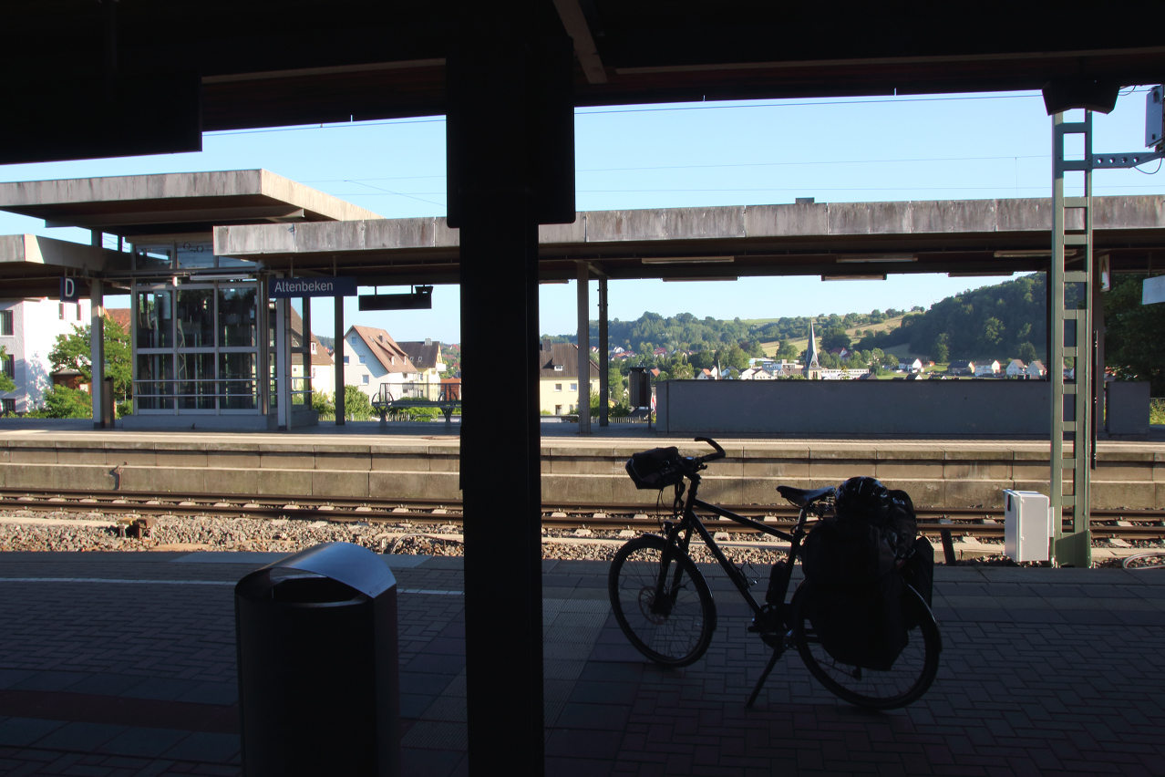 Beschreibung | Die Nacht verlief etwas unruhig, da von der Kirche gegenüber dem Hotel auch während der Nachtruhe von 22:00–06:00 Uhr alle Viertelstunde der Glockenschlag ins Zimmer dröhnte. In Essentho schert sich die katholische Kirche offenbar nicht um geltendes deutsches Recht (Nachtruhe) und zieht bzw. läutet gnadenlos und unbarmherzig ihr Ding durch. Andererseits hat es der Hotelbetreiber aber auch offenbar bislang unterlassen, dagegen juristisch vorzugehen, obwohl laut einem Urteil vom Bundesverwaltungsgericht während der Nachtruhe die Glocken zu schweigen haben, da deren Lautstärke in aller Regel über den zulässigen Grenzwerten liegt. Diese Etappe begann am höchsten Punkt der Etappe, führte aber erst mal bergab nach Niedermarsberg. Dort wurde ein Supermarkt aufgesucht und eine Kleinigkeit gegessen. Währenddessen löste die Sonne die letzten morgentlichen Wolken auf und bei wolkenlosem Himmel blieb es dann auch. So richtig begann diese Etappe auch erst mit dem ersten Anstieg der Etappe von Niedermarsberg nach Erlinghausen. Nach der Ortsdurchfahrt wurde auf der K89 der höchste Sattelpunkt der Etappe, das " gefühlte Dach der Etappe" auf 395 m ü.NHN erreicht. Im Orpetal erfolgte von Kohlgrund bis zum Abzweig nach Rhoden eine inverse Streckenwiederholung. Dieser Streckenabschnitt war in der Gegenrichtung bereits am 23.06.2014 gefahren worden. Von Kohlgrund bis Bad Driburg verlief die Etappe mit Generalkurs Nord. Nach dem Mittagessen in Wrexen wurde zum zweiten Mal die Diemel überquert. In Scherfede wurde das Diemeltal Richtung Norden verlassen. Nach einem kurzen Stück auf der bundesstraßenähnlich ausgebauten L828 zwischen Scherfede und Bonenburg wurde eine weitere Fahrt auf dieser Straße bis Willebadessen vermieden. Von Borlinghausen führt ein ausgeschilderter asphaltierter Radweg mit etwas Abstand parallel zur L828 nach Willebadessen. Von Willebadessen führt die K19 mit einer steilen Rampe nach Altenheerse. Hier weist die Radroute jedoch eine noch steilere Rampe auf, weshalb diese nicht gewählt wurde. In Dringenberg lag die nächste steile Rampe, bevor die lange Abfahrt nach Bad Driburg folgte. Auch in dieser Abfahrt wurde an Stelle der bundestraßenähnlich ausgebauten L954 ein parallel verlaufender asphaltierter Radweg genutzt. Die Einfädelung auf die K18 über das Eggegebirge (kurz: die Egge) gestaltete sich in Bad Driburg etwas schwierig. Auf der K18 begann dann der letzte längere Anstieg dieser Tour, der mit den vier Kehren nochmal etwas Bergfahrgefühl zum Ende der Tour hin vermittelte. Die Beschilderung für den bergab fahrenden Verkehr oberhalb der vier Kehren ist total übertrieben. Diese Straße ist nicht "besonders gefährlich". Es handelt sich schließlich nicht um eine derart trassierte Straße oder um solche Kehren. Die Straße ist schlicht als Bergstraße trassiert und die Kehren sind nicht besonders eng oder unübersichtlich. Mit der Passhöhe der K18 auf 393 m ü.NHN wurde der zweithöchste und gefühlt letzte Sattelpunkt der Etappe passiert. Die Abfahrt nach Buke beinhaltet eine unvermeidliche Lückenergänzung auf der B64, bevor auf eine Nebenstrecke nach Buke abgebogen werden kann. Der letzte Sattelpunkt der Etappe zwischen Buke und Altenbeken auf dem Radweg entlang der L828 fiel nicht mehr so richtig auf. Das Tourende in Altenbeken bot wie schon bei der Anreise eine Abreise ohne Umstieg mit der S-Bahn nach Hannover. Von Altenbeken aus wurde der Eggehauptkamm mit der Bahn im Rehbergtunnel unterquert. Für eine Zweitagestour ist die Egge durchaus geeignet. Trotz der geringen Höhe der Egge kommen genug Höhenmeter bergauf zusammen. Etwas schade ist, dass die Pässe über die Egge keine Namen haben und auf den Passhöhen auch keine Passhöhenschilder stehen. Die 1. Etappe dieser Tour kommt auch als 1. Etappe einer Sauerlandtour in Betracht, da sie eine überschaubar kurze Anreise von Hannover mit der S-Bahn ohne Umstieg bietet und an der Grenze zwischen Egge und Sauerland endet. |
