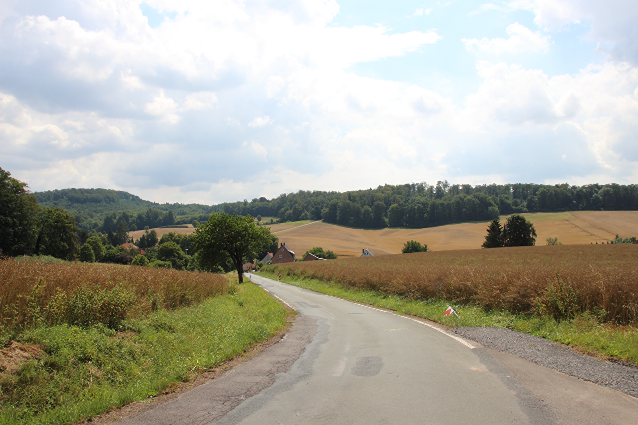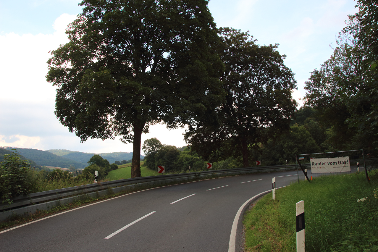 Beschreibung | Diese Tour war die letzte vor der Alpentour. Passend zur Alpentour, die größtenteils durch die Schweiz verlaufen sollte, bot die Fahrt auf der als Bergstraße trassierten Passstraße von Rühle nach Lütgenade durch die Rühler Schweiz einen allerersten zarten Vorgeschmack auf die kommenden Pässe. An dem Tag herrschte Nordwestwetterlage, die Kaltfront war aber schon durchgezogen. Daher war es für die Jahreszeit anfangs recht kühl und der Himmel etwas unaufgeräumt. Erst mit zunehmenden Wolkenlücken erwärmte sich die Luft. Auf dem Weg von Lütgenade nach Forst kam dann doch noch ein der Kaltfront nachgelagerter Schauer nieder, dessen Ende in einem Bushäuschen bei Forst abgewartet wurde. |