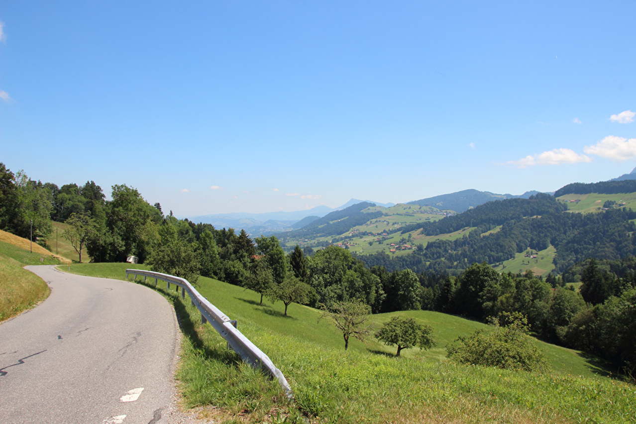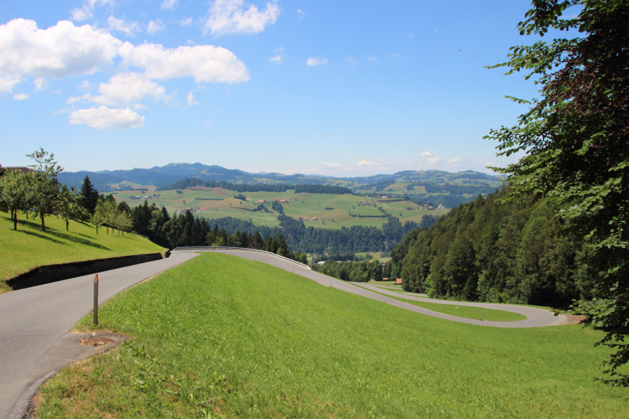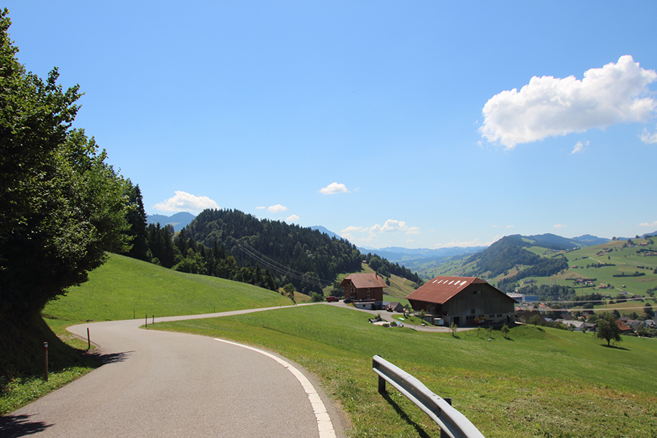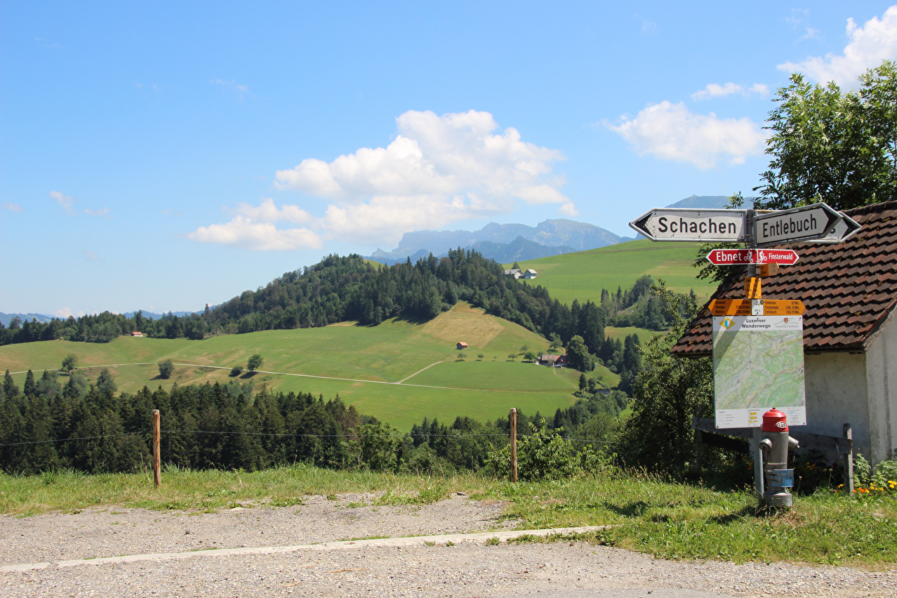 Beschreibung | Diese Etappe war bewusst kurz geplant, wobei die Höhenmeter bergauf zum Einrollen schon passten. Grund für die Kürze der Etappe war die extrem schlechte Erfahrung mit der Bahnanreise in die Schweiz (Hannover → Sargans) am 24.07.2017. Die Länge der Etappe hätte auch einen Start erst am Mittag erlaubt, wenn die Ankunft am Vortag extrem spät erfolgt wäre oder gar Zugverspätungen oder -ausfälle eine Übernachtung unterwegs irgendwo in Südwestdeutschland oder der Nordschweiz erfordert hätten und die Restanreise nach Luzern erst am diesem Vormittag erfolgt wäre. Der erste Pass dieser Tour ist so unscheinbar, dass er nicht einmal einen Namen hat. Dabei trennt er schon recht alpines Gelände im Süden vom ziemlich flachen Vorland im Norden. Somit führte diese Etappe erst mal aus den Alpen raus. Ab Schachen ging es dann wieder in die richtige Richtung, also bergauf und vor allem nach Süden wieder in Richtung Alpen. Der nördliche Teil der Emmentaler Alpen und insbesondere das Entlebuch und die westlich daran angrenzende Gebiete haben noch voralpinen Charakter, sind aber bei weitem nicht so flach wie das Luzerner Hinterland nördlich der Emmentaler Alpen. Bereits ab Malters und dann immer wieder mal kamen Lärm und Dreck von oben. Kampfjets, "Hornets" (McDonnell Douglas F/A-18) der Schweizer Armee waren auf Übungsflug in dem Gebiet unterwegs. Auf der Passhöhe fiel das Mittagessen aus. Der dortige Gasthof machte allen Ernstes Sommerferien! Also folgte gleich die Abfahrt nach Entlebuch (LU). Dort wurde erst mal ein Bäcker angesteuert, da das Hotel, in dem übernachtet werden sollte, erst am späten Nachmittag öffnete und im Ort am frühen Nachmittag auch sonst keine Gelegenheit für die Einnahme einer warmen Mahlzeit vorhanden war. Wettermäßig war diese Etappe eine recht heiße Angelegenheit. Die Sonne schien ungestört vom fast wolkenlosen Himmel und größere Höhen erreichte diese Etappe auch nicht. (LU) hinter dem Ortsnamen Entlebuch steht für "Kanton Luzern" und dient hier der Unterscheidung des Ortes von Naturraum Entlebuch. Diese zweibuchstabigen Abkürzen für die Schweizer Kantone werden immer dann hinter die Namen von Ortschaften gesetzt, wenn gleichnamige Ortschaften in anderen Kantonen oder andere gleichnamige geografische Objekte in der Schweiz existieren. |
