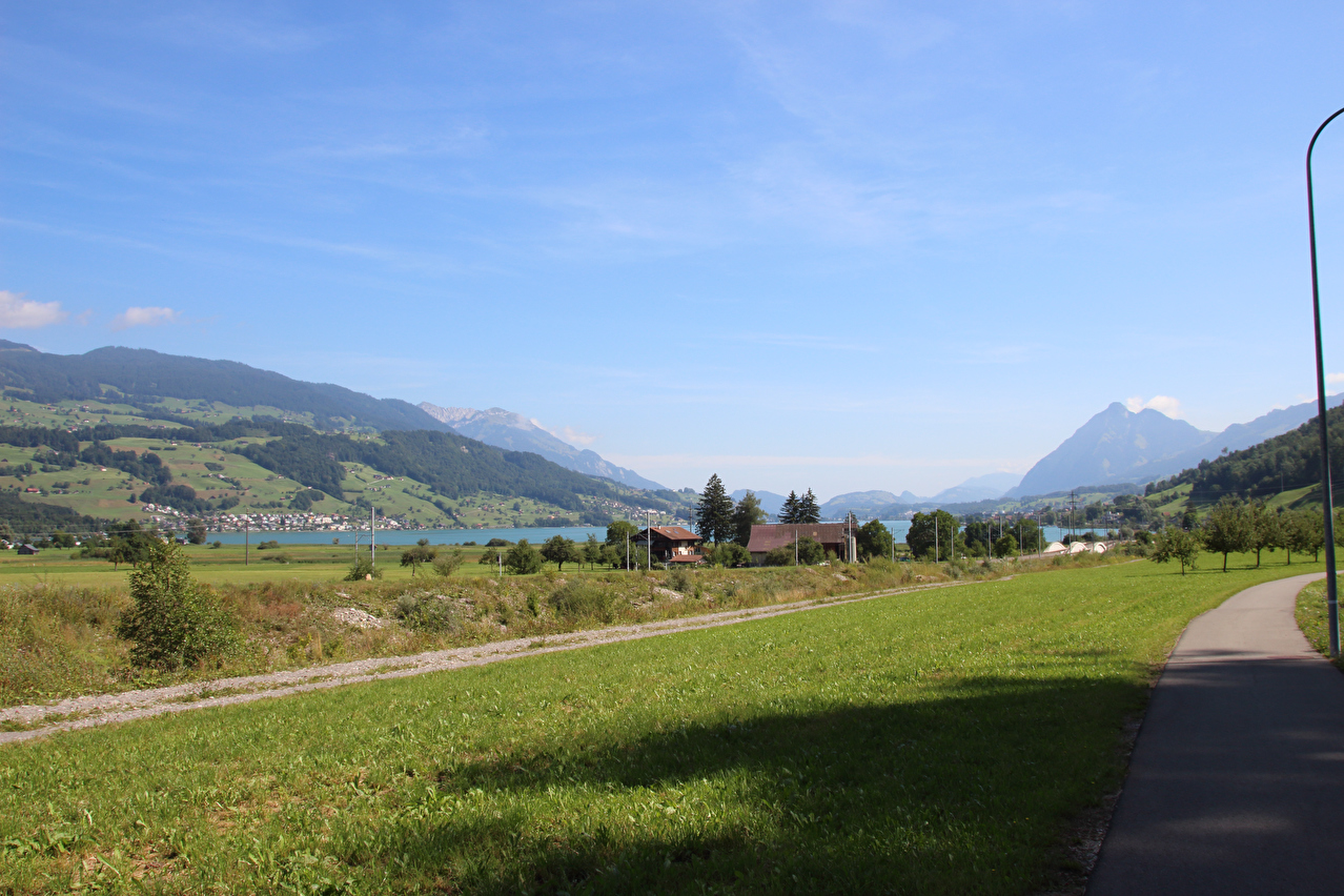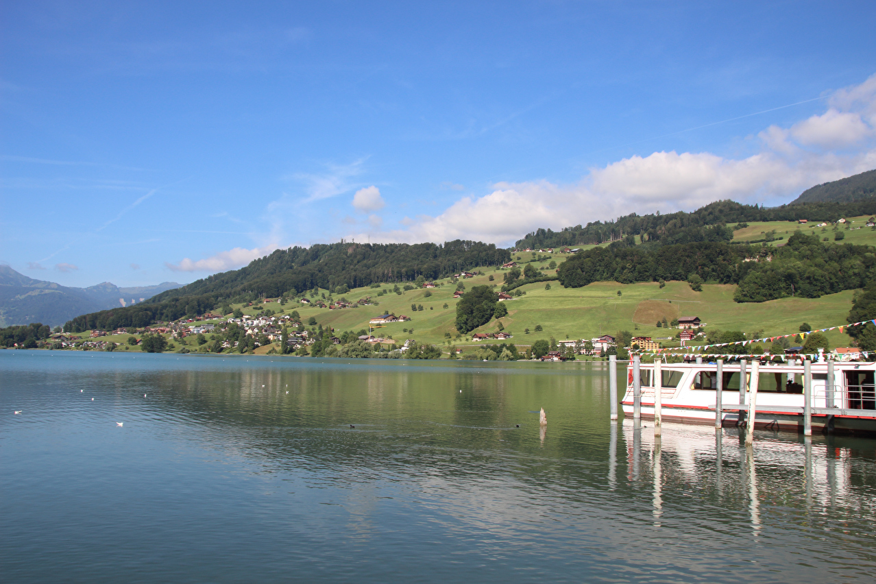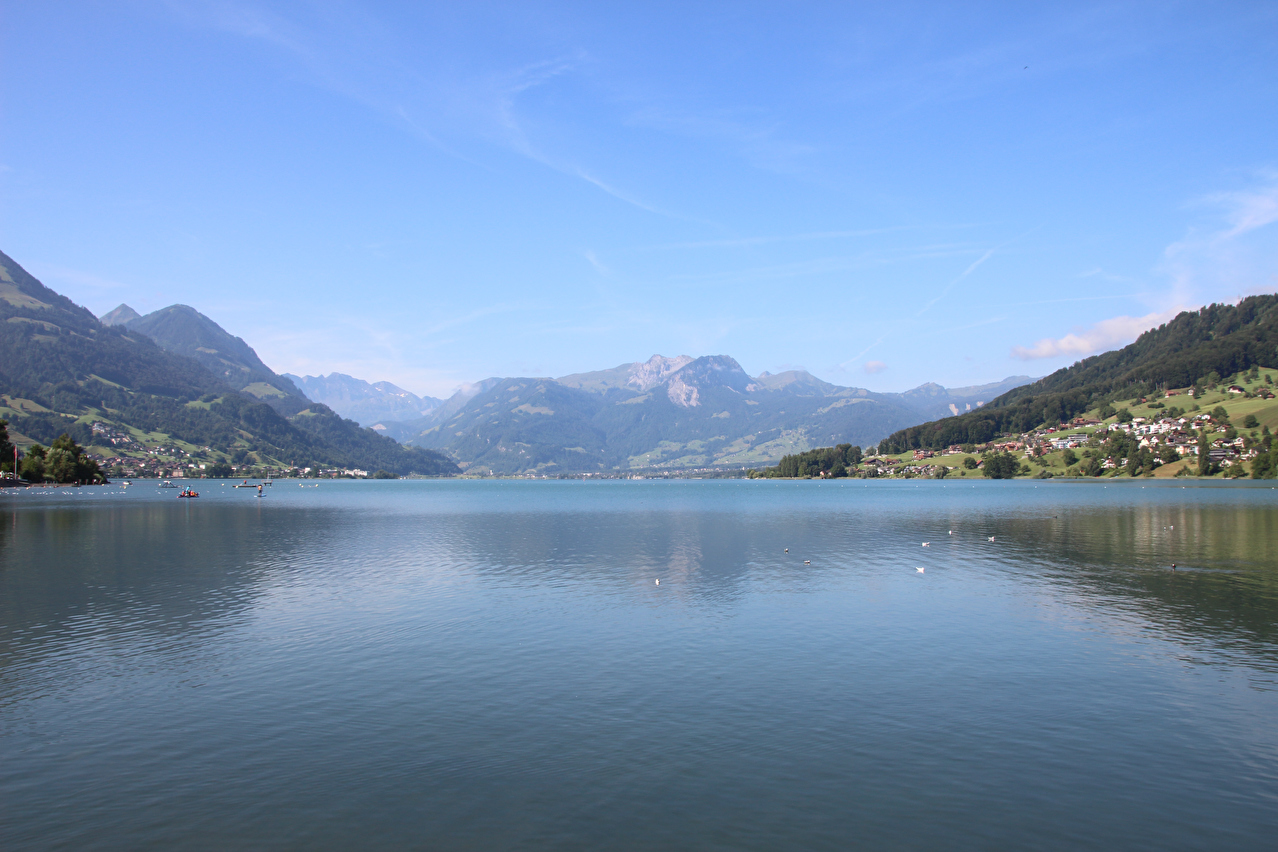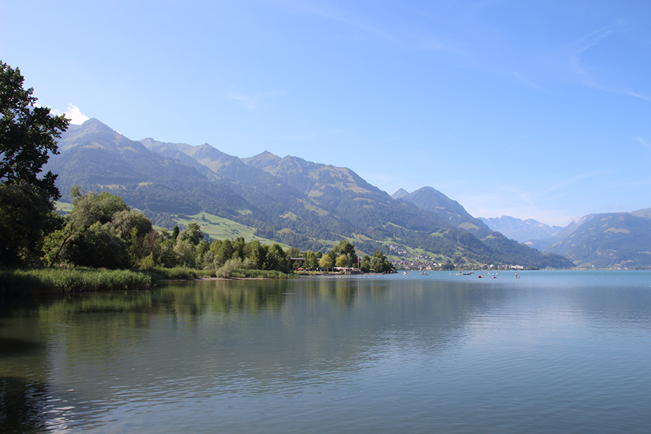 Sarnersee, Nordufer, Blick nach Süden auf Giswil, dahinter der Giswiler Stock und dahinter der Höch Gumme, … ![]() 300 dpi JPEG |