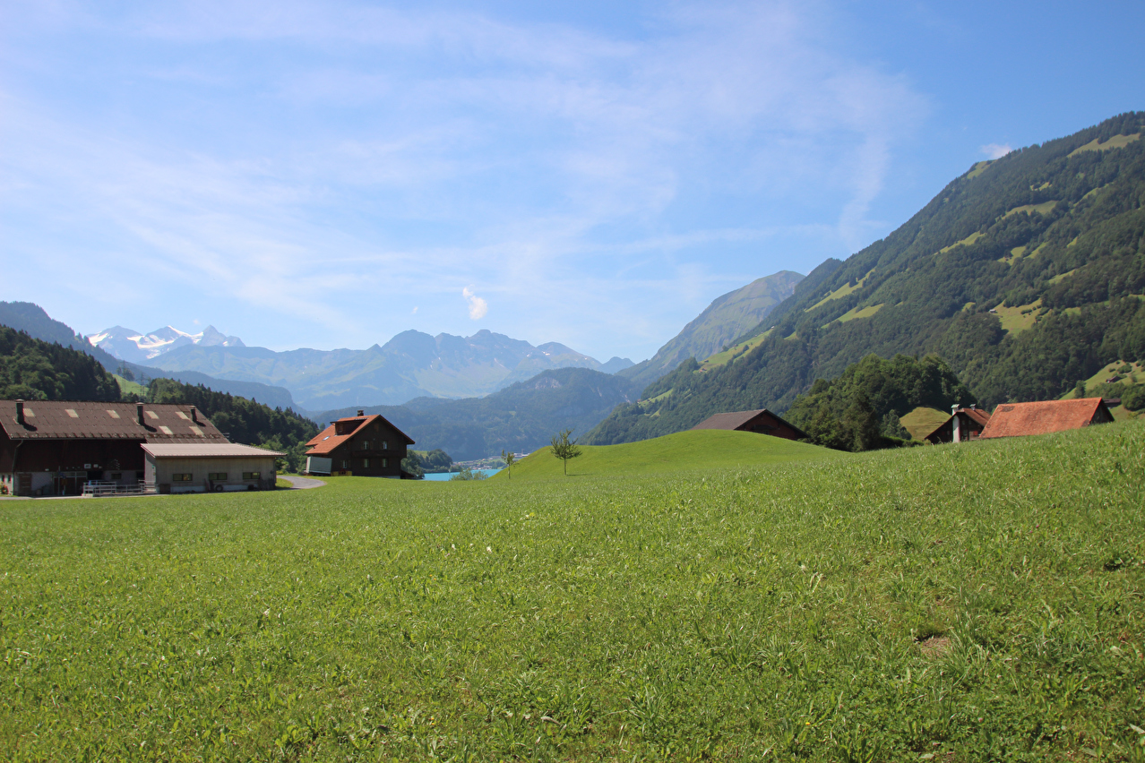 Aussichtspunkt Chälrütirank, Blick nach Norden auf Lungern und Lungernersee, am Westufer die Emmentaler Alpen, am Ostufer die Urner Alpen ![]() 300 dpi JPEG |