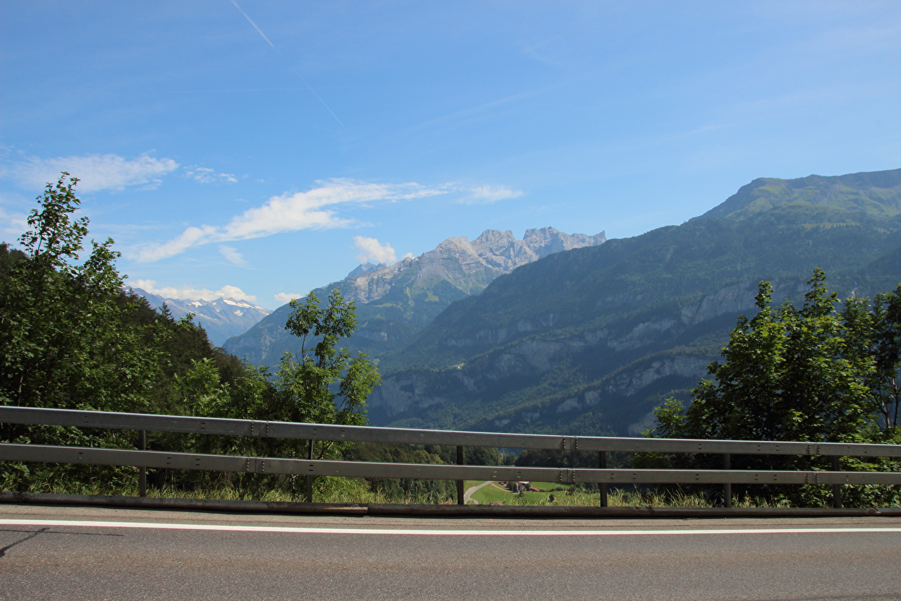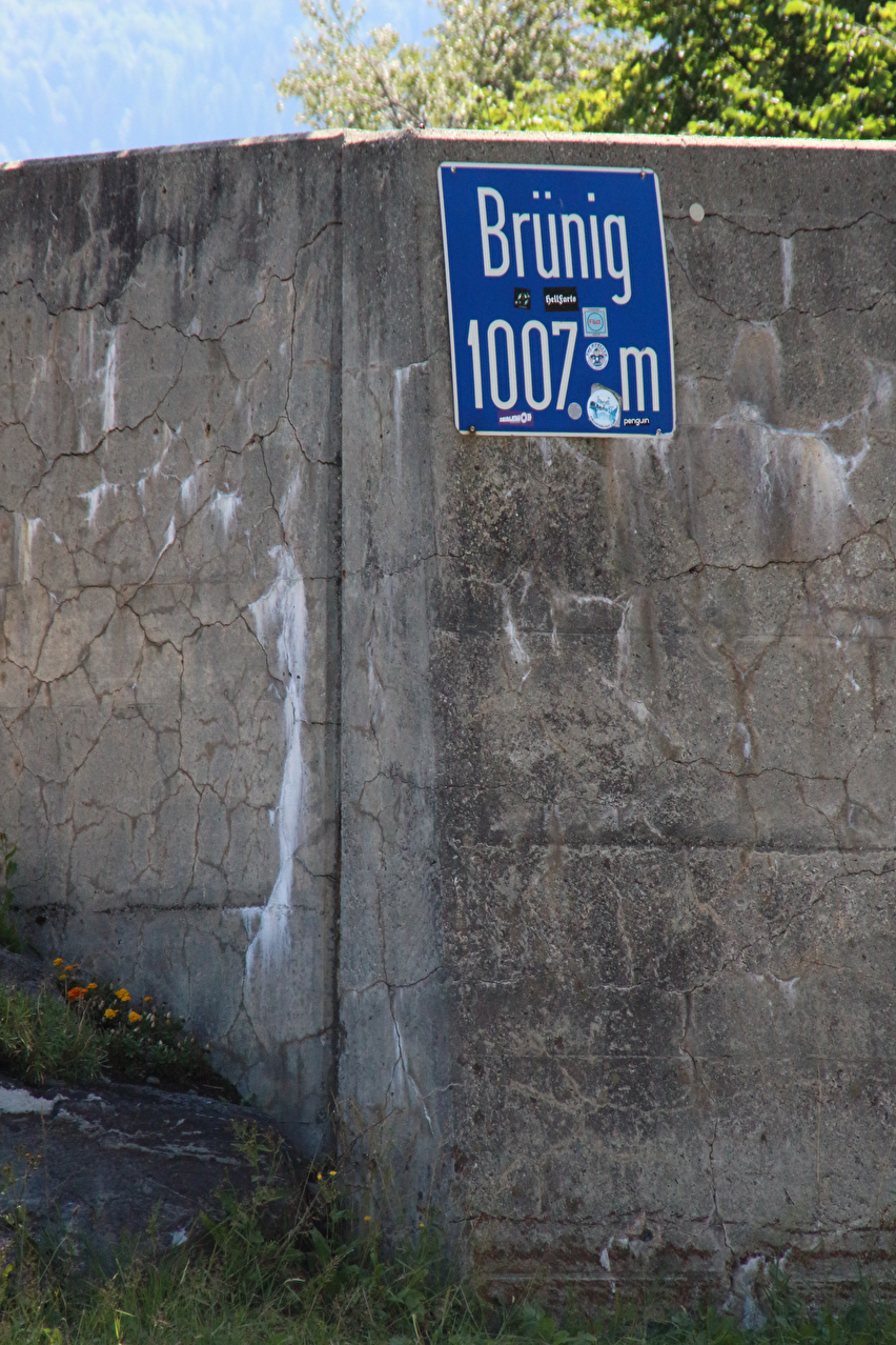 Beschreibung | Diese Etappe war eine inverse Streckewiederholung. In der Gegenrichtung war diese Strecke im Rahmen der letzten Etappe der Alpentour am 03.08.2011 gefahren worden. Von dieser Etappe war auch bekannt, dass der Streckenabschnitt zwischen Sarnen und Luzern wenig reizvoll ist. Unter anderem deshalb wurde dieser Streckenabschnitt mit den beiden ersten Etappen über den Renggpass und den Glaubenbergpass umfahren. Anders als am Vortag schien die Sonne nahezu ungestört vom Himmel, wodurch diese Etappe eine recht warme Angelegenheit wurde. Die Cirrostratuswolken am Himmel ließen allerdings erahnen, dass das keine stabile Hochdruckwetterlage war. Bei dieser Etappe zeigten sich die Unterschiede in den Schweizer Alpen deutlich. Die Ostflanke der Emmentaler Alpen hat voralpinen Charakter, während die Westflanke der Urner Alpen recht steil zum Sarneraatal hin abfällt. Am Südhorizont zeigte sich die Nordflanke der vergletscherten Berner Alpen.Mit der Überquerung des Brünigpasses gehörten die nördlichen Voralpen im Rahmen dieser Tour der Vergangenheit an. In Meiringen wurde es mit einsetzender Dämmerung zunehmend lauter. Nun wurden die tagelang verkauften Böller und Raketen am Bundesfeiertag gezündet. Anders als Silvester gibt es am Bundesfeiertag offenbar keine bestimmte Uhrzeit, zu der die Knallerei ihren Höhepunkt erreicht. Am späten Abend setzte Dauerregen ein, wodurch es recht schlagartig wieder ruhiger wurde. Dennoch war dies ein schlechter Tausch, denn der Regen hielt sich. |
