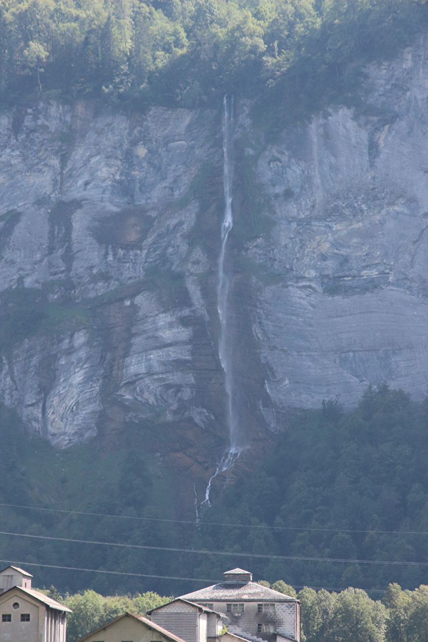 … und Blick nach Süden auf den untersten Wasserfall des Rychenbachfalls ![]() 300 dpi JPEG |
