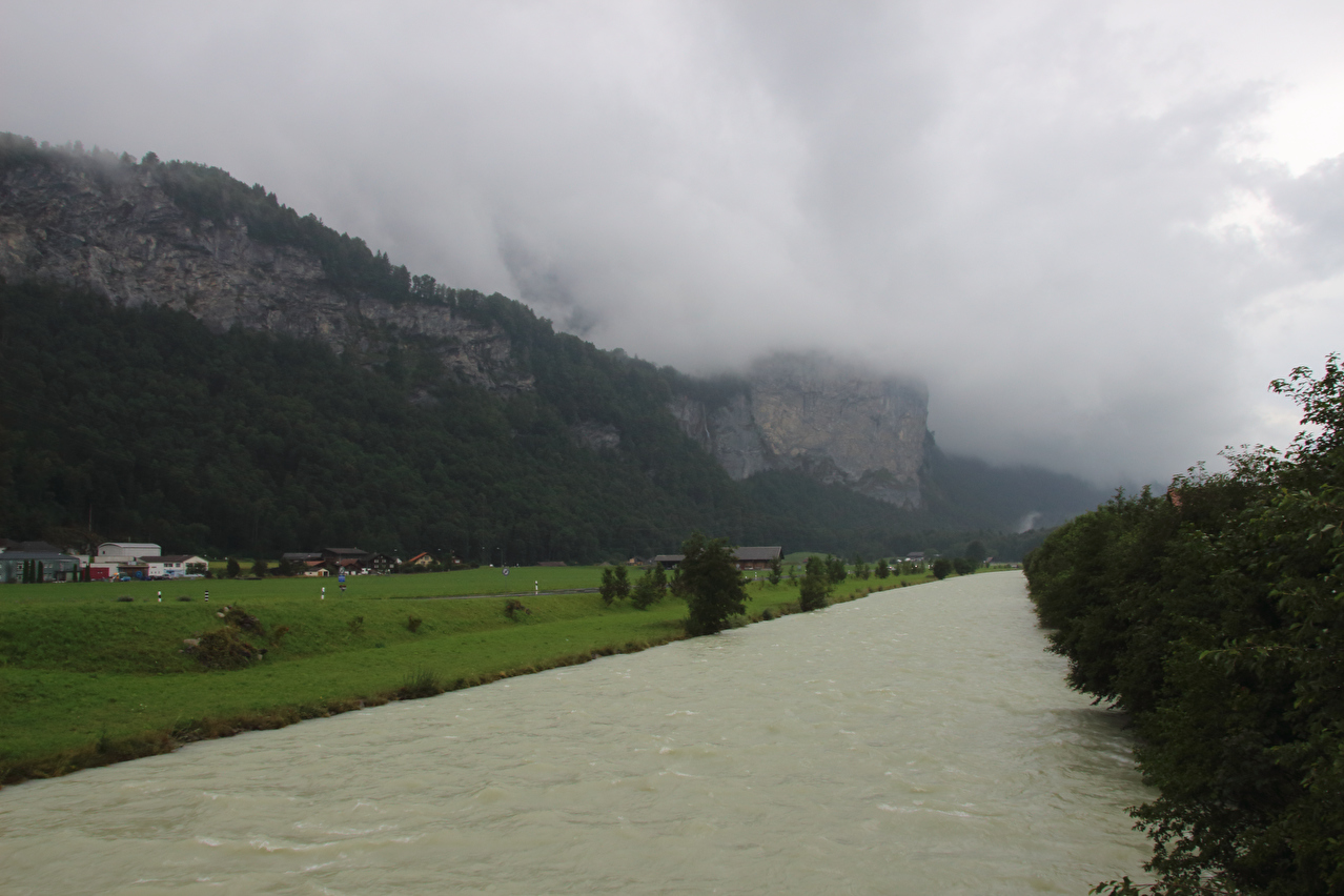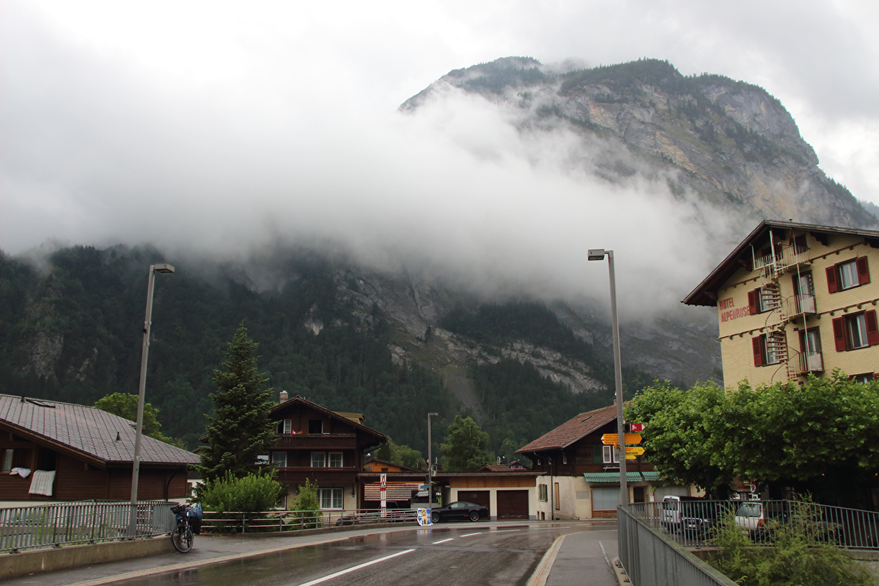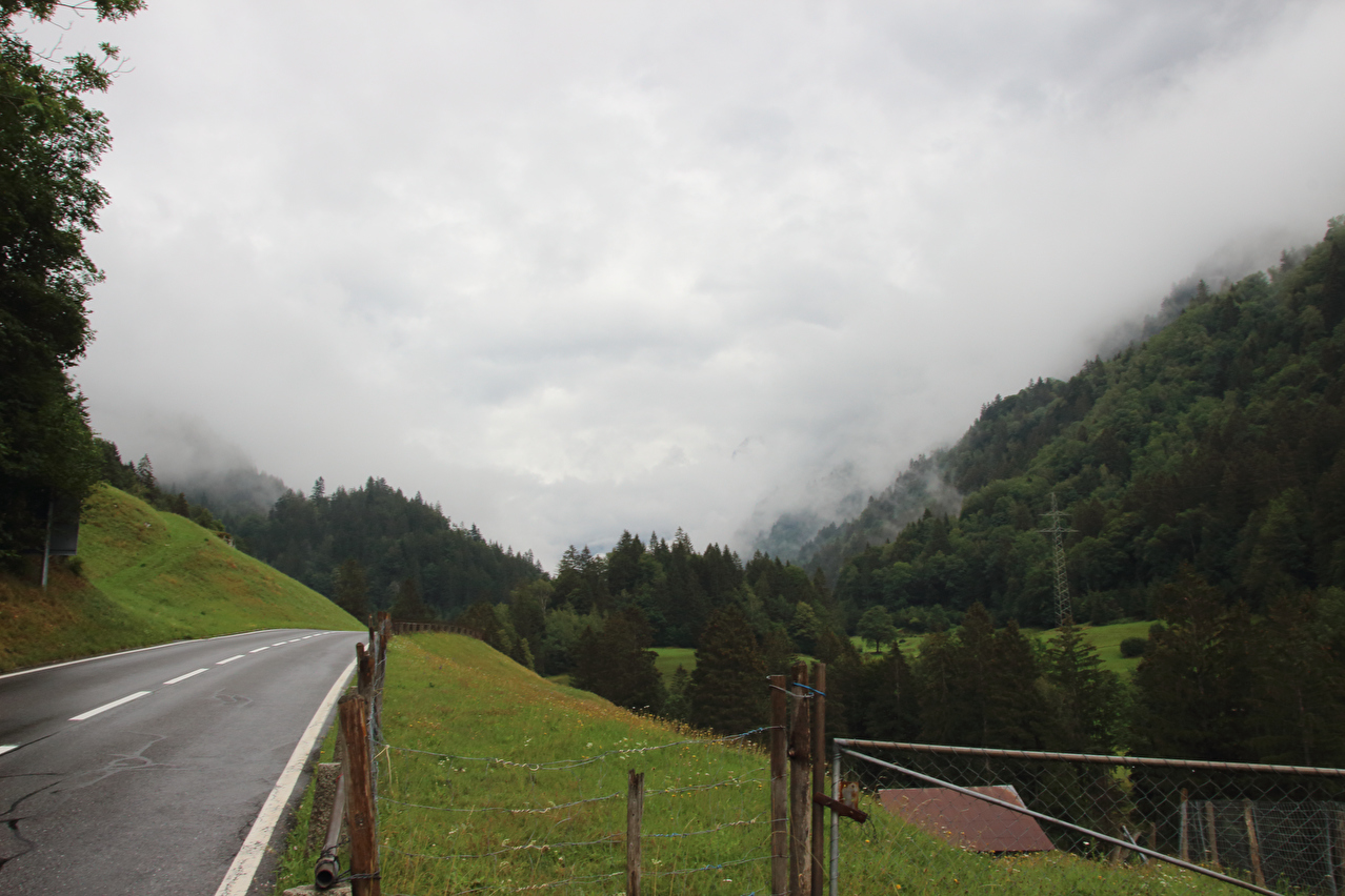 Beschreibung | Der erste Abschnitt dieser Etappe bis Innertkirchen war eine inverse Streckewiederholung. In der Gegenrichtung war diese Strecke im Rahmen der letzten Etappe der Alpentour am 03.08.2011 gefahren worden. Gestartet wurde bei Dauerregen. Die wenigen Fotos wurden entweder von Unterständen aus geschossen oder in "Westernmanier": Ziel anvisieren, schnell ziehen, paar Mal abdrücken, schnell wieder weg stecken. Diese Art des Fotografierens, die auch nur bis zu einer gewissen Regenintensität funktioniert ohne die Kamera zu beschädigen, musste bei dieser Tour noch mehrfach angewendet werden. In Innertkirchen wurde Mittag gegessen. Danach erfolgte die Auffahrt auf die Westrampe des Sustenpasses, deren unteres Ende in Innertkirchen mit dem unteren Ende der Nordrampe des Grimselpasses zusammentrifft. Während der Fahrt im Gadmertal ließ der Regen allmählich nach und hörte irgendwann ganz auf. Die Berge verbargen sich jedoch bis zum Ende der Etappe größtenteils in den Wolken. In Gadmen erfolgte die erste Bergankunft dieser Tour. |