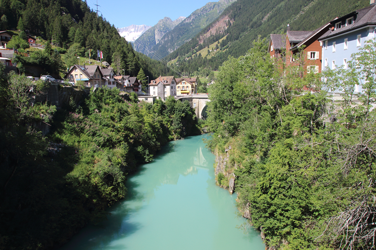 Blick von der Brücke auf die Göschener Reuss flussaufwärts ![]() 300 dpi JPEG |