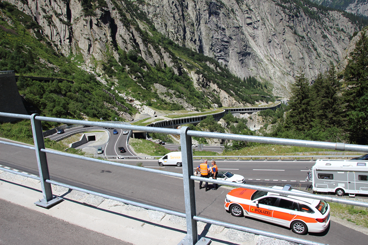 weiter oben, Blick auf die Gotthardstrasse und die auf deren Galerie geführte Veloroute ![]() 300 dpi JPEG |