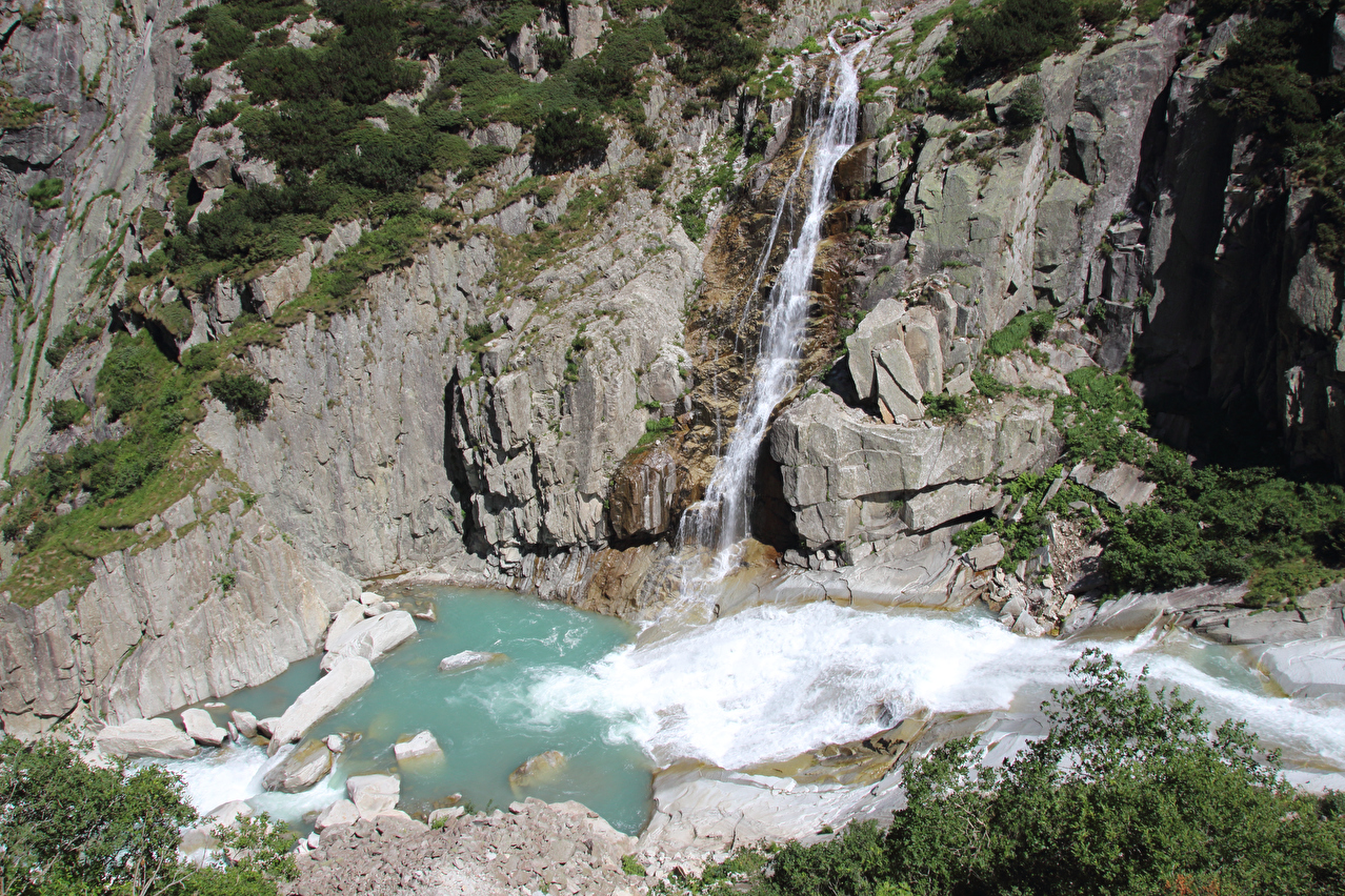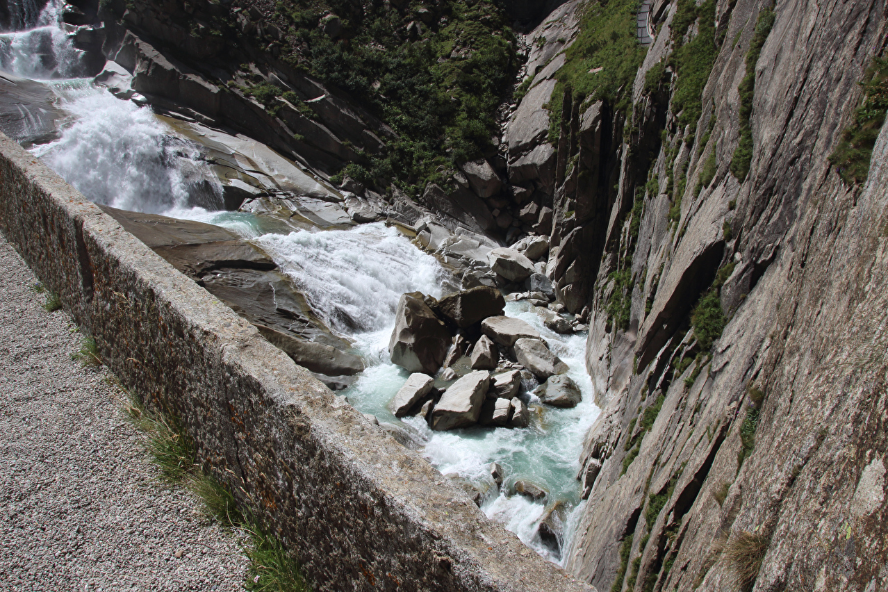 Blick auf die Göschener Reuss und das steil abfallende Riental ![]() 300 dpi JPEG |