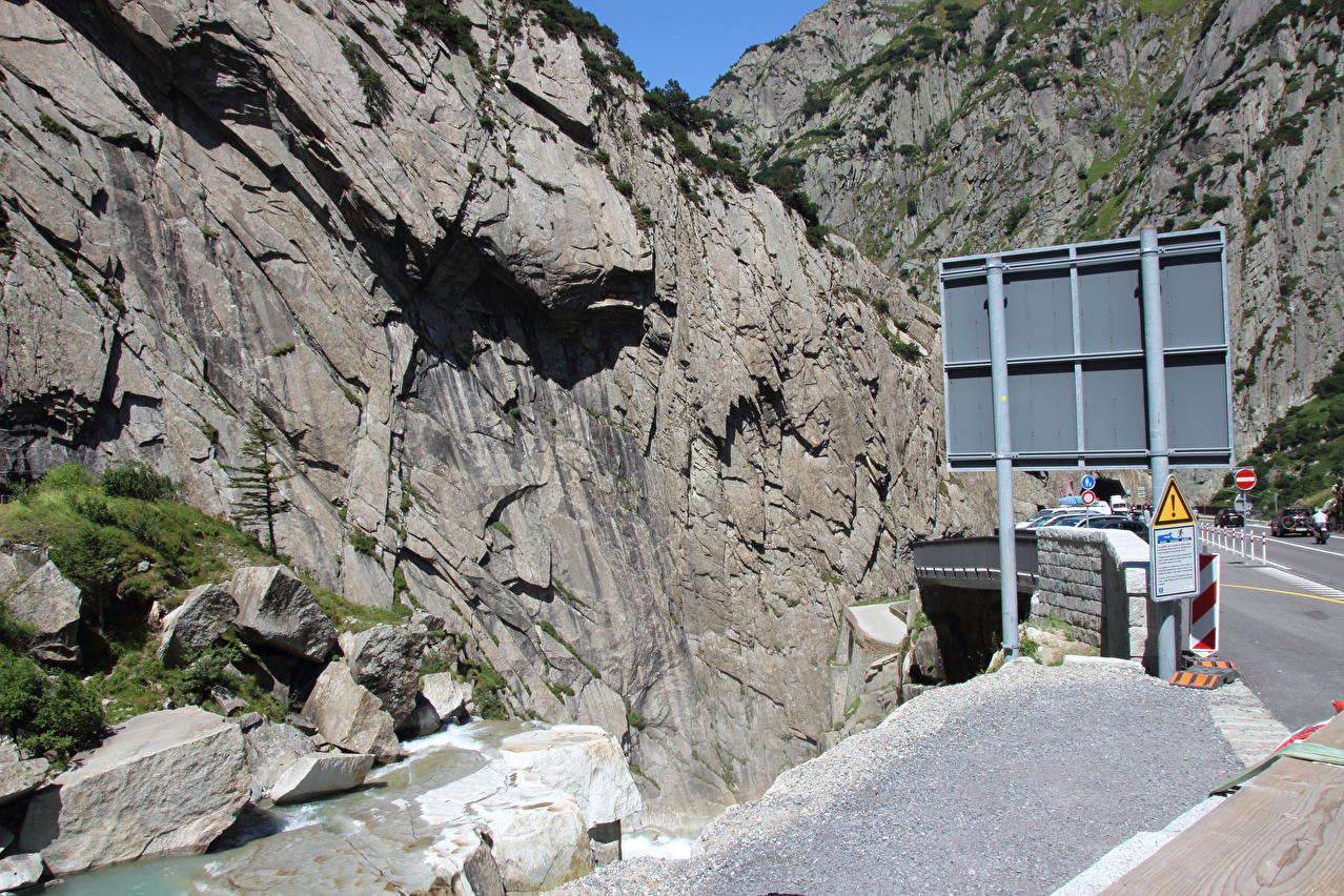 nördlich von Göschenen, Teufelsstein und Nordportal des Gotthard-Strassentunnels ![]() 300 dpi JPEG |