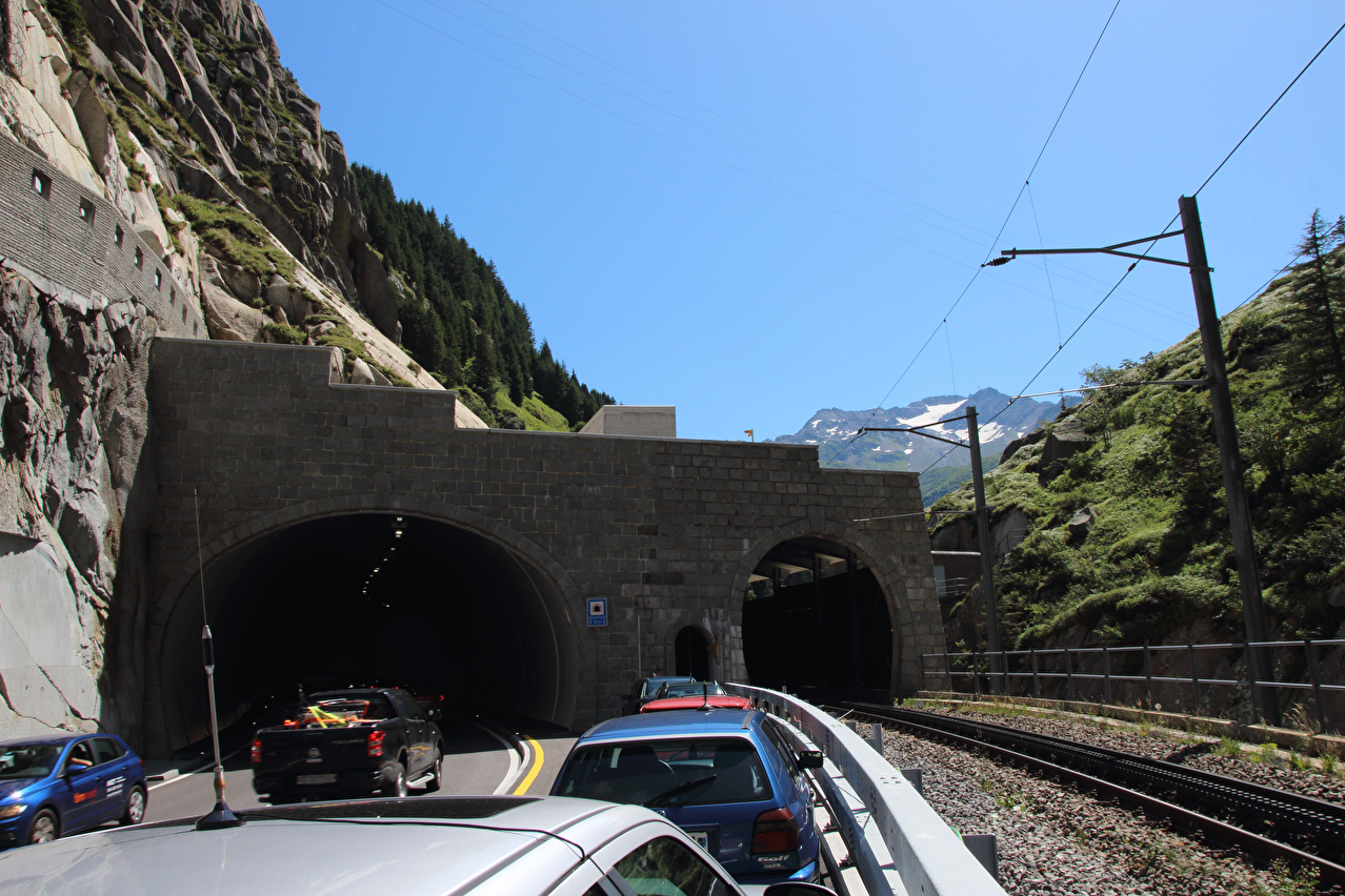 Urnerloch, Nordportal und Galerie der Schöllenenbahn, am Horizont der Gemsstock ![]() 300 dpi JPEG |