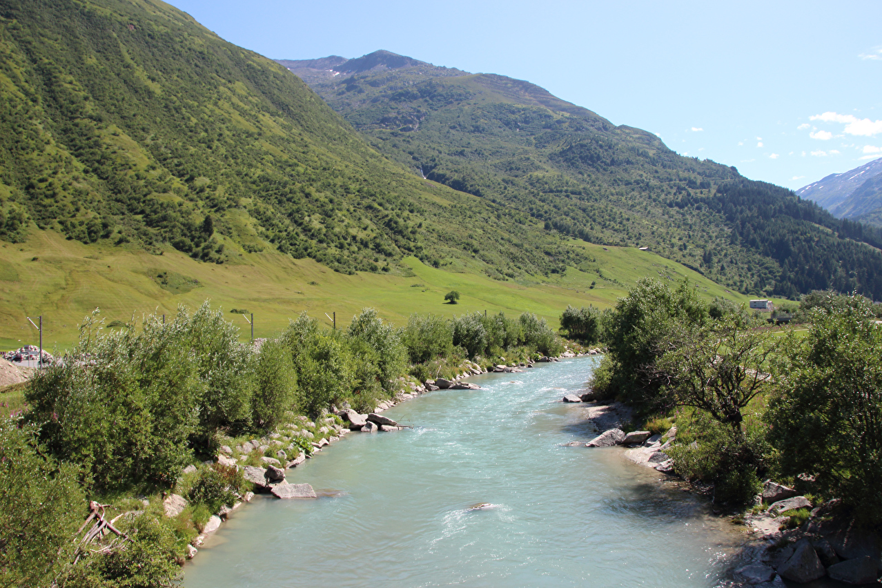 die Reuss am Nordrand von Andermatt, Blick flussaufwärts ![]() 300 dpi JPEG |