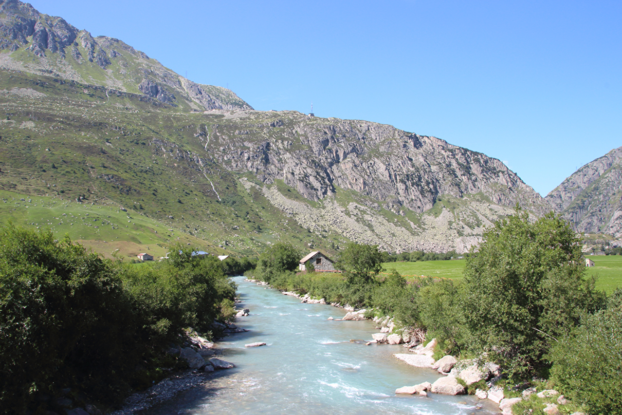 Reussbrücke im Urseren, Blick Richtung Hospental und Furkapass ![]() 300 dpi JPEG |