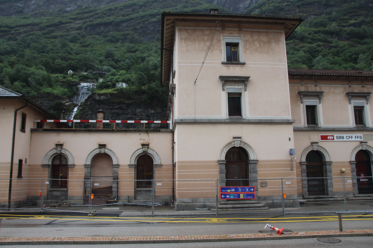 Etappenstart in Biasca, Blick auf Bahnhof und Wasserfall des Ri della Froda … ![]() 300 dpi JPEG |