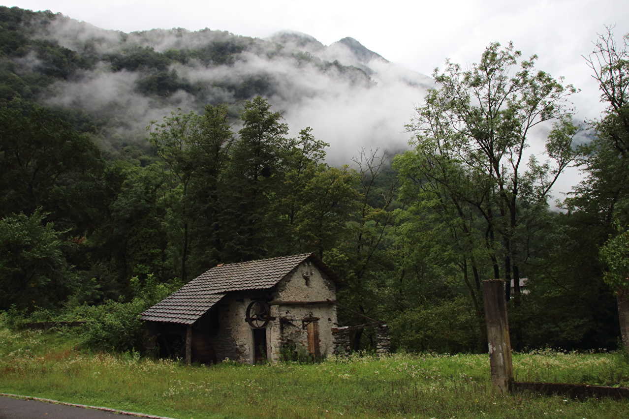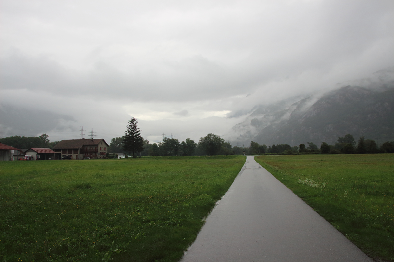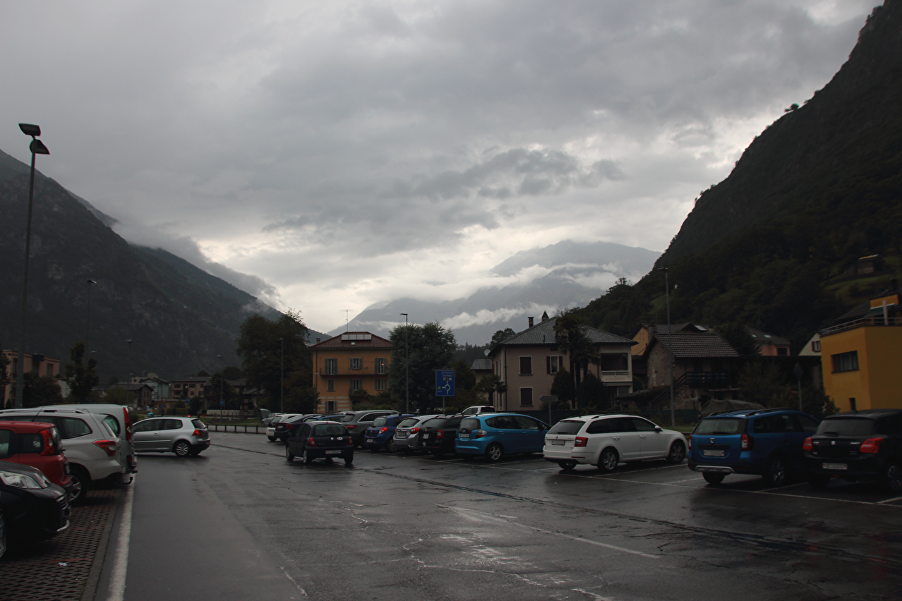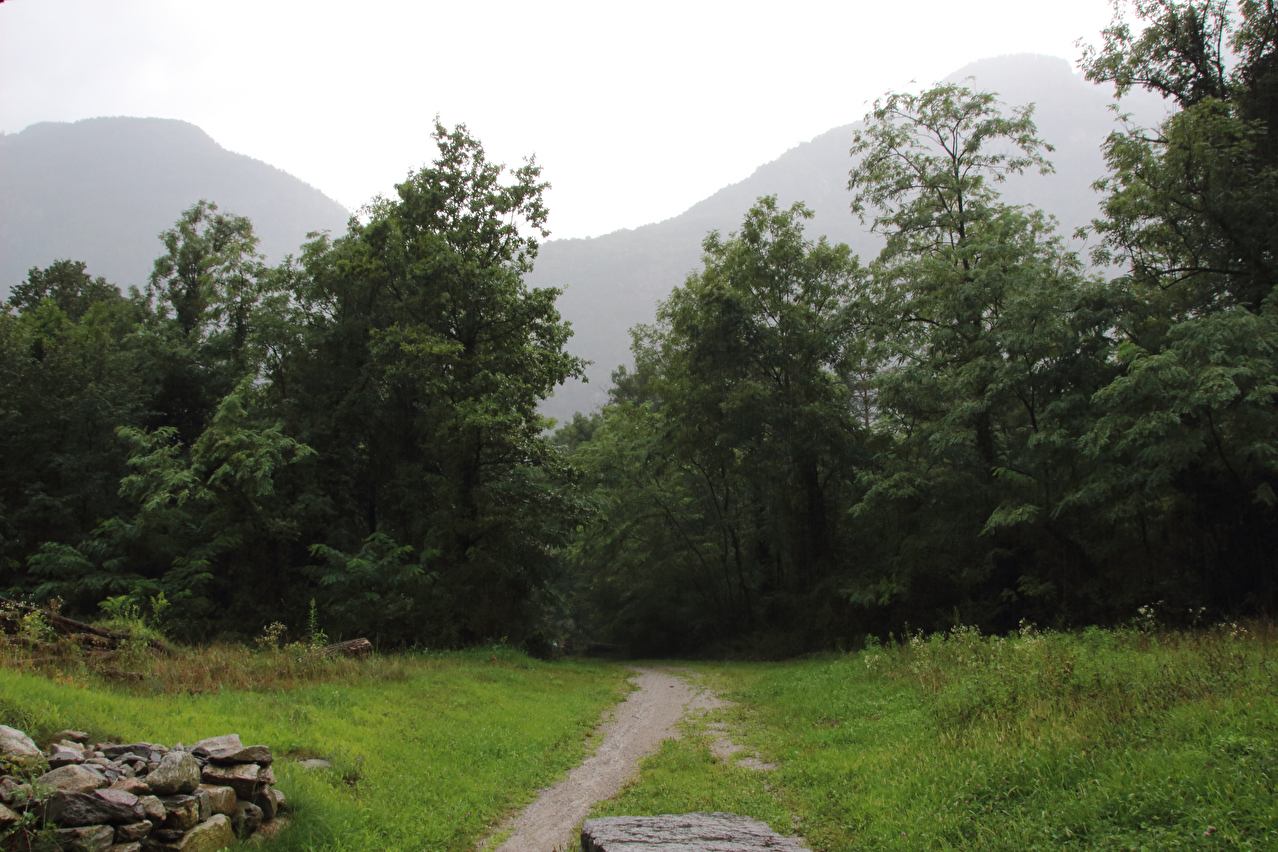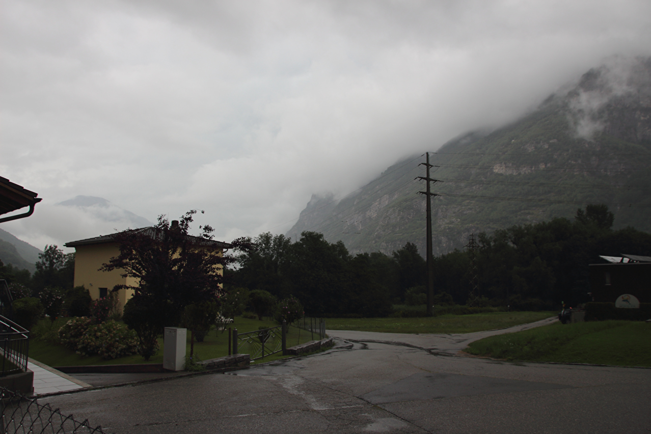 Beschreibung | Wasserschlacht, Tag zwei! ☹ Wegen der Wärme wurde nur die Regenjacke übergezogen, der Rest wurde nass, und zwar richtig. Bergpanorama gab es natürlich auch keines. Nach der etwas unübersichtlichen Ausfahrt aus Biasca wurde in Lodrino auf eine Veloroute gewechselt. Die enthielt zwar einige Abschnitte mit " wassergebundenem Belag", der bei dem Dauerregen entsprechend weich und matschig war, sowie einen Abschnitt mit Kopfsteinpflaster im mittelalterlich wirkenden Ortskern von Moleno mit sich. Dafür ersparte die Veloroute vom Stinkeverkehr verteiltes Spritzwasser und aufgewirbelte Gischt. War das "Dach der Tour", also der orographisch höchste Punkt der Tour bereits mit dem Sustenpass passiert worden, wurde nun mit dem Nordufer des Lago Maggiore in Locarno der "Keller der Tour", also der orographisch tiefste Punkt der Tour erreicht. Und dieser Tiefpunkt war wetterbedingt nicht nur orographischer Natur. Vom Lago Maggiore war nur das ufernahe Wasser zu sehen, darüber lag ein graues Nichts. Zwischen Locarno und Ascona hörte der Regen endlich auf, aber für eine Rückfahrt zum Seeufer hätte die Zeit nicht gereicht, da es bis zum Etappenziel noch etwas hin war und kurz davor noch ein kurzer, aber knackiger Schlussanstieg lag. Die Chinesische Hanfpalme (Trachycarpus fortunei) ist aus den Gärten heraus mittlerweile verwildert, worüber die Schweizer offiziell nicht glücklich sind. Deshalb steht die auch "Tessinerpalme" gennante Pflanze in der Schweiz mittlerweile auf der Schwarzen Liste invasiver Neophyten. Optisch trägt sie jedoch schon zum mediterranen Charakter der tief gelegenen Regionen des Tessins bei. Das Centovalli weist direkt unterhalb von Intragna eine markante Talstufe auf. Der Teil des Centovalli unterhalb dieser Talstufe wird auch Pedemonte genannt. Die Straße von Golino nach Intragna war ab der unteren Kehre mit bis zu 15 % Steigung zu steil zum Fahren. Somit wurden die letzten paar hundert Meter zum Etappenziel schiebend zurück gelegt. In Intragna erfolgte die dritte Bergankunft dieser Tour. |