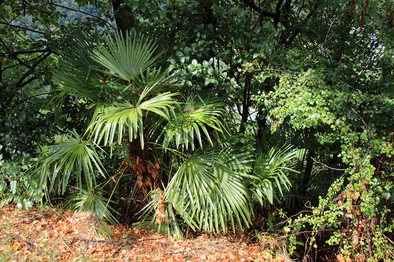 verwilderte Chinesische Hanfpalmen (Trachycarpus fortunei) in Losone ![]() 300 dpi JPEG |