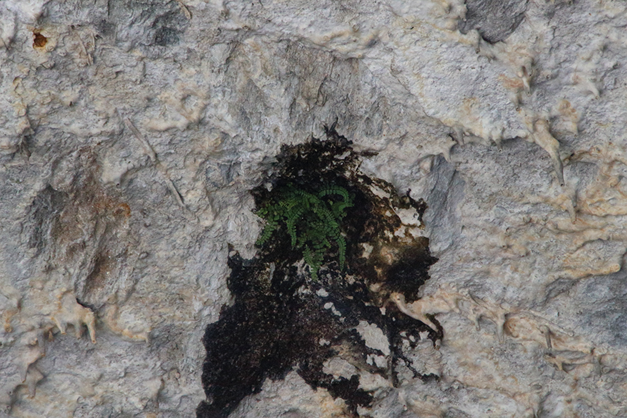Zoom auf kopfüber wachsenden Braunstieligen Streifenfarn (Asplenium trichomanes) im Bogenscheitel ![]() 300 dpi JPEG |