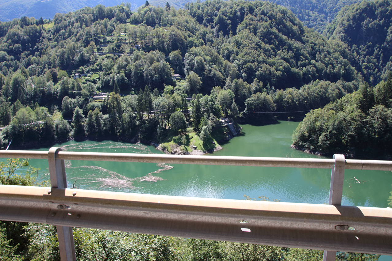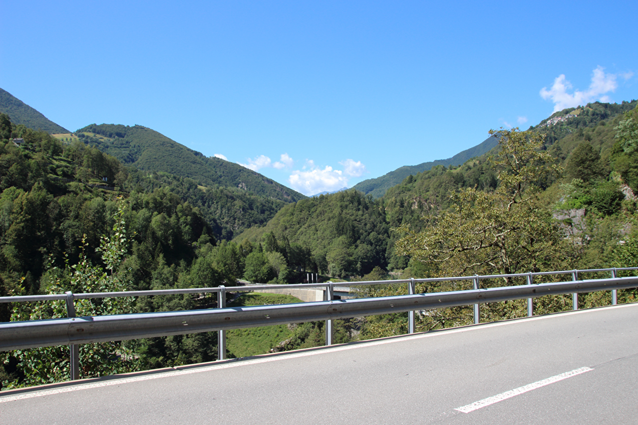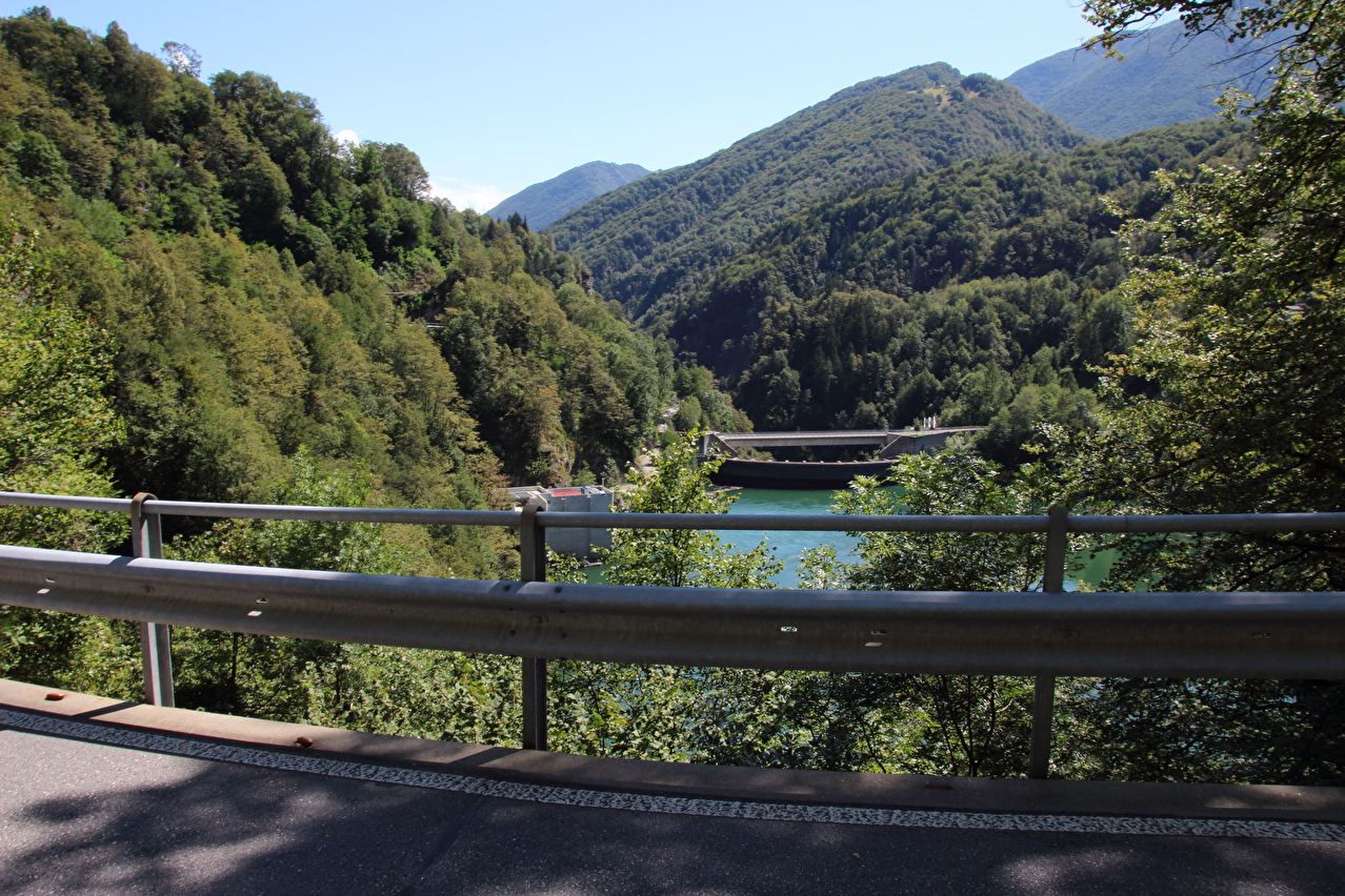 Blick talabwärts zur Staumauer des Lago di Palagnedra ![]() 300 dpi JPEG |