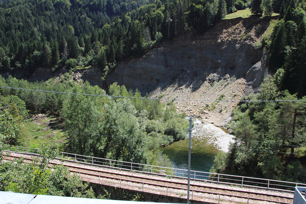 … und Blick auf das Gleis der Vigezzina, der Fortsetzung der Centovallina in Italien und den Melezzo orientale flussabwärts ![]() 300 dpi JPEG |