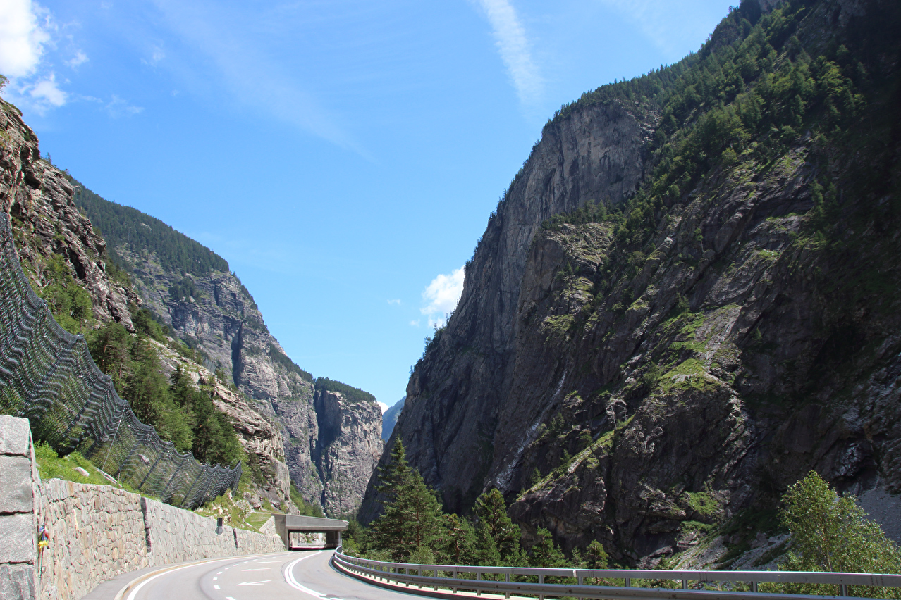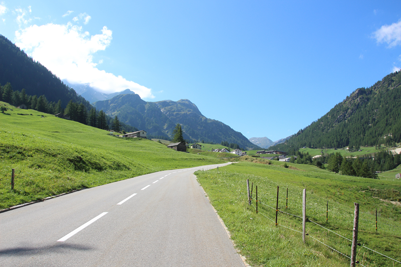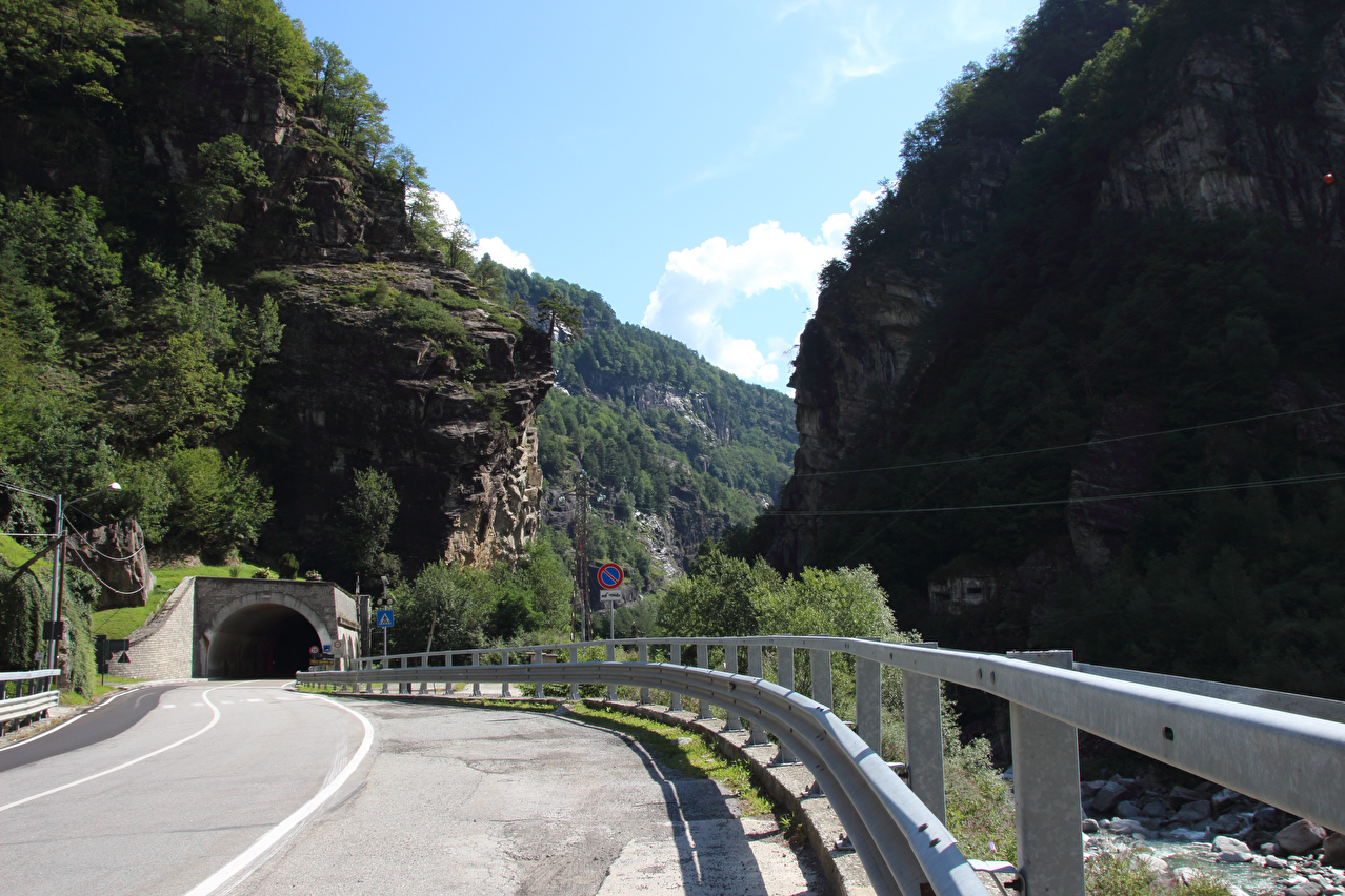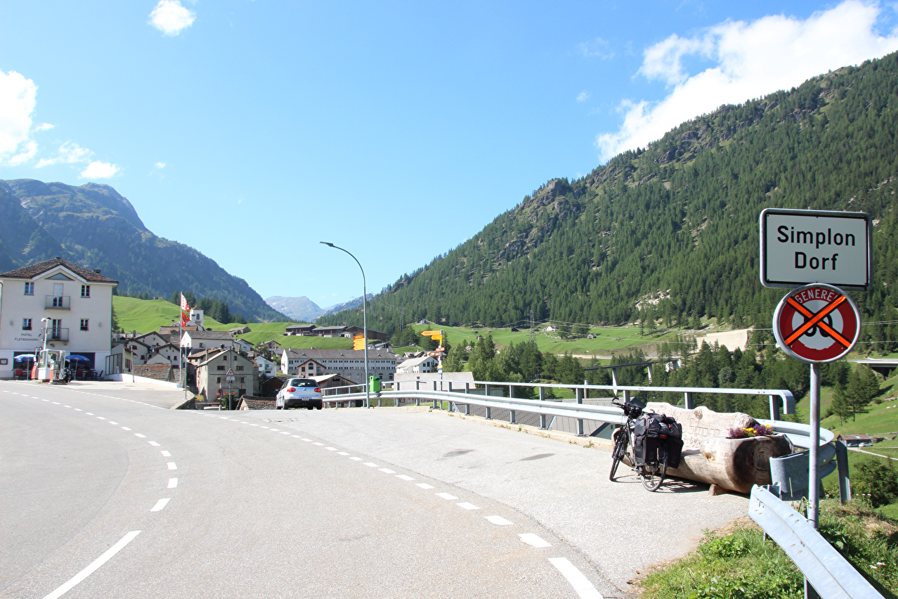 Beschreibung | Nach der recht langen Etappe am Vortag stand mit dieser Etappe eine kurze Etappe an, die aber reichlich Höhenmeter bergauf enthielt. Die Sonne schien den ganzen Tag über weitgehend ungestört von Wolken. Durch den Höhengewinn verlief diese Etappe aber nicht in einer Wärme wie die Etappe am Vortag. Das Val Divedro ist schon über seine ganze Länge recht eng, da sich die Diveria tief eingeschnitten hat. An den wenigen etwas weiteren Stellen liegen Ortschaften auf dem Talboden. Die sich bergwärts an das Val Divedro anschließende Gondoschlucht zwischen den Ortschaften Gondo am unteren Ende und Gabi am oberen Ende ist so eng, dass dort nur der Fluss, die Straße mit diversen Kunstbauten und der Stockalperweg, ein alter Saumpfad, heute Wanderweg, Platz finden. Ramserna ist keine Ortschaft, sondern nicht mehr als eine Postautohaltestelle etwa mittig zwischen zwei Kehren. Oberhalb von Gabi weitet sich das hier Chastelberg genannte Tal deutlich auf. Der durch das Tal fließende Fluss hat gleich drei Namen. In Italien heißt er Diveria, in der Schweiz von Gabi bis zur Grenze Doveria und oberhalb von Gabi Chrummbach. Der Namenswechsel in der Schweiz beruht darauf, dass zwischen Gabi und Gstein die inoffizielle Sprachgrenze zwischen italienisch und deutsch liegt. Italienisch ist zwar eine der Amtssprachen in der Schweiz, aber keine Amtssprache auf kantonaler Ebene im Kanton Wallis. Anders als an der Grenze zwischen Camedo (Schweiz) und Ribellasca (Italien), die am Vortag passiert worden war, sind hier auf beiden Seiten die Grenzkontrollstellen in Betrieb. In Italien gibt es deren zwei. Die Grenzkontrollstelle direkt an der Grenze in Paglino wurde aufgegeben, dafür wurde eine Grenzkontrollstelle im talabwärts gelegenen Iselle eingerichtet. Zwischen Iselle und Gondo vermittelte die Fahrt zwischen den beiden in Betrieb befindlichen Grenzkontrollstellen einen Hauch von Niemandsland. Daran schloss sich die Durchquerung der Gondoschlucht an. Im Bereich des in die Doveria einmündenden Alpjerbachs ist von einer Galerie kurz vor dem Übergang in einen Tunnel zu sehen, dass hier der Straßenverlauf mal geändert wurde. In früheren Zeiten wurden Straßentunnel so kurz wie möglich gebaut und dafür der Bau zusätzlicher Brücken sowie ein kurviger Straßenverlauf mit teilweise steinschlaggefährdeten Bereichen in Kauf genommen. In jüngerer Zeit werden an solchen Stellen oft längere Tunnel mit geraderem Straßenverlauf gebaut, wodurch Brücken eingespart werden. Auch wird die Straße dadurch wintersicherer und weniger durch Steinschlag gefährdet, wobei dies auch auf der alten Straße durch Galerien hätte erreicht werden können. Nachteilig an den neuen Tunneln sind die längeren Fahrzeiten im Tunnel und die durch den geraderen Streckenverlauf höheren möglichen und auch viel zu oft ausgenutzten Geschwindigkeiten des Stinkeverkehrs. Mit der Ausfahrt aus der Hofstättengalerie, der letzten Galerie im Verlauf dieser Etappe wurde alpines Gelände erreicht. Die Abfahrt von der Neuen Simplonstrasse auf die Alte Simplonstrasse gestaltete sich baustellenbedingt etwas unübersichtlich. In Simplon-Dorf erfolgte die fünfte und letzte Bergankunft dieser Tour. Der Versuch, den Fahrradcomputer zu reaktivieren, indem dieser "unten offen", also ohne Batterie und Batteriefachdeckel während der Etappe am Lenker befestigt und somit Luft und Sonne ausgesetzt war, scheiterte. Durchgetrocknet war er sicherlich, aber im Hotel lies sich der Fahrradcomputer nach dem Wiedereinsetzen der Batterie nicht reaktivieren. |