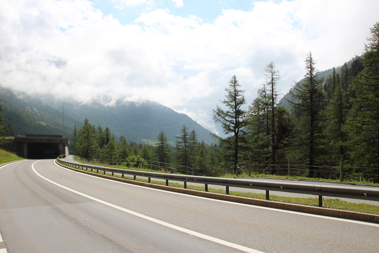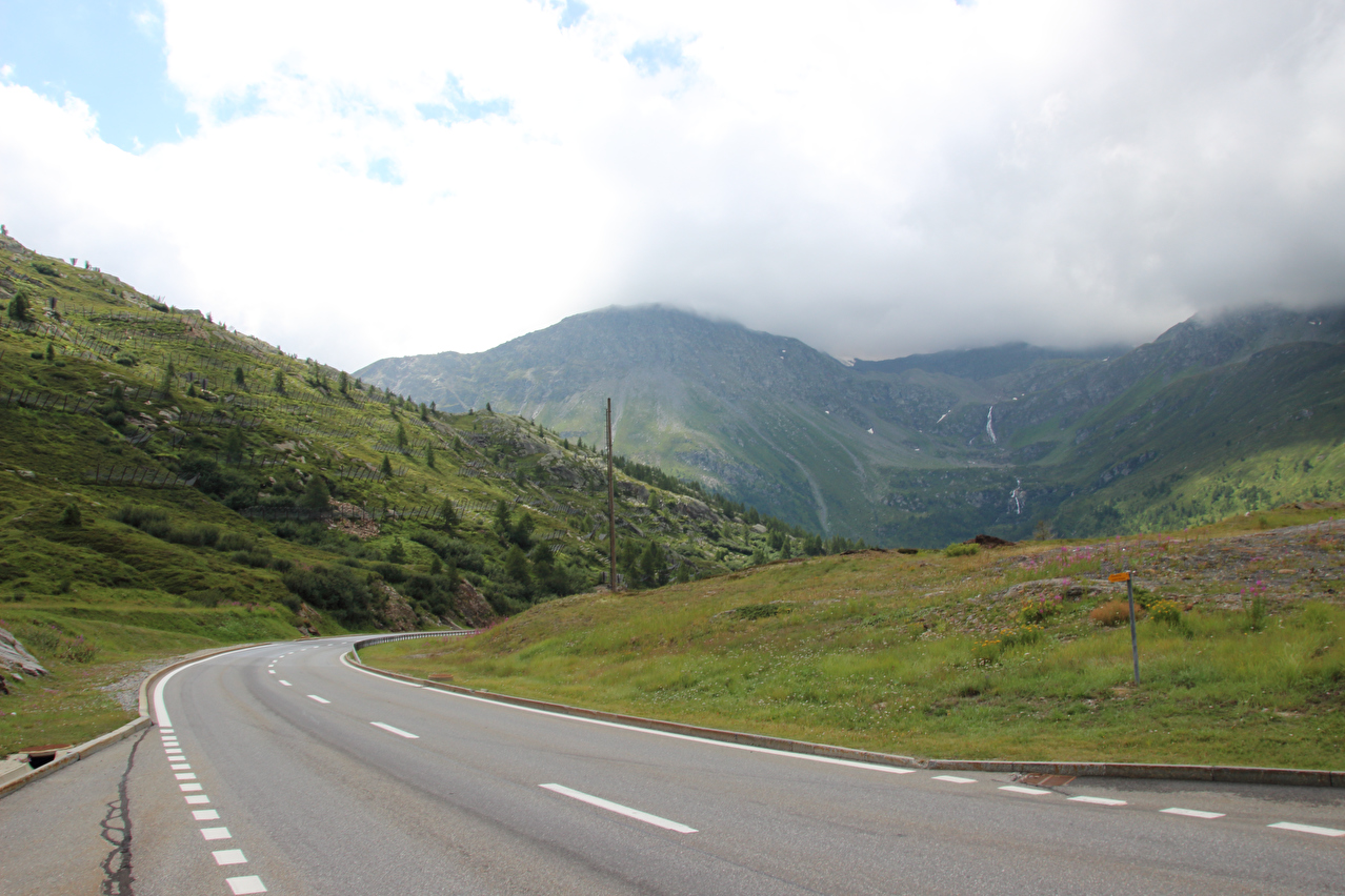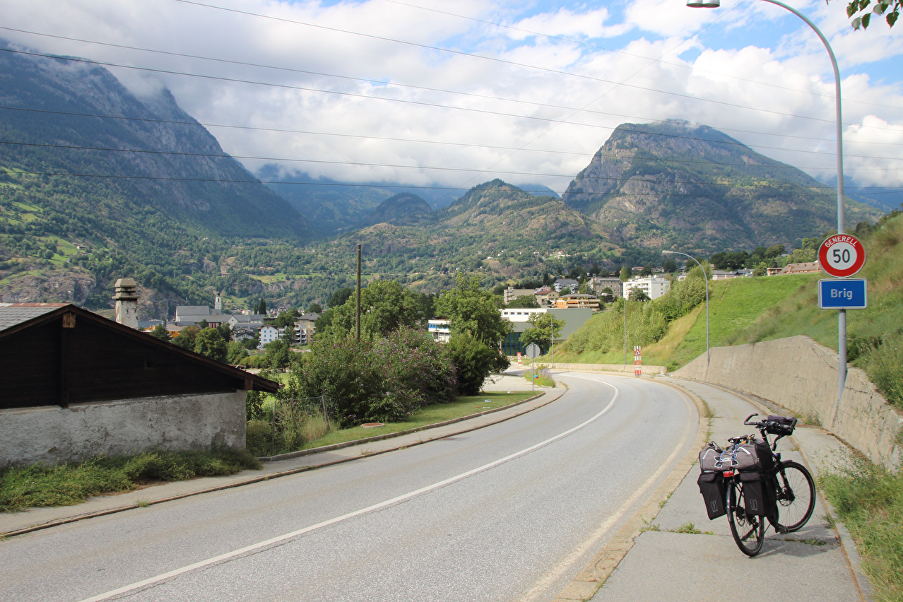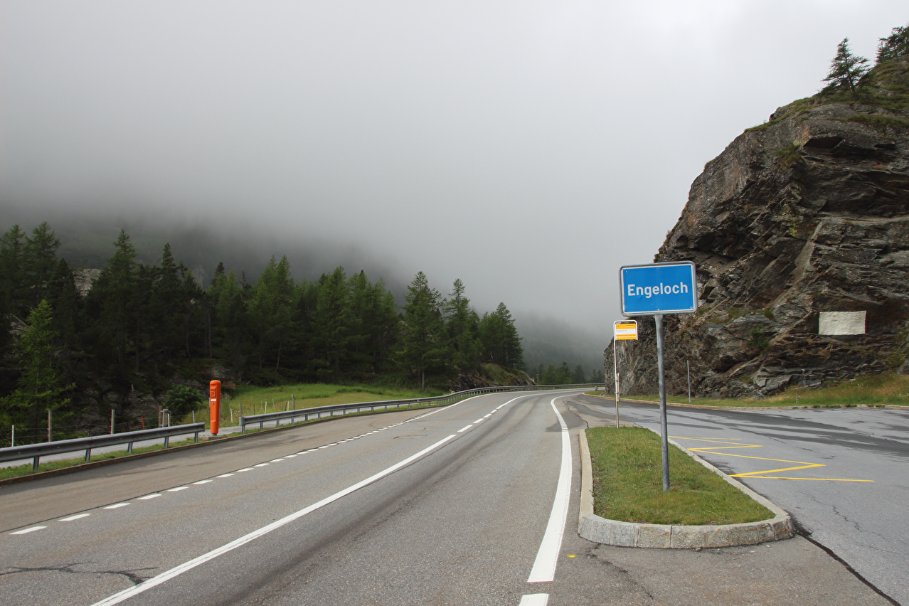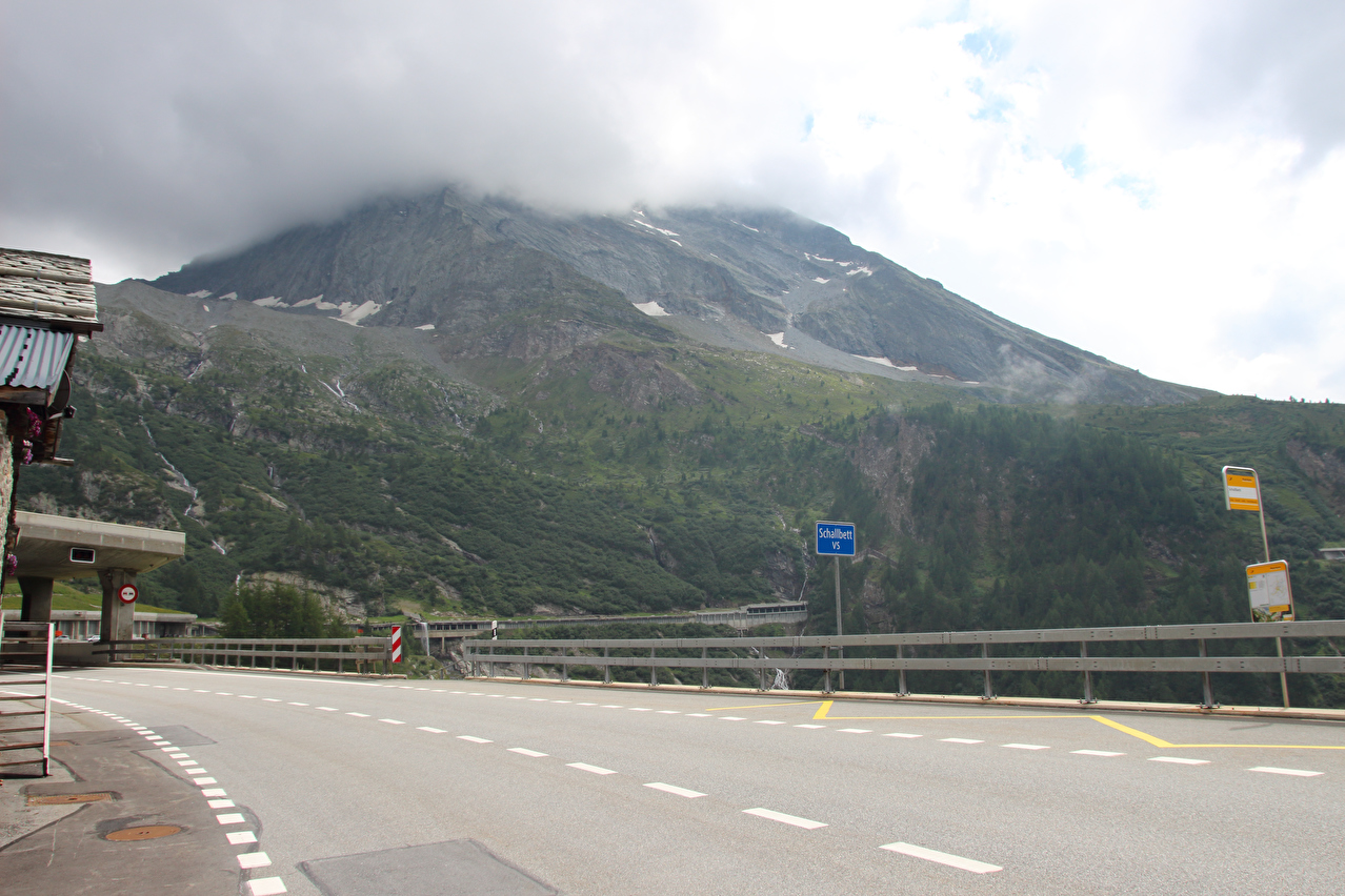 Beschreibung | Rechtzeitig zum Start der letzten Etappe dieser Tour hatte der über Nacht aufgezogene Regen aufgehört. Im Verlauf der Etappe schob die Sonne immer mehr Wolken bei Seite, aber einige Berggipfel blieben unter Wolken verborgen. Bis Egga erfolgte Die Fahrt auf der Alten Simplonstrasse, die dort erst mal endet. Kurz darauf folgt die schier endlos lange Engigalerie bis Engiloch. Der Name ist nicht ganz eindeutig. Am Wanderwegweiser vor Ort und in der topografischen Landeskarte der Schweiz heißt der Ort Engiloch, auf dem Ortsschild hingegen steht Engeloch. Weiter oben hätte noch einmal auf die Alte Simplonstrasse gewechselt werden können, die dort aber bis zum Alten Hospiz bergab führt. Auf die damit einhergehenden zusätzlichen Höhenmeter bergauf und die zusätzlichen Streckenkilometer wurde verzichtet und die Etappe auf der Neuen Simplonstrasse gefahren. Die Passhöhe wurde zeitig erreicht. Dort wurde Mittag gegessen und dieser für dieses Jahr letzte Aufenthalt oberhalb 2000 m ü. M. etwas ausgedehnt. Den genauen Kulminationspunkt der Passstraße zu finden ist ohne Messgeräte nicht möglich, da die Passhöhe sehr ausgedehnt ist und auch kein Schild am Kulminationspunkt der Passstraße steht. Die geographische Passhöhe liegt auf 1996 m ü. M. unterhalb des Kulminationspunktes der Passstraße, ist aber nur zu Fuß erreichbar. Dann folgte die letzte Abfahrt dieser Tour. Knapp unterhalb der Passhöhe steht ein Passhöhenschild an der Passstraße. Von dort bot sich ein letzter weiter Ausblick nach Nordwesten auf die vergletscherten Berner Alpen. Weiter unten auf der Nordrampe folgen die Kaltwassergalerie mit dem darin enthaltenen Kulmtunnel und die Schallbettgalerie. Diese beiden Galerien sind nur in Schallbett durch ein kurzes offenes Straßenstück voneinander getrennt. Die Schallbettgalerie geht nahtlos in den Kapftunnel über, an den sich nahtlos die Meggerigalerie anschließt. Ab Rothwald bergab ist die Nordrampe erst mal nicht überbaut. Unterhalb von Bärisal hätte wieder ein Stück auf der Alten Simplonstrasse gefahren werden können. Diese Abfahrt war aber nicht gekennzeichnet. Außerdem wäre damit die Ganterbrücke umfahren worden. Daher wurde auf der Neuen Simplonstrasse weiter gefahren. Mit der Ganterbrücke (Höhe Fahrbahnoberkante über Grund max. 15 0m) wurde die bis dato höchste Brücke überquert. Die Ganterbrücke ist seitlich sehr gut abgesichert. Die Sicherungsnetze schützen zwar auch den Verkehr, wurden aber primär zur Verhinderung von Suiziden montiert. Für den Verkehr sind weitere Sicherungen vorhanden. Unterhalb von Schallberg folgten mit Schallbergtunnel, Bächwaldtunnel und Gesternatunnel die drei letzten Tunnel dieser Tour. In Ried-Brig wurde zwangsläufig für den Rest der Etappe auf die Alte Simplonstrasse gewechselt, da die Neue Simplonstrasse ab dort bis Brig für Velofahrer gesperrt ist. Dieser letzte Abschnitt auf der Alten Simplonstrasse führte ans Ufer der Saltina in Brig, wo auch das letzte Quartier dieser Tour lag. Zur Vermeidung böser Überraschungen am Abreisetag wurde die Etappe vom Standort des Quartiers bis zum Bahnhof Brig fortgesetzt. Von dort aus waren es nur wenige hundert Meter bis zur Rhone, die dann auch noch überquert wurde. Direkt nach der Flussüberquerung traf die Etappe am Nordufer auf die Rhone-Route, deren "Kilometer 0" schon in Andermatt erreicht worden war. Für Schweizer Alpenpässe unüblich ist die komplett fehlende Beschilderung für den Veloverkehr über den Simplonpass. Daran, dass die Südrampe die Grenze nach Italien überschreitet, kann es eigentlich nicht liegen. Schließlich besteht über den Simplonpass auch ein grenzüberschreitender Postautokurs (Buslinie) zwischen Brig und Domodossola in Italien. Die Ganterbrücke als Grund scheidet auch aus. Zum einen ist die sicher genug für eine Überquerung mit dem Velo. Zum anderen kann diese bei Bedarf auf der Alten Simplonstrasse umfahren werden. Die Belastung mit Stinkeverkehr ist auf der Neuen Simplonstrasse nicht höher als auf anderen stark frequentierten Alpenpässen, die trotzdem auch für den Veloverkehr ausgeschildert sind. Als wahrscheinlichster Grund für die fehlende Beschilderung für den Veloverkehr kommen die sehr langen Galerien beiderseits der Passhöhe in Frage, die nicht umfahren werden können. |