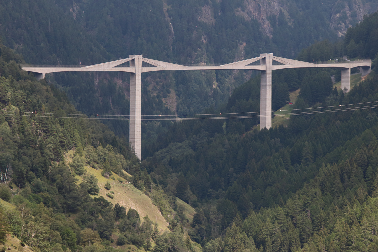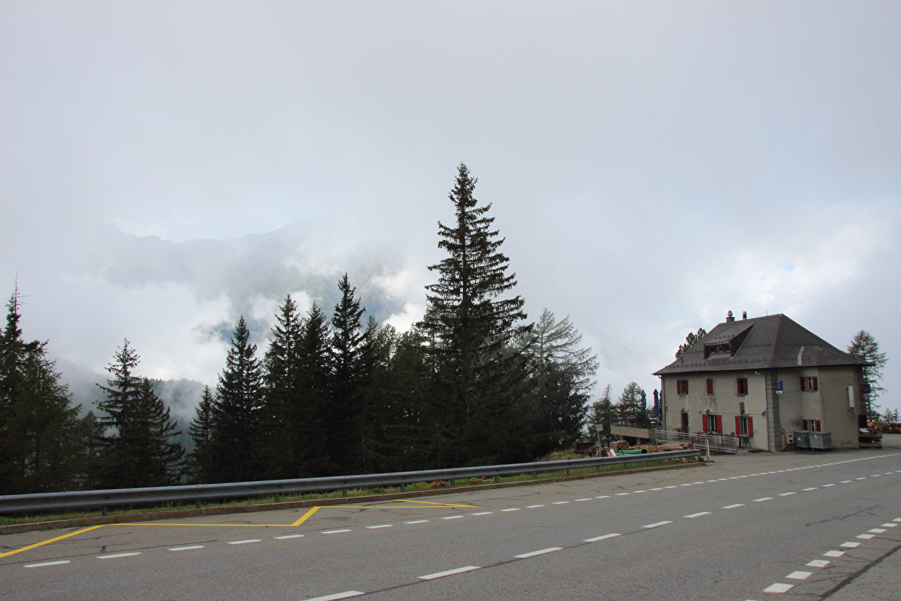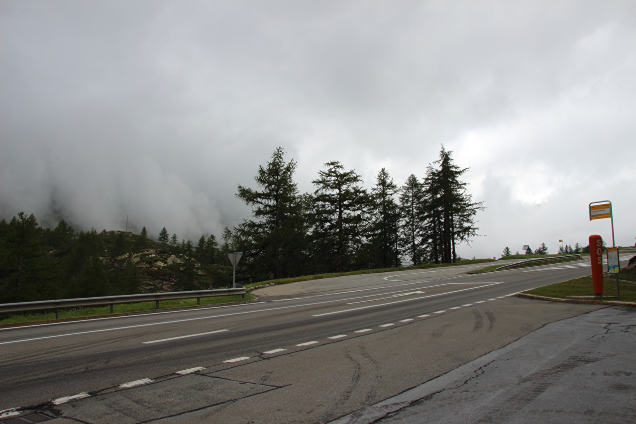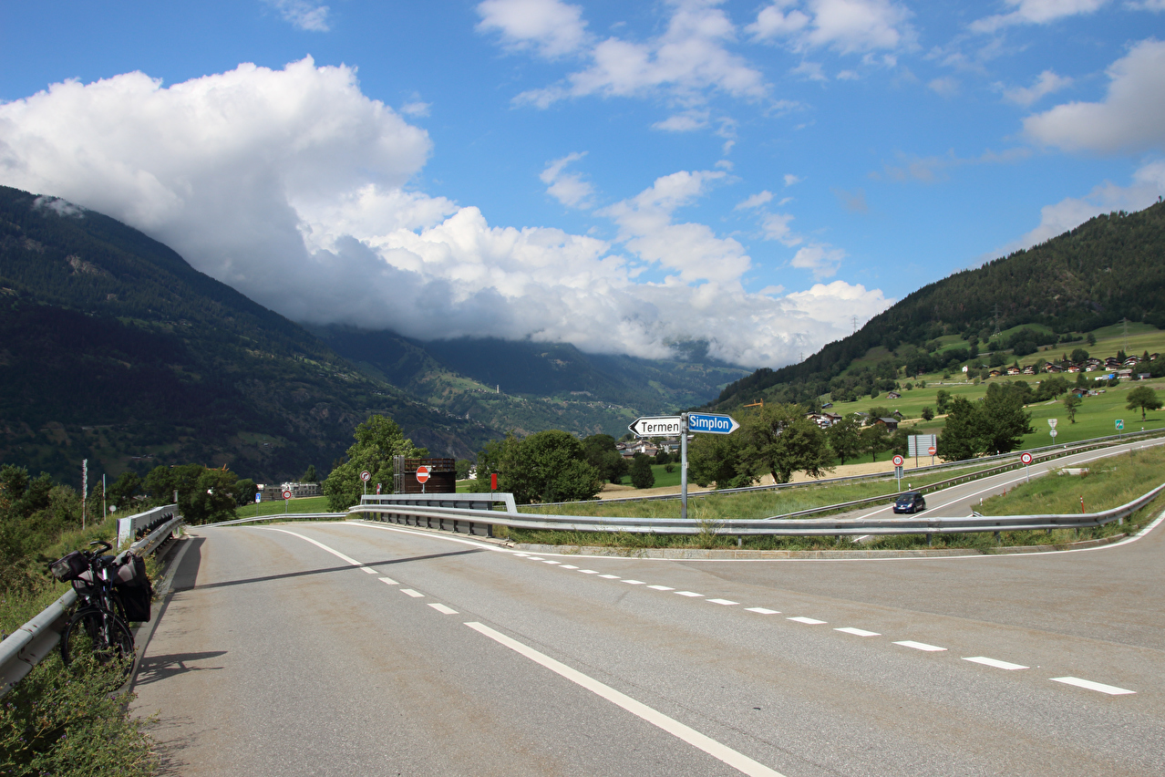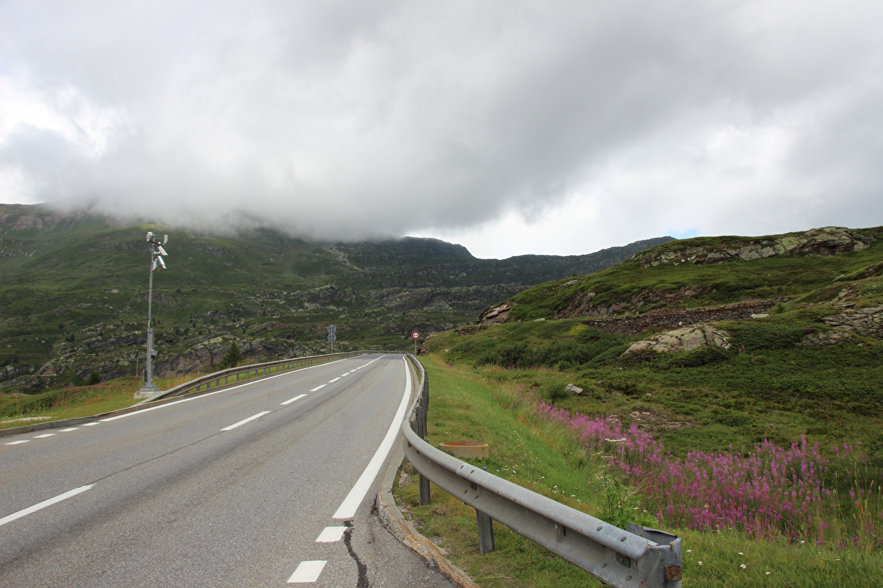 Beschreibung | Rechtzeitig zum Start der letzten Etappe dieser Tour hatte der über Nacht aufgezogene Regen aufgehört. Im Verlauf der Etappe schob die Sonne immer mehr Wolken bei Seite, aber einige Berggipfel blieben unter Wolken verborgen. Bis Egga erfolgte Die Fahrt auf der Alten Simplonstrasse, die dort erst mal endet. Kurz darauf folgt die schier endlos lange Engigalerie bis Engiloch. Der Name ist nicht ganz eindeutig. Am Wanderwegweiser vor Ort und in der topografischen Landeskarte der Schweiz heißt der Ort Engiloch, auf dem Ortsschild hingegen steht Engeloch. Weiter oben hätte noch einmal auf die Alte Simplonstrasse gewechselt werden können, die dort aber bis zum Alten Hospiz bergab führt. Auf die damit einhergehenden zusätzlichen Höhenmeter bergauf und die zusätzlichen Streckenkilometer wurde verzichtet und die Etappe auf der Neuen Simplonstrasse gefahren. Die Passhöhe wurde zeitig erreicht. Dort wurde Mittag gegessen und dieser für dieses Jahr letzte Aufenthalt oberhalb 2000 m ü. M. etwas ausgedehnt. Den genauen Kulminationspunkt der Passstraße zu finden ist ohne Messgeräte nicht möglich, da die Passhöhe sehr ausgedehnt ist und auch kein Schild am Kulminationspunkt der Passstraße steht. Die geographische Passhöhe liegt auf 1996 m ü. M. unterhalb des Kulminationspunktes der Passstraße, ist aber nur zu Fuß erreichbar. Dann folgte die letzte Abfahrt dieser Tour. Knapp unterhalb der Passhöhe steht ein Passhöhenschild an der Passstraße. Von dort bot sich ein letzter weiter Ausblick nach Nordwesten auf die vergletscherten Berner Alpen. Weiter unten auf der Nordrampe folgen die Kaltwassergalerie mit dem darin enthaltenen Kulmtunnel und die Schallbettgalerie. Diese beiden Galerien sind nur in Schallbett durch ein kurzes offenes Straßenstück voneinander getrennt. Die Schallbettgalerie geht nahtlos in den Kapftunnel über, an den sich nahtlos die Meggerigalerie anschließt. Ab Rothwald bergab ist die Nordrampe erst mal nicht überbaut. Unterhalb von Bärisal hätte wieder ein Stück auf der Alten Simplonstrasse gefahren werden können. Diese Abfahrt war aber nicht gekennzeichnet. Außerdem wäre damit die Ganterbrücke umfahren worden. Daher wurde auf der Neuen Simplonstrasse weiter gefahren. Mit der Ganterbrücke (Höhe Fahrbahnoberkante über Grund max. 15 0m) wurde die bis dato höchste Brücke überquert. Die Ganterbrücke ist seitlich sehr gut abgesichert. Die Sicherungsnetze schützen zwar auch den Verkehr, wurden aber primär zur Verhinderung von Suiziden montiert. Für den Verkehr sind weitere Sicherungen vorhanden. Unterhalb von Schallberg folgten mit Schallbergtunnel, Bächwaldtunnel und Gesternatunnel die drei letzten Tunnel dieser Tour. In Ried-Brig wurde zwangsläufig für den Rest der Etappe auf die Alte Simplonstrasse gewechselt, da die Neue Simplonstrasse ab dort bis Brig für Velofahrer gesperrt ist. Dieser letzte Abschnitt auf der Alten Simplonstrasse führte ans Ufer der Saltina in Brig, wo auch das letzte Quartier dieser Tour lag. Zur Vermeidung böser Überraschungen am Abreisetag wurde die Etappe vom Standort des Quartiers bis zum Bahnhof Brig fortgesetzt. Von dort aus waren es nur wenige hundert Meter bis zur Rhone, die dann auch noch überquert wurde. Direkt nach der Flussüberquerung traf die Etappe am Nordufer auf die Rhone-Route, deren "Kilometer 0" schon in Andermatt erreicht worden war. Für Schweizer Alpenpässe unüblich ist die komplett fehlende Beschilderung für den Veloverkehr über den Simplonpass. Daran, dass die Südrampe die Grenze nach Italien überschreitet, kann es eigentlich nicht liegen. Schließlich besteht über den Simplonpass auch ein grenzüberschreitender Postautokurs (Buslinie) zwischen Brig und Domodossola in Italien. Die Ganterbrücke als Grund scheidet auch aus. Zum einen ist die sicher genug für eine Überquerung mit dem Velo. Zum anderen kann diese bei Bedarf auf der Alten Simplonstrasse umfahren werden. Die Belastung mit Stinkeverkehr ist auf der Neuen Simplonstrasse nicht höher als auf anderen stark frequentierten Alpenpässen, die trotzdem auch für den Veloverkehr ausgeschildert sind. Als wahrscheinlichster Grund für die fehlende Beschilderung für den Veloverkehr kommen die sehr langen Galerien beiderseits der Passhöhe in Frage, die nicht umfahren werden können. |