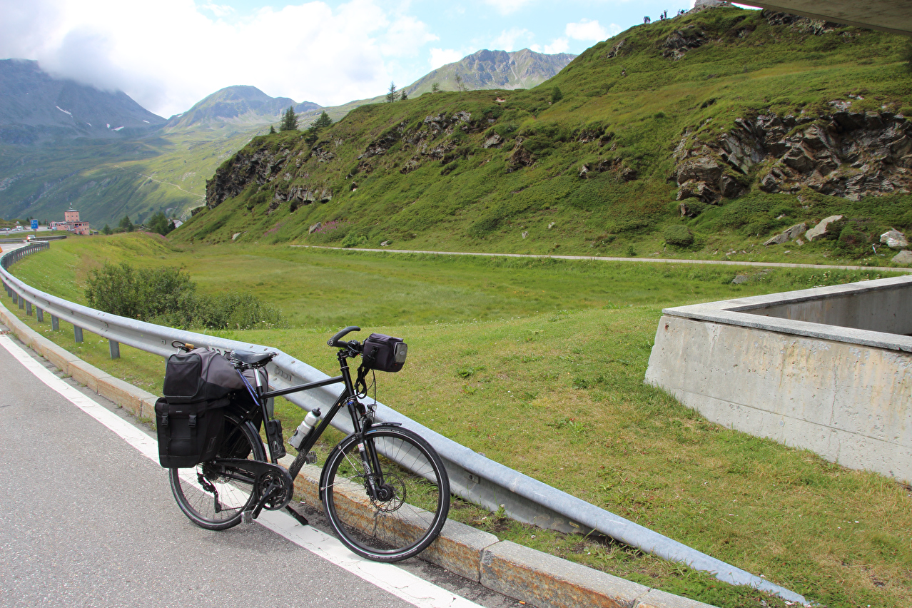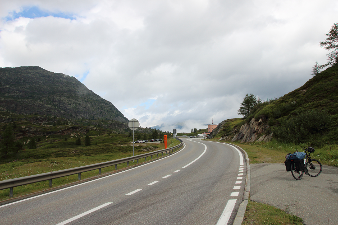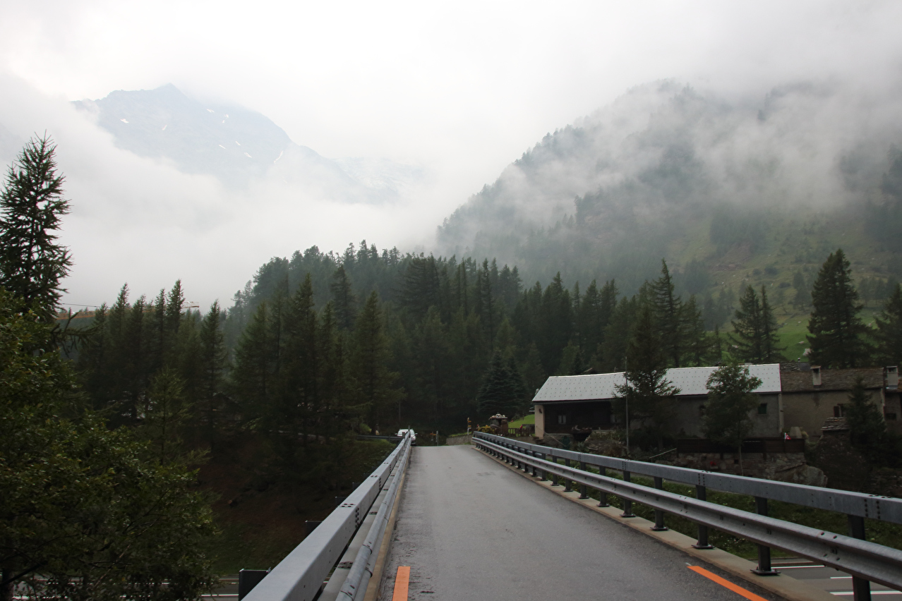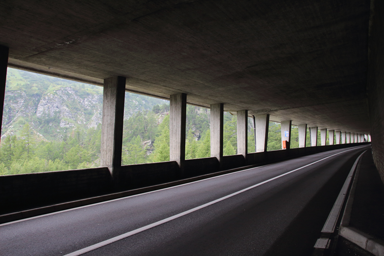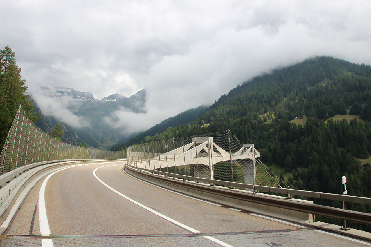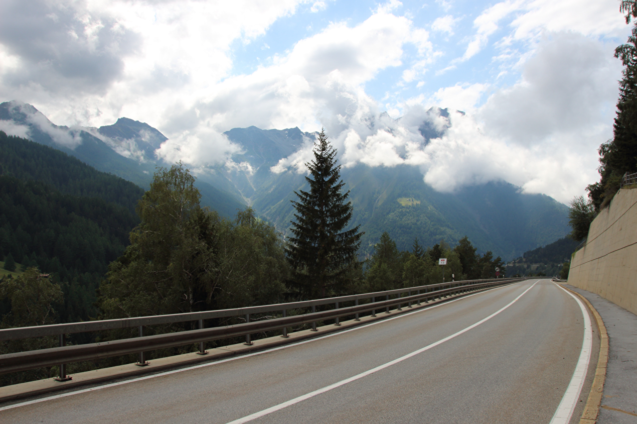 Beschreibung | Rechtzeitig zum Start der letzten Etappe dieser Tour hatte der über Nacht aufgezogene Regen aufgehört. Im Verlauf der Etappe schob die Sonne immer mehr Wolken bei Seite, aber einige Berggipfel blieben unter Wolken verborgen. Bis Egga erfolgte Die Fahrt auf der Alten Simplonstrasse, die dort erst mal endet. Kurz darauf folgt die schier endlos lange Engigalerie bis Engiloch. Der Name ist nicht ganz eindeutig. Am Wanderwegweiser vor Ort und in der topografischen Landeskarte der Schweiz heißt der Ort Engiloch, auf dem Ortsschild hingegen steht Engeloch. Weiter oben hätte noch einmal auf die Alte Simplonstrasse gewechselt werden können, die dort aber bis zum Alten Hospiz bergab führt. Auf die damit einhergehenden zusätzlichen Höhenmeter bergauf und die zusätzlichen Streckenkilometer wurde verzichtet und die Etappe auf der Neuen Simplonstrasse gefahren. Die Passhöhe wurde zeitig erreicht. Dort wurde Mittag gegessen und dieser für dieses Jahr letzte Aufenthalt oberhalb 2000 m ü. M. etwas ausgedehnt. Den genauen Kulminationspunkt der Passstraße zu finden ist ohne Messgeräte nicht möglich, da die Passhöhe sehr ausgedehnt ist und auch kein Schild am Kulminationspunkt der Passstraße steht. Die geographische Passhöhe liegt auf 1996 m ü. M. unterhalb des Kulminationspunktes der Passstraße, ist aber nur zu Fuß erreichbar. Dann folgte die letzte Abfahrt dieser Tour. Knapp unterhalb der Passhöhe steht ein Passhöhenschild an der Passstraße. Von dort bot sich ein letzter weiter Ausblick nach Nordwesten auf die vergletscherten Berner Alpen. Weiter unten auf der Nordrampe folgen die Kaltwassergalerie mit dem darin enthaltenen Kulmtunnel und die Schallbettgalerie. Diese beiden Galerien sind nur in Schallbett durch ein kurzes offenes Straßenstück voneinander getrennt. Die Schallbettgalerie geht nahtlos in den Kapftunnel über, an den sich nahtlos die Meggerigalerie anschließt. Ab Rothwald bergab ist die Nordrampe erst mal nicht überbaut. Unterhalb von Bärisal hätte wieder ein Stück auf der Alten Simplonstrasse gefahren werden können. Diese Abfahrt war aber nicht gekennzeichnet. Außerdem wäre damit die Ganterbrücke umfahren worden. Daher wurde auf der Neuen Simplonstrasse weiter gefahren. Mit der Ganterbrücke (Höhe Fahrbahnoberkante über Grund max. 15 0m) wurde die bis dato höchste Brücke überquert. Die Ganterbrücke ist seitlich sehr gut abgesichert. Die Sicherungsnetze schützen zwar auch den Verkehr, wurden aber primär zur Verhinderung von Suiziden montiert. Für den Verkehr sind weitere Sicherungen vorhanden. Unterhalb von Schallberg folgten mit Schallbergtunnel, Bächwaldtunnel und Gesternatunnel die drei letzten Tunnel dieser Tour. In Ried-Brig wurde zwangsläufig für den Rest der Etappe auf die Alte Simplonstrasse gewechselt, da die Neue Simplonstrasse ab dort bis Brig für Velofahrer gesperrt ist. Dieser letzte Abschnitt auf der Alten Simplonstrasse führte ans Ufer der Saltina in Brig, wo auch das letzte Quartier dieser Tour lag. Zur Vermeidung böser Überraschungen am Abreisetag wurde die Etappe vom Standort des Quartiers bis zum Bahnhof Brig fortgesetzt. Von dort aus waren es nur wenige hundert Meter bis zur Rhone, die dann auch noch überquert wurde. Direkt nach der Flussüberquerung traf die Etappe am Nordufer auf die Rhone-Route, deren "Kilometer 0" schon in Andermatt erreicht worden war. Für Schweizer Alpenpässe unüblich ist die komplett fehlende Beschilderung für den Veloverkehr über den Simplonpass. Daran, dass die Südrampe die Grenze nach Italien überschreitet, kann es eigentlich nicht liegen. Schließlich besteht über den Simplonpass auch ein grenzüberschreitender Postautokurs (Buslinie) zwischen Brig und Domodossola in Italien. Die Ganterbrücke als Grund scheidet auch aus. Zum einen ist die sicher genug für eine Überquerung mit dem Velo. Zum anderen kann diese bei Bedarf auf der Alten Simplonstrasse umfahren werden. Die Belastung mit Stinkeverkehr ist auf der Neuen Simplonstrasse nicht höher als auf anderen stark frequentierten Alpenpässen, die trotzdem auch für den Veloverkehr ausgeschildert sind. Als wahrscheinlichster Grund für die fehlende Beschilderung für den Veloverkehr kommen die sehr langen Galerien beiderseits der Passhöhe in Frage, die nicht umfahren werden können. |