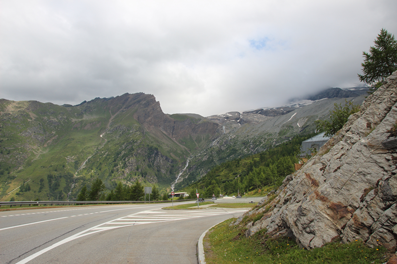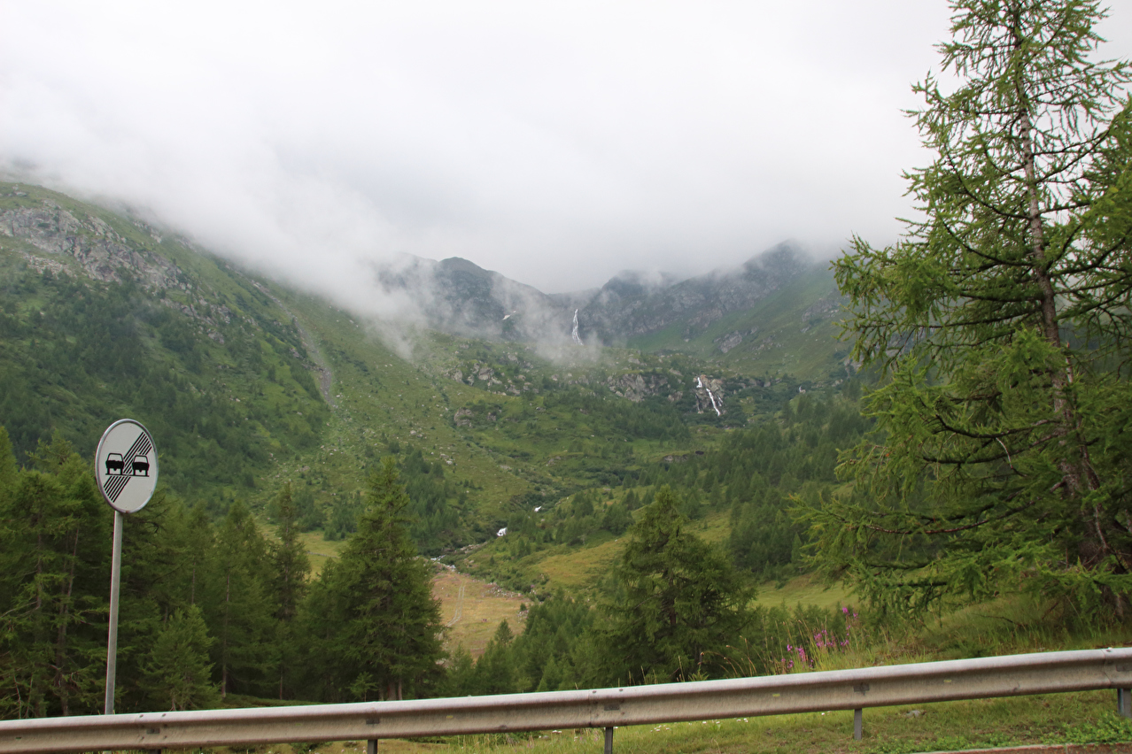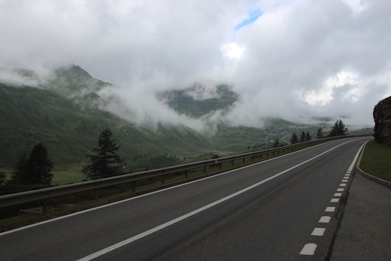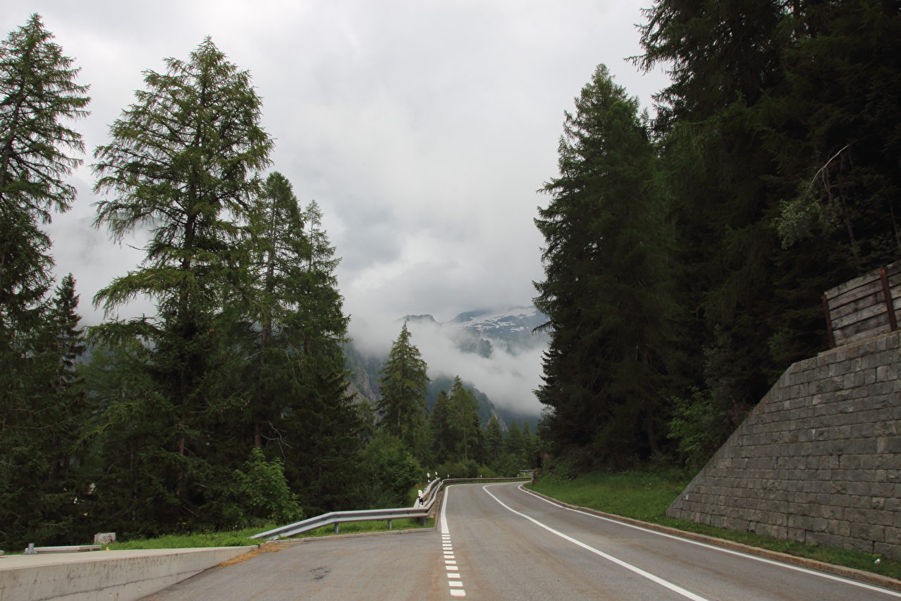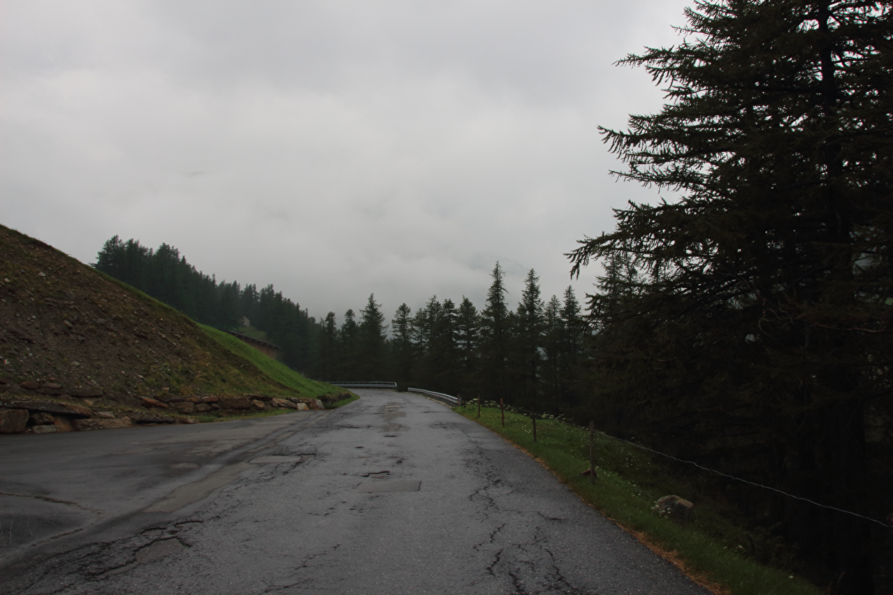 Beschreibung | Rechtzeitig zum Start der letzten Etappe dieser Tour hatte der über Nacht aufgezogene Regen aufgehört. Im Verlauf der Etappe schob die Sonne immer mehr Wolken bei Seite, aber einige Berggipfel blieben unter Wolken verborgen. Bis Egga erfolgte Die Fahrt auf der Alten Simplonstrasse, die dort erst mal endet. Kurz darauf folgt die schier endlos lange Engigalerie bis Engiloch. Der Name ist nicht ganz eindeutig. Am Wanderwegweiser vor Ort und in der topografischen Landeskarte der Schweiz heißt der Ort Engiloch, auf dem Ortsschild hingegen steht Engeloch. Weiter oben hätte noch einmal auf die Alte Simplonstrasse gewechselt werden können, die dort aber bis zum Alten Hospiz bergab führt. Auf die damit einhergehenden zusätzlichen Höhenmeter bergauf und die zusätzlichen Streckenkilometer wurde verzichtet und die Etappe auf der Neuen Simplonstrasse gefahren. Die Passhöhe wurde zeitig erreicht. Dort wurde Mittag gegessen und dieser für dieses Jahr letzte Aufenthalt oberhalb 2000 m ü. M. etwas ausgedehnt. Den genauen Kulminationspunkt der Passstraße zu finden ist ohne Messgeräte nicht möglich, da die Passhöhe sehr ausgedehnt ist und auch kein Schild am Kulminationspunkt der Passstraße steht. Die geographische Passhöhe liegt auf 1996 m ü. M. unterhalb des Kulminationspunktes der Passstraße, ist aber nur zu Fuß erreichbar. Dann folgte die letzte Abfahrt dieser Tour. Knapp unterhalb der Passhöhe steht ein Passhöhenschild an der Passstraße. Von dort bot sich ein letzter weiter Ausblick nach Nordwesten auf die vergletscherten Berner Alpen. Weiter unten auf der Nordrampe folgen die Kaltwassergalerie mit dem darin enthaltenen Kulmtunnel und die Schallbettgalerie. Diese beiden Galerien sind nur in Schallbett durch ein kurzes offenes Straßenstück voneinander getrennt. Die Schallbettgalerie geht nahtlos in den Kapftunnel über, an den sich nahtlos die Meggerigalerie anschließt. Ab Rothwald bergab ist die Nordrampe erst mal nicht überbaut. Unterhalb von Bärisal hätte wieder ein Stück auf der Alten Simplonstrasse gefahren werden können. Diese Abfahrt war aber nicht gekennzeichnet. Außerdem wäre damit die Ganterbrücke umfahren worden. Daher wurde auf der Neuen Simplonstrasse weiter gefahren. Mit der Ganterbrücke (Höhe Fahrbahnoberkante über Grund max. 15 0m) wurde die bis dato höchste Brücke überquert. Die Ganterbrücke ist seitlich sehr gut abgesichert. Die Sicherungsnetze schützen zwar auch den Verkehr, wurden aber primär zur Verhinderung von Suiziden montiert. Für den Verkehr sind weitere Sicherungen vorhanden. Unterhalb von Schallberg folgten mit Schallbergtunnel, Bächwaldtunnel und Gesternatunnel die drei letzten Tunnel dieser Tour. In Ried-Brig wurde zwangsläufig für den Rest der Etappe auf die Alte Simplonstrasse gewechselt, da die Neue Simplonstrasse ab dort bis Brig für Velofahrer gesperrt ist. Dieser letzte Abschnitt auf der Alten Simplonstrasse führte ans Ufer der Saltina in Brig, wo auch das letzte Quartier dieser Tour lag. Zur Vermeidung böser Überraschungen am Abreisetag wurde die Etappe vom Standort des Quartiers bis zum Bahnhof Brig fortgesetzt. Von dort aus waren es nur wenige hundert Meter bis zur Rhone, die dann auch noch überquert wurde. Direkt nach der Flussüberquerung traf die Etappe am Nordufer auf die Rhone-Route, deren "Kilometer 0" schon in Andermatt erreicht worden war. Für Schweizer Alpenpässe unüblich ist die komplett fehlende Beschilderung für den Veloverkehr über den Simplonpass. Daran, dass die Südrampe die Grenze nach Italien überschreitet, kann es eigentlich nicht liegen. Schließlich besteht über den Simplonpass auch ein grenzüberschreitender Postautokurs (Buslinie) zwischen Brig und Domodossola in Italien. Die Ganterbrücke als Grund scheidet auch aus. Zum einen ist die sicher genug für eine Überquerung mit dem Velo. Zum anderen kann diese bei Bedarf auf der Alten Simplonstrasse umfahren werden. Die Belastung mit Stinkeverkehr ist auf der Neuen Simplonstrasse nicht höher als auf anderen stark frequentierten Alpenpässen, die trotzdem auch für den Veloverkehr ausgeschildert sind. Als wahrscheinlichster Grund für die fehlende Beschilderung für den Veloverkehr kommen die sehr langen Galerien beiderseits der Passhöhe in Frage, die nicht umfahren werden können. |