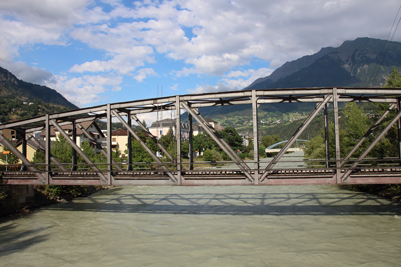 Blick über die überquerte Rhonebrücke auf Brig ![]() 300 dpi JPEG |