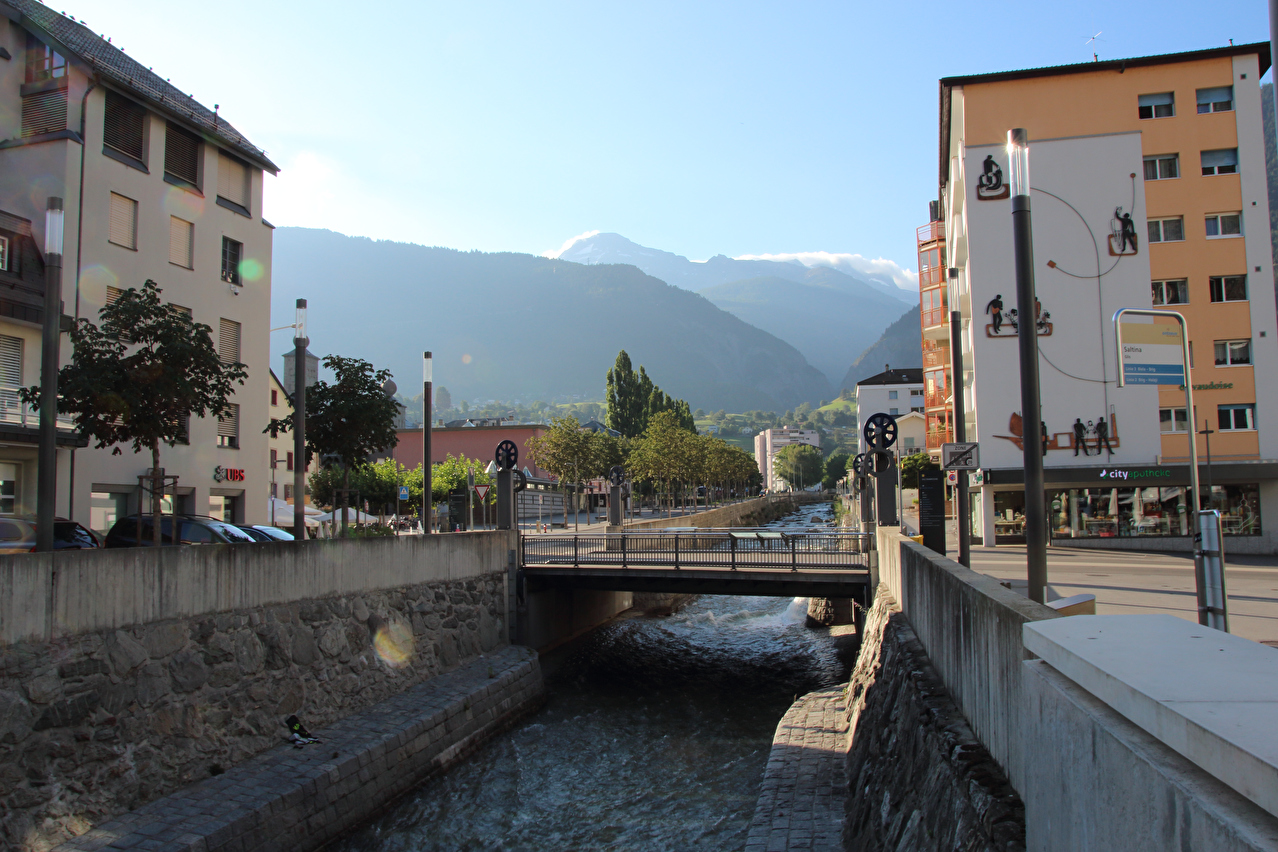 die Saltina in Brig, Blick flussabwärts ![]() 300 dpi JPEG |