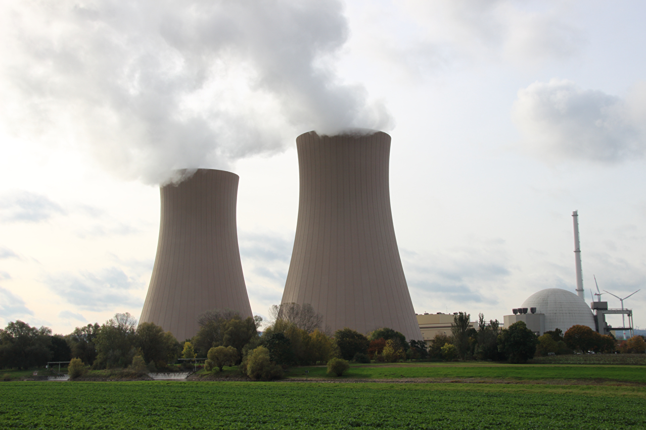 Kernkraftwerk Grohnde mit den beiden Naturzug-Nasskühltürmen ![]() 300 dpi JPEG |