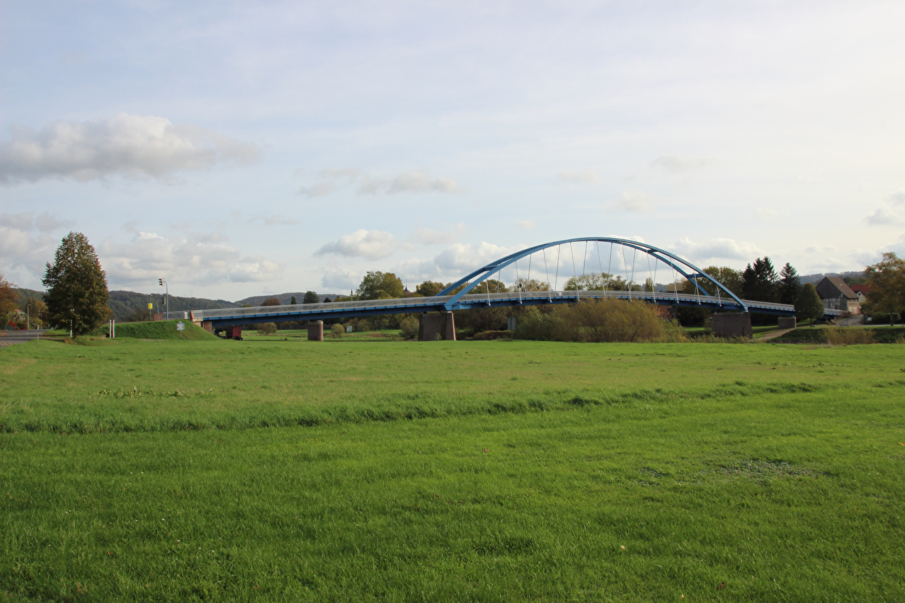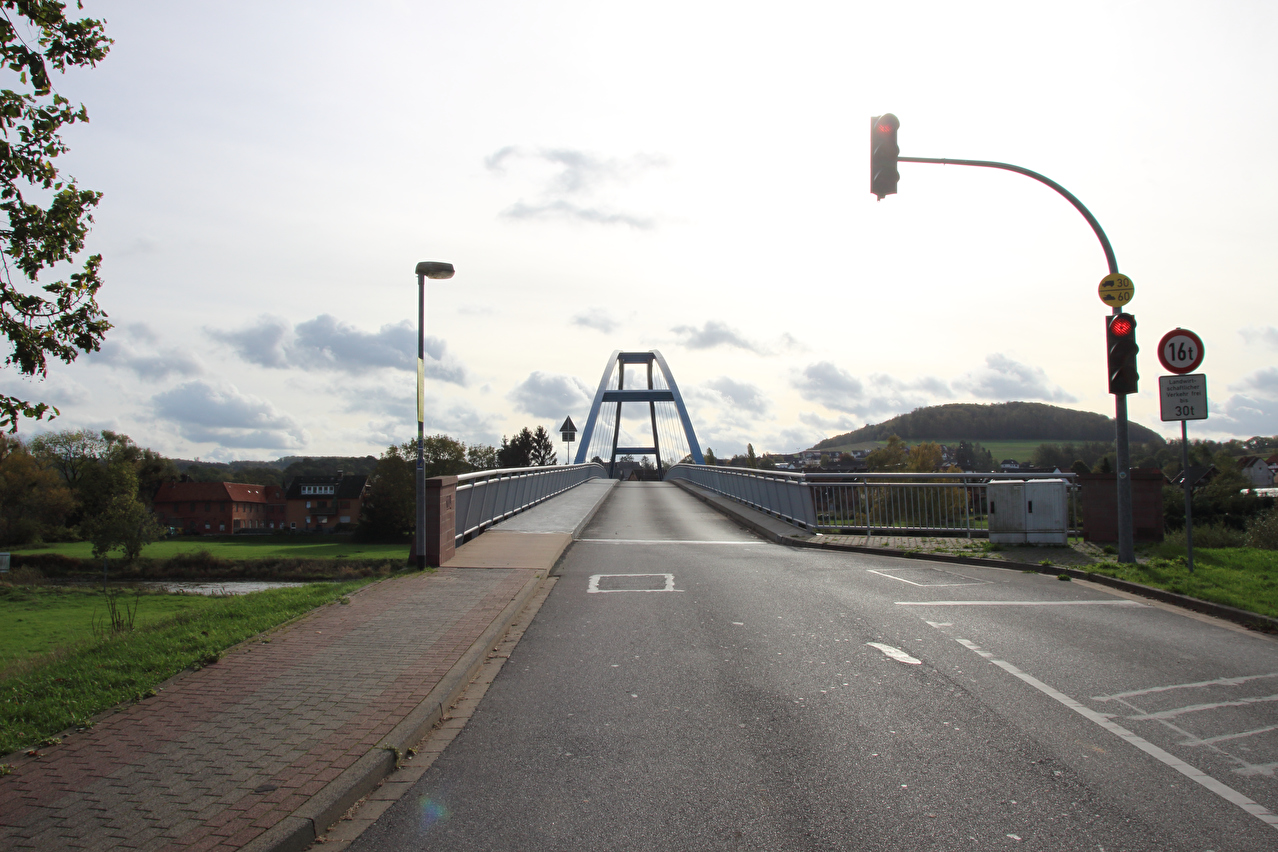 … und Blick nach Norden auf die Weserbrücke der Bahnstrecke Hannover–Altenbeken ![]() 300 dpi JPEG |