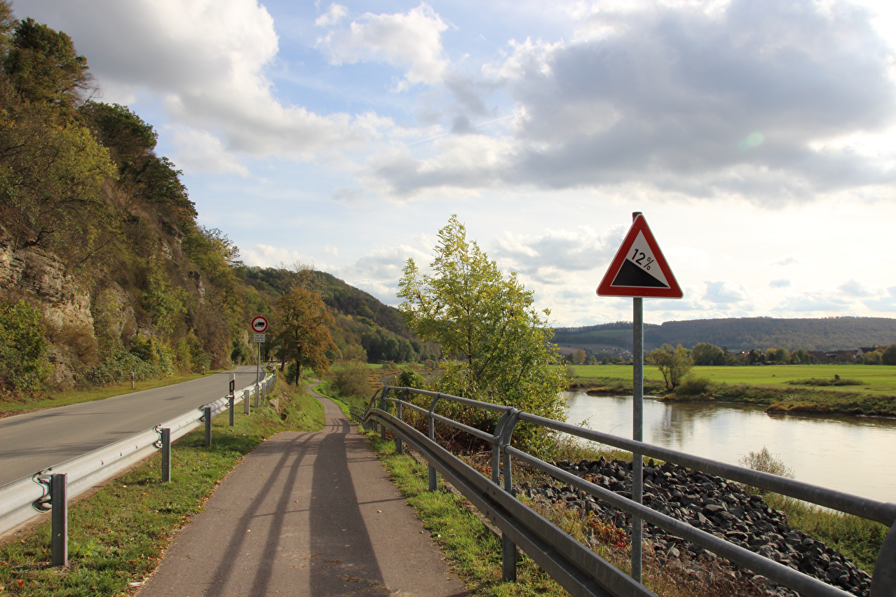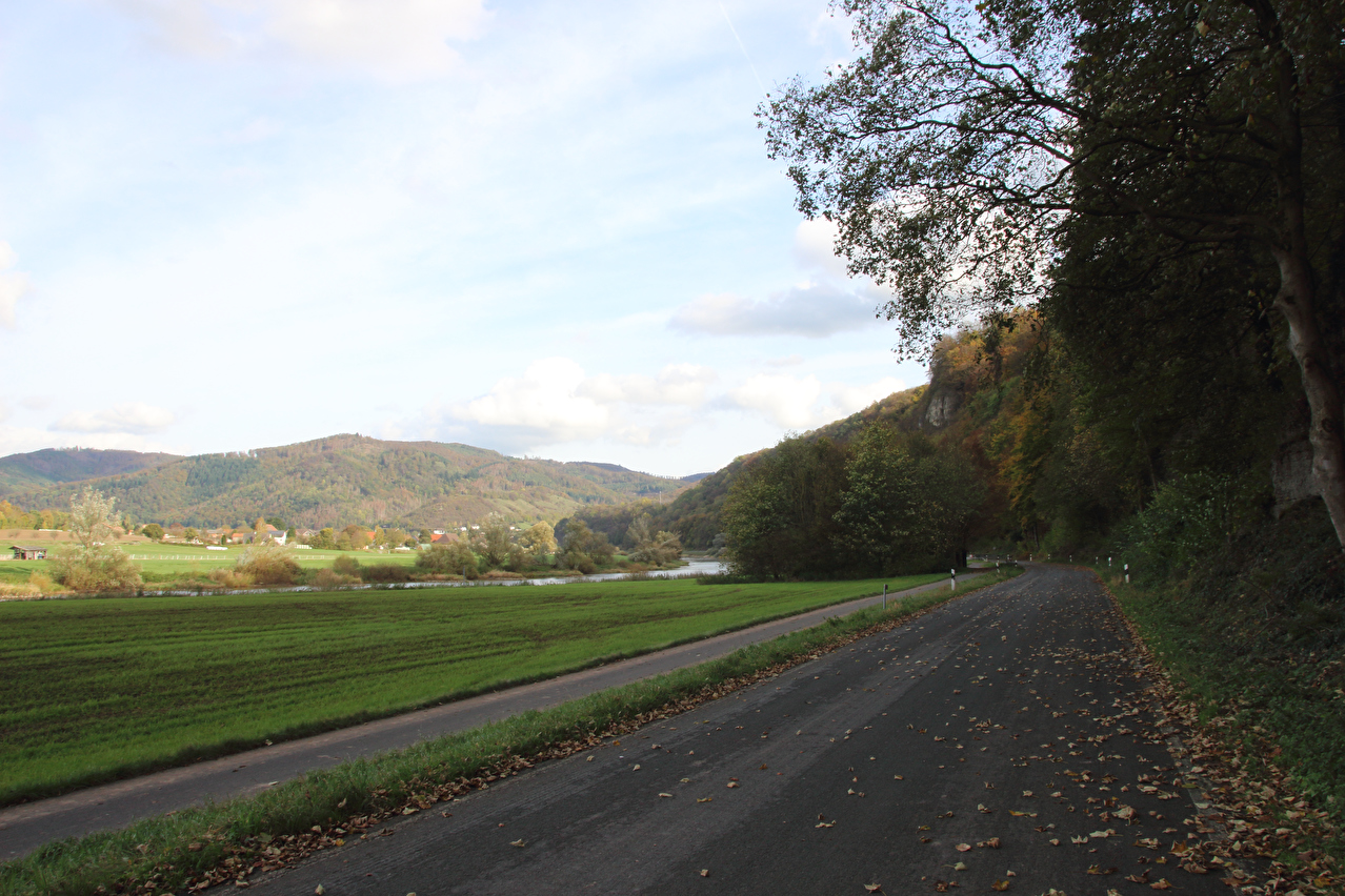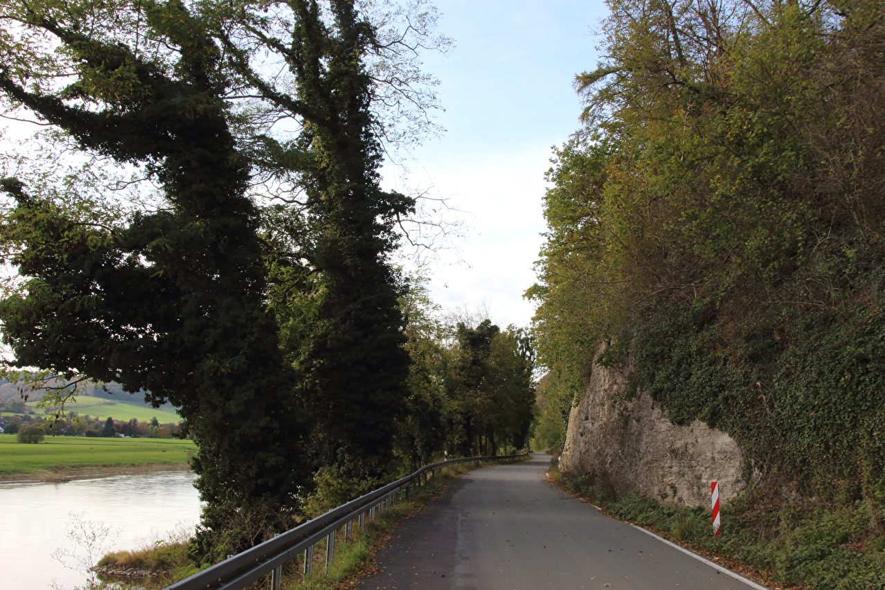 Beschreibung | Bei schönem, aber in dieser Jahreszeit nicht mehr sonderlich warmem Wetter fiel die Entscheidung für eine Flachetappe auf dem Weserradweg. In Rühle sollte dann zum Abschluss der Fahrradsaison "am Berg" doch noch durch die Rühler Schweiz auf der Passstraße zwischen Rühle und Golmbach mit Abzweig nach Lütgenade gefahren werden. Die Abfahrt vom Weserradweg nach Rühle schon in Sicht riss aber eine Speiche im Hinterrad. Somit kam wieder eine Notspeiche zum Einsatz und die Tour wurde daraufhin flach auf dem Weserradweg, also im Wesertal zu Ende gefahren. Das Landschaftsbild war für eine Flachetappe zwar durchaus ansprechend, aber ein Fahrradsaisonabschluss " am Berg" auf der Passstraße wäre doch schöner gewesen. |