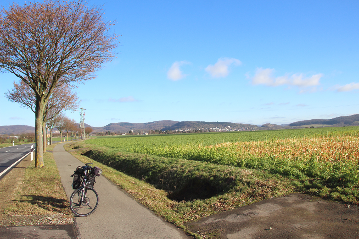 Beschreibung | Das sonnige, aber kalte Wetter wurde im Rahmen einer ohnehin anstehenden Fahrt nach Holzminden für eine kurze Tour genutzt. Einen Halt vor Holzminden, also in Stadtoldendorf wurde vom Zug auf das Fahrrad umgestiegen. Die Strecke von Stadtoldendorf nach Holzminden führt ab Deensen in die falsche Richtung, also bergab. In dieser Jahreszeit war das aber immer noch besser als gar nicht zu fahren. |