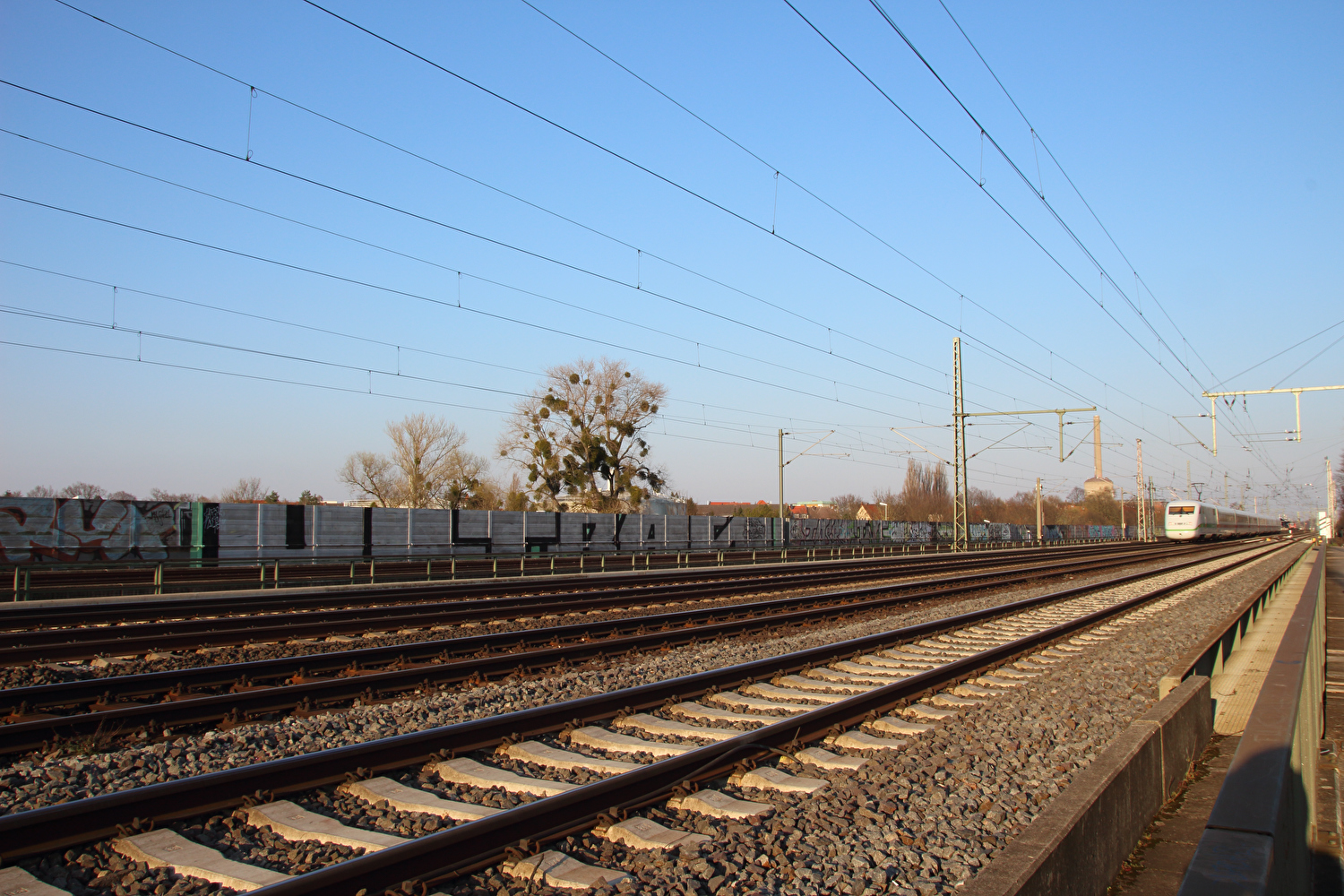 Blick über die Bahnstrecke Hannover–Minden nach Westen … ![]() 300 dpi JPEG  |