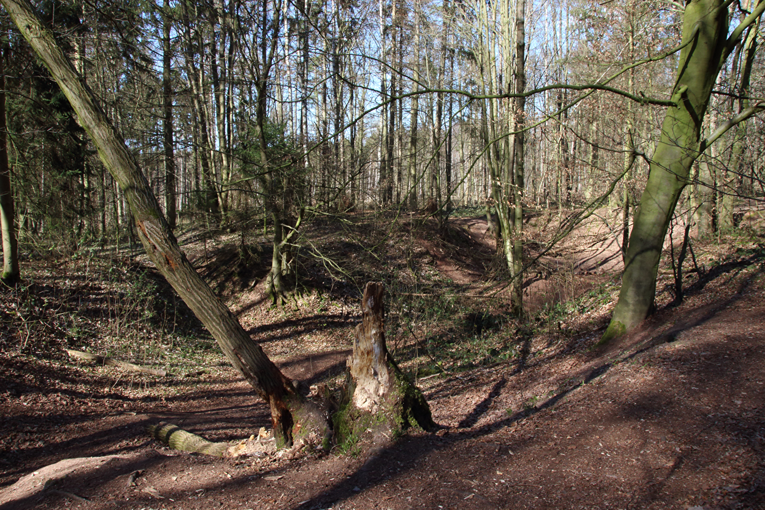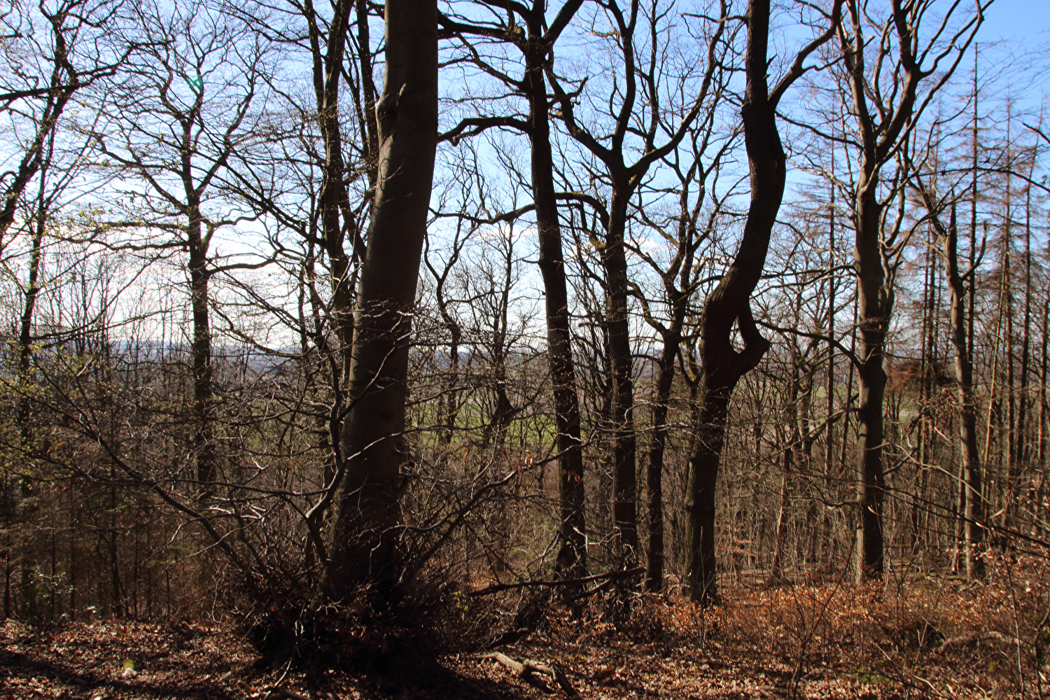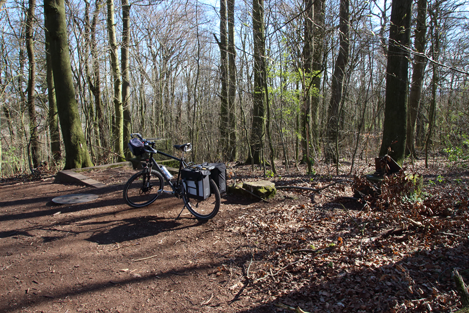 Beschreibung | Der Benther Berg bietet die Möglichkeit für eine kurze Tour mit wenigstens einigen Höhenmetern bergauf, wenn es für eine längere Tour zu kalt ist oder die Zeit dafür nicht ausreicht. Die Anstiege bzw. Abfahrten sind sehr kurz, weisen aber mitunter Neigungen von mehr als 20 % auf. Die Fahrbahnbeläge sind sehr unterschiedlich und teilweise sehr holprig. Außer bei Dauerfrost oder längerer Trockenheit gibt es matschige Streckenabschnitte. Daher sollte nur mit einem geländegängigen Fahrrad mit bergtauglicher Schaltung und leistungsfähigen Bremsen gefahren werden. Für schnelle Bergabfahrten sind entsprechende Fahrtechniken erforderlich. Auf den Singletrails gibt es keine Einbahnstraßenregelung. Daher ist auch dort mit Gegenverkehr zu rechnen. Da Berge in der Region Mangelware sind und der Benther Berg direkt an die Stadt Hannover grenzt, ist er stark frequentiert. Daher ist jederzeit und überall mit Fußgängern und Hunden zu rechnen. Bei dieser Tour zeigte sich der Wald noch recht durchsichtig, da Laubbäume und Sträucher noch kein Laub ausgetrieben hatten. Die Fernsicht reichte gerade so eben bis zum Brocken im Harz. Wegen der anhaltenden Trockenheit war Matsch kein Thema. |