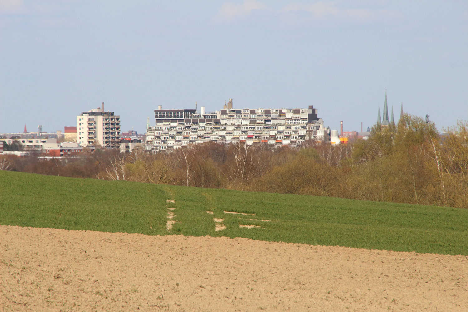 Zoom auf v. l. n. r.: Terassenhaus in Badenstedt und Bethlehemkirche ![]() 300 dpi JPEG |
