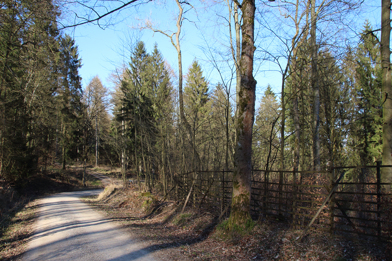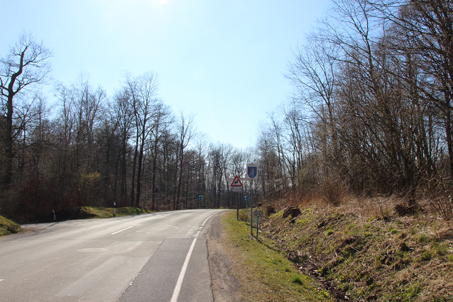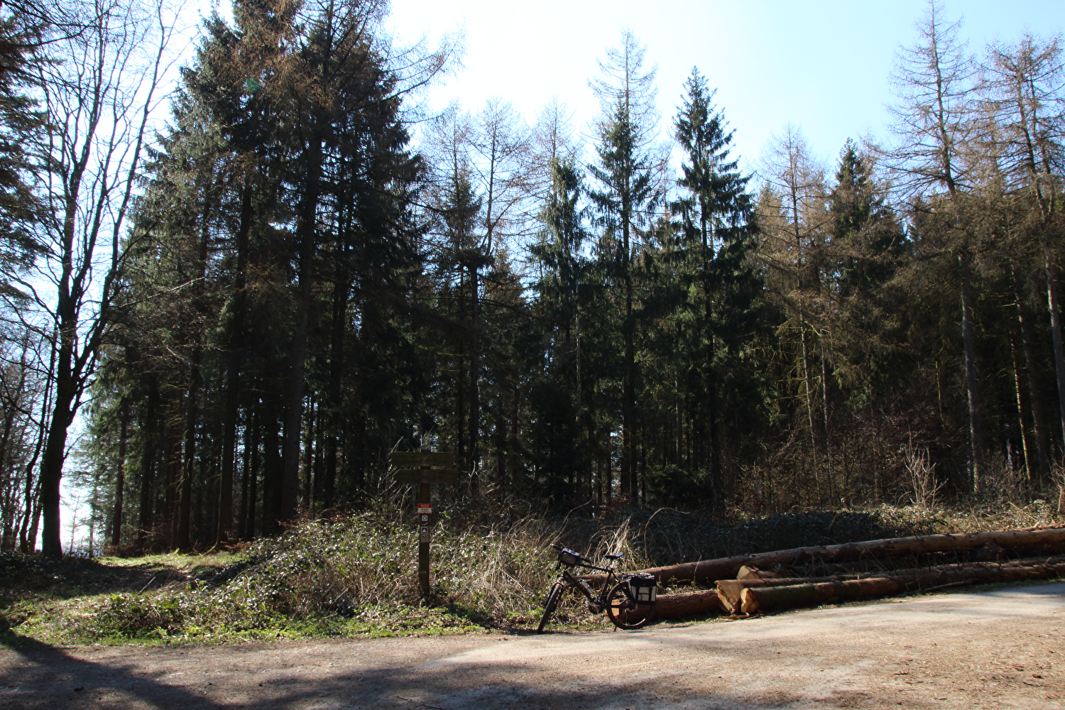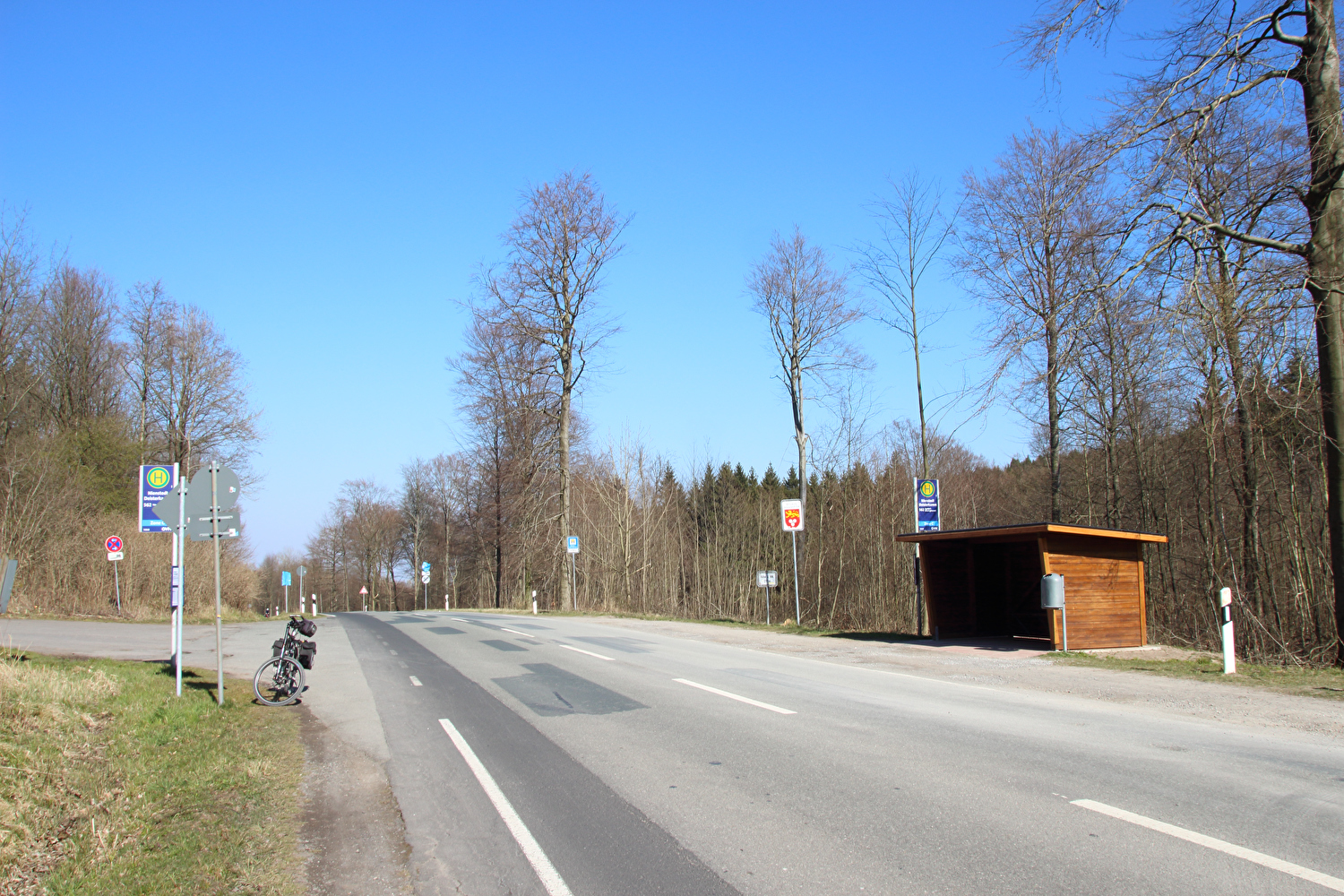 Beschreibung | Da sich weder die meteorologische noch die politische Großwetterlage geändert hatten und somit sowohl die Hochdruckwetterlage als auch die staatlichen Zwangsmaßnahmen fortbestanden, wurde nun schon zum zweiten Mal innerhalb kurzer Zeit „nur der Deister“ gefahren. Die Fahrt bis zum Deister zog sich auf der gewählten Route etwas in die Länge, obwohl auf Benther Berg und Gehrdener Berg verzichtet wurde. Auf dem Deister machte sich ein fies kalter Ostwind bemerkbar, der auch den Rest der Tour meist aus der falschen Richtung, also mehr oder weniger von vorne kommend begleitete. Die gegenüber dem Leinetal und der Norddeutschen Tiefebene verhältnismäßig hohe Reliefenergie des Deisters lässt westlich von Leveste den Eindruck eines „Deistervorlandes“ aufkommen in Analogie zum nördlichen Harzvorland oder nördlichen Alpenvorland, nur eben im Vergleich dazu als Miniaturausgabe. Verstärkt wird dieser Eindruck durch die im Deister entspringenden Fließgewässer, die dieses Gebiet durchfließen. Der Levester Bach, der selbst nicht im Deister entspringt, hat an der fotografierten Stelle bereits den im Deister entspringenden Schleifbach aufgenommen, der Stockbach entspringt im Deister und der Kirchdorfer Mühlbach wird aus dem Zusammenfluss von Beerbeeke und Spalterhalsbach gebildet, die beide im Deister entspringen. |