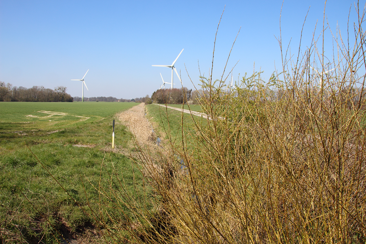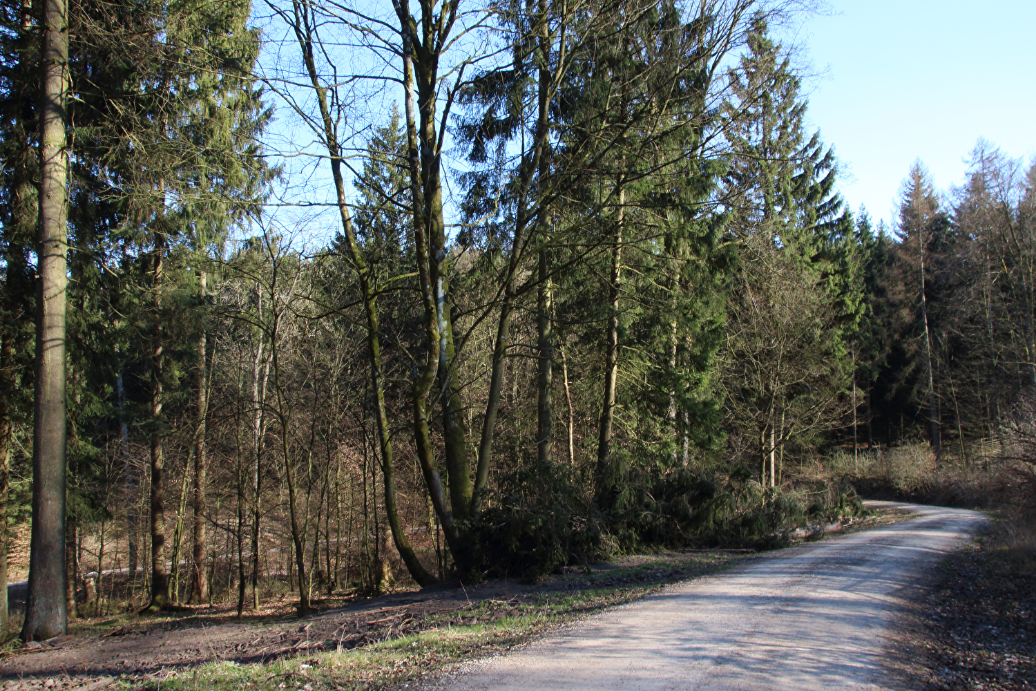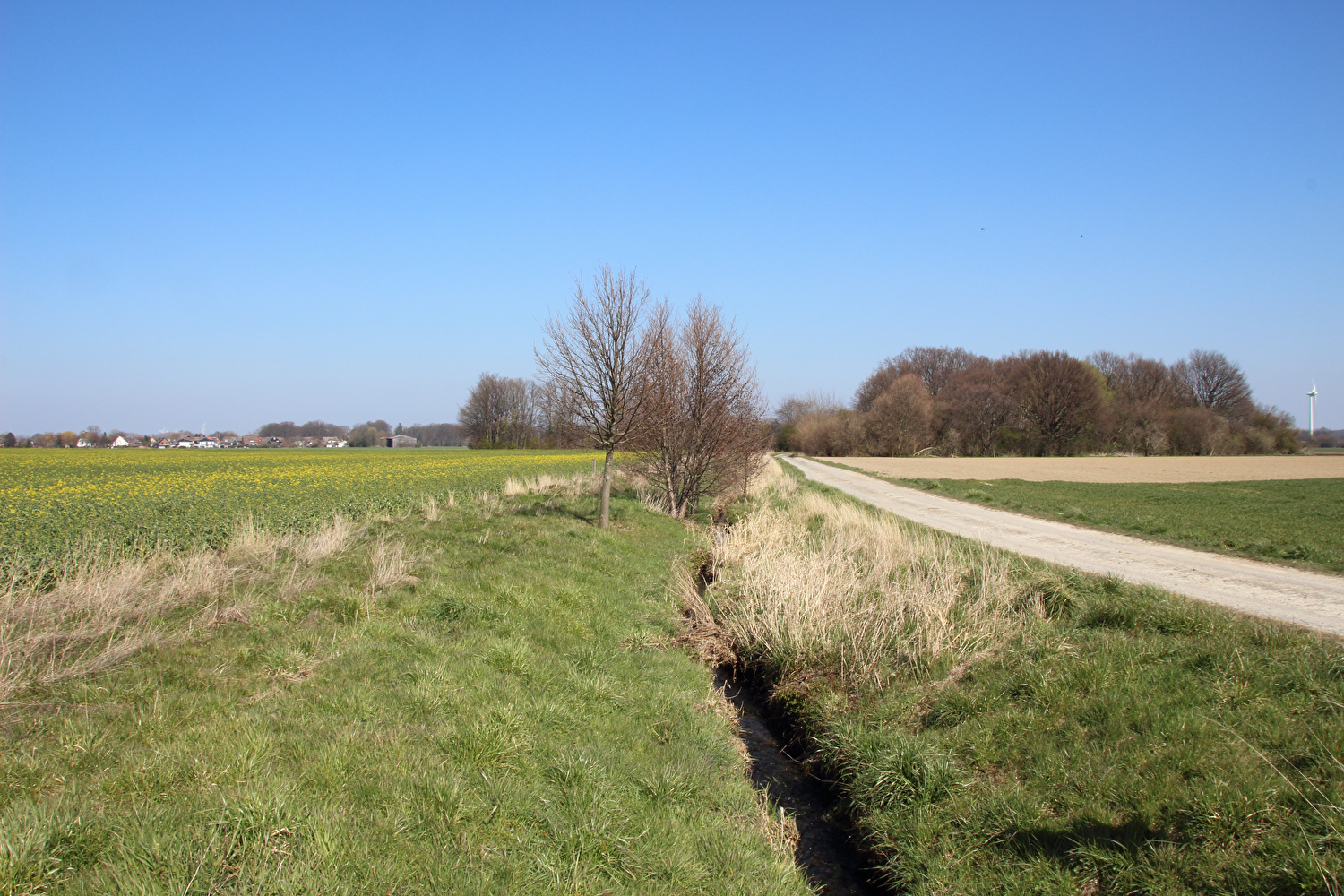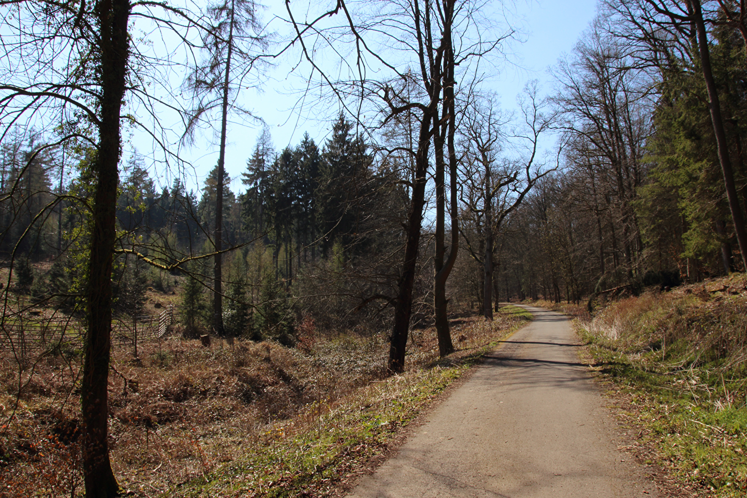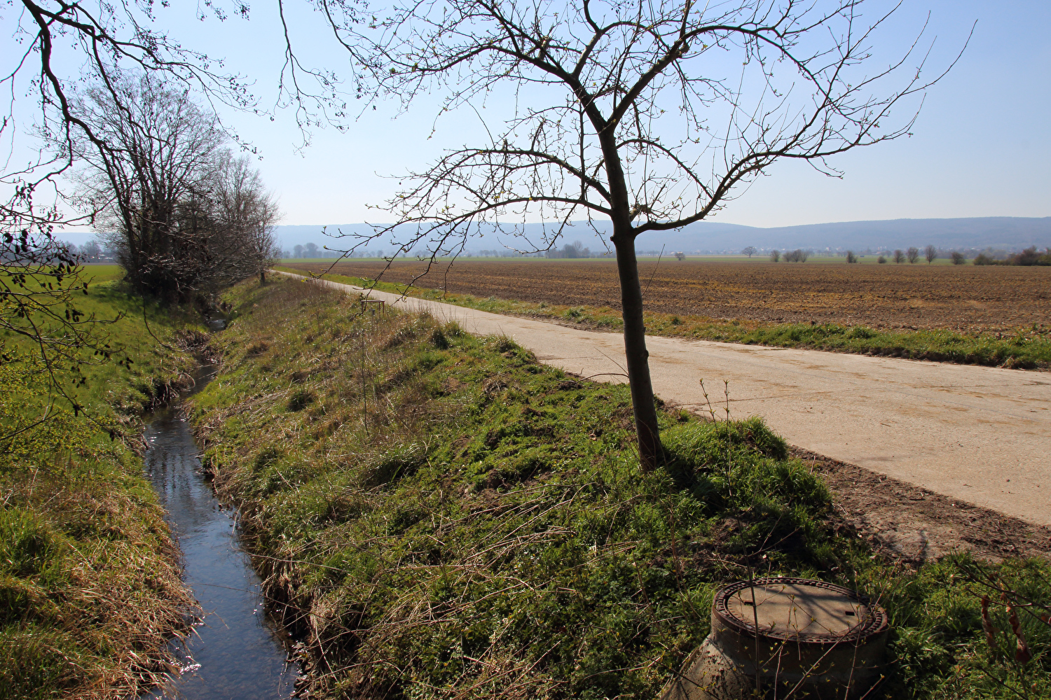 Beschreibung | Da sich weder die meteorologische noch die politische Großwetterlage geändert hatten und somit sowohl die Hochdruckwetterlage als auch die staatlichen Zwangsmaßnahmen fortbestanden, wurde nun schon zum zweiten Mal innerhalb kurzer Zeit „nur der Deister“ gefahren. Die Fahrt bis zum Deister zog sich auf der gewählten Route etwas in die Länge, obwohl auf Benther Berg und Gehrdener Berg verzichtet wurde. Auf dem Deister machte sich ein fies kalter Ostwind bemerkbar, der auch den Rest der Tour meist aus der falschen Richtung, also mehr oder weniger von vorne kommend begleitete. Die gegenüber dem Leinetal und der Norddeutschen Tiefebene verhältnismäßig hohe Reliefenergie des Deisters lässt westlich von Leveste den Eindruck eines „Deistervorlandes“ aufkommen in Analogie zum nördlichen Harzvorland oder nördlichen Alpenvorland, nur eben im Vergleich dazu als Miniaturausgabe. Verstärkt wird dieser Eindruck durch die im Deister entspringenden Fließgewässer, die dieses Gebiet durchfließen. Der Levester Bach, der selbst nicht im Deister entspringt, hat an der fotografierten Stelle bereits den im Deister entspringenden Schleifbach aufgenommen, der Stockbach entspringt im Deister und der Kirchdorfer Mühlbach wird aus dem Zusammenfluss von Beerbeeke und Spalterhalsbach gebildet, die beide im Deister entspringen. |