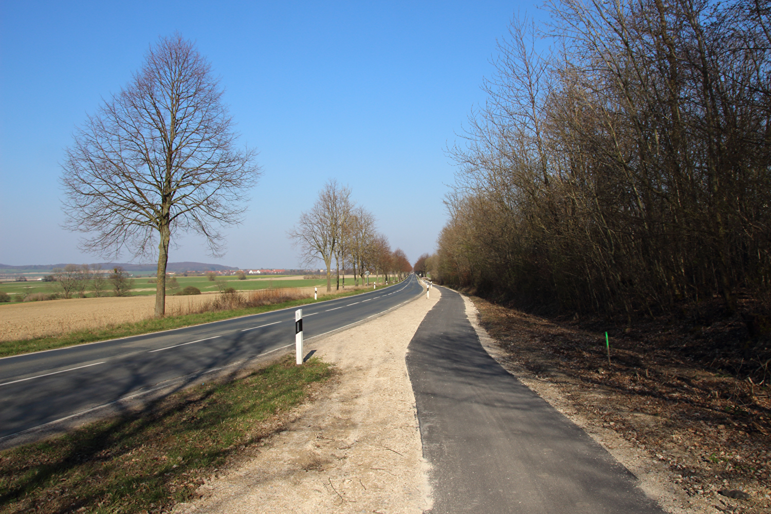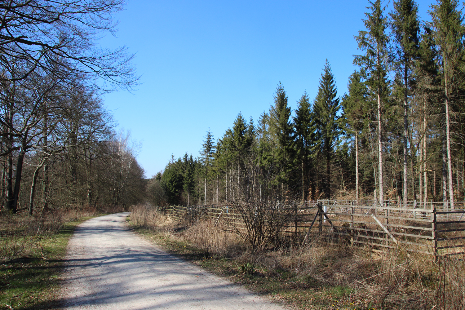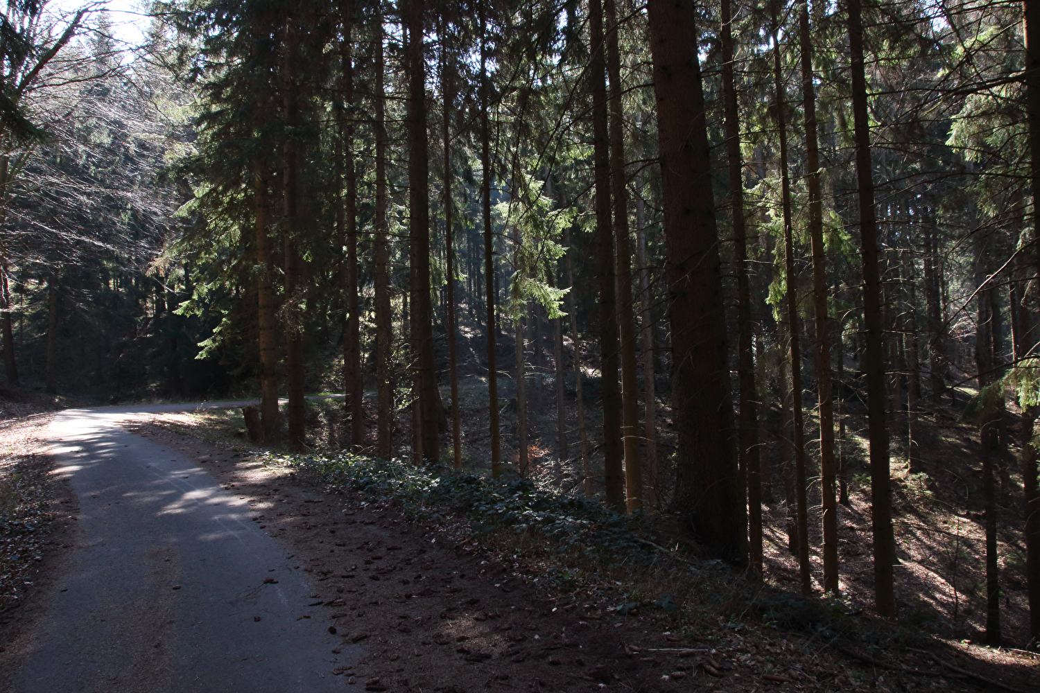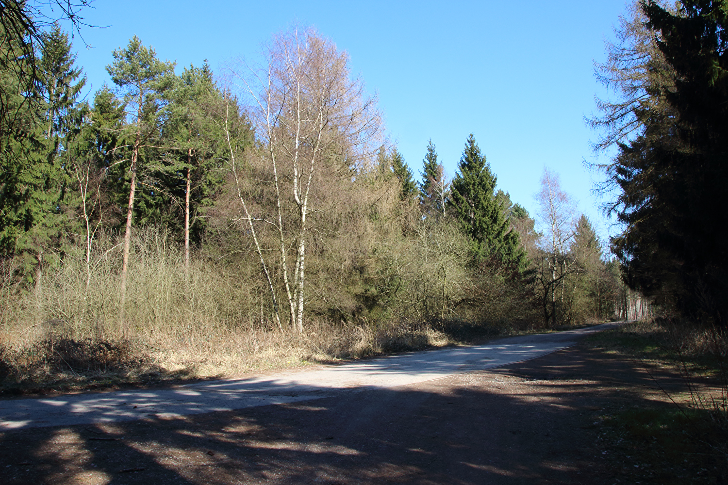 Beschreibung | Da sich weder die meteorologische noch die politische Großwetterlage geändert hatten und somit sowohl die Hochdruckwetterlage als auch die staatlichen Zwangsmaßnahmen fortbestanden, wurde nun schon zum zweiten Mal innerhalb kurzer Zeit „nur der Deister“ gefahren. Die Fahrt bis zum Deister zog sich auf der gewählten Route etwas in die Länge, obwohl auf Benther Berg und Gehrdener Berg verzichtet wurde. Auf dem Deister machte sich ein fies kalter Ostwind bemerkbar, der auch den Rest der Tour meist aus der falschen Richtung, also mehr oder weniger von vorne kommend begleitete. Die gegenüber dem Leinetal und der Norddeutschen Tiefebene verhältnismäßig hohe Reliefenergie des Deisters lässt westlich von Leveste den Eindruck eines „Deistervorlandes“ aufkommen in Analogie zum nördlichen Harzvorland oder nördlichen Alpenvorland, nur eben im Vergleich dazu als Miniaturausgabe. Verstärkt wird dieser Eindruck durch die im Deister entspringenden Fließgewässer, die dieses Gebiet durchfließen. Der Levester Bach, der selbst nicht im Deister entspringt, hat an der fotografierten Stelle bereits den im Deister entspringenden Schleifbach aufgenommen, der Stockbach entspringt im Deister und der Kirchdorfer Mühlbach wird aus dem Zusammenfluss von Beerbeeke und Spalterhalsbach gebildet, die beide im Deister entspringen. |