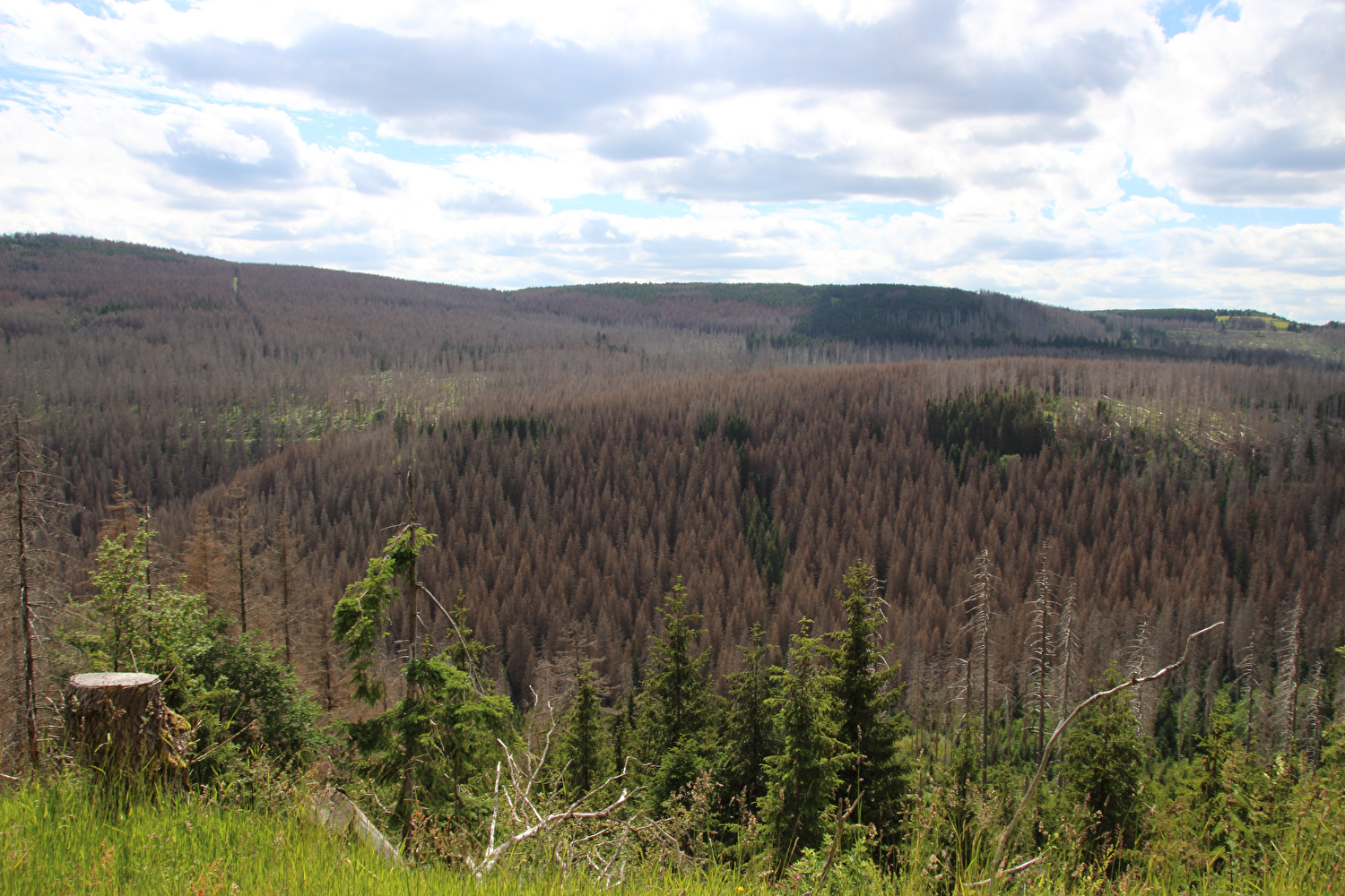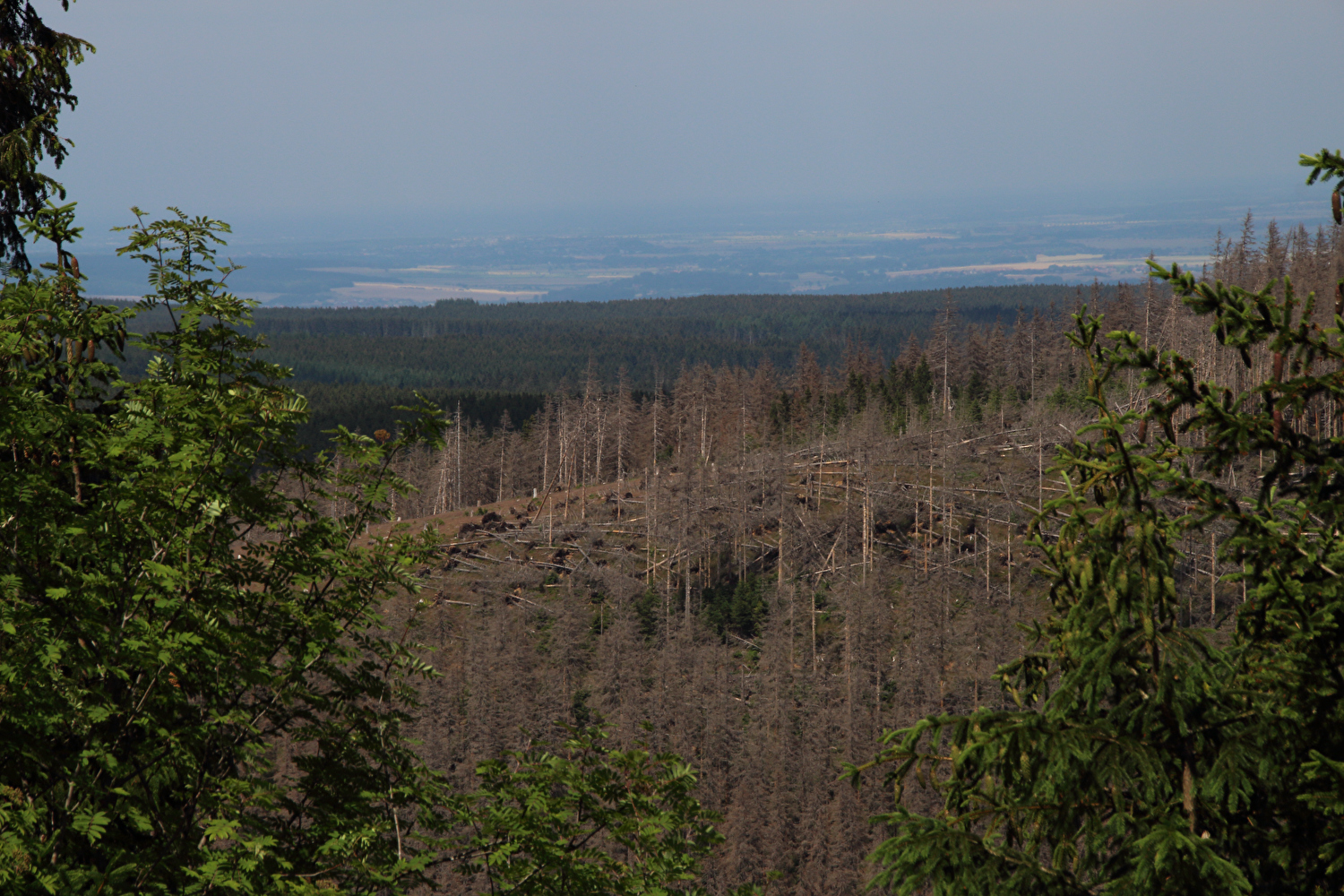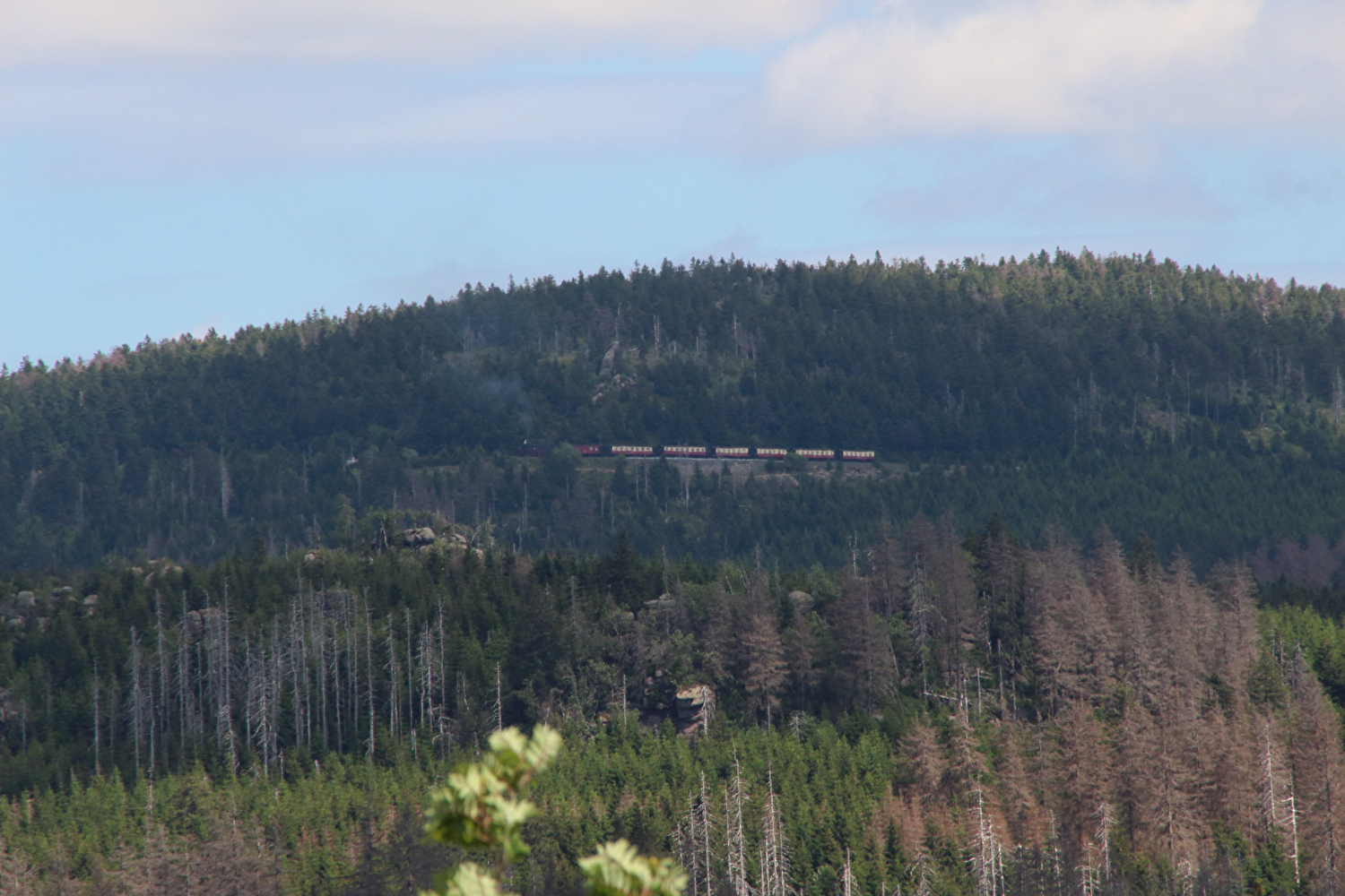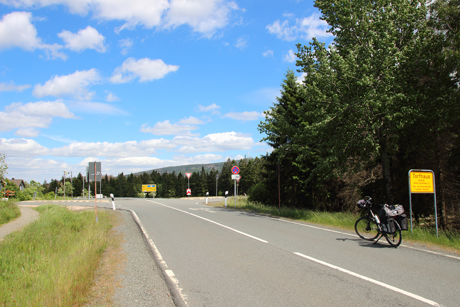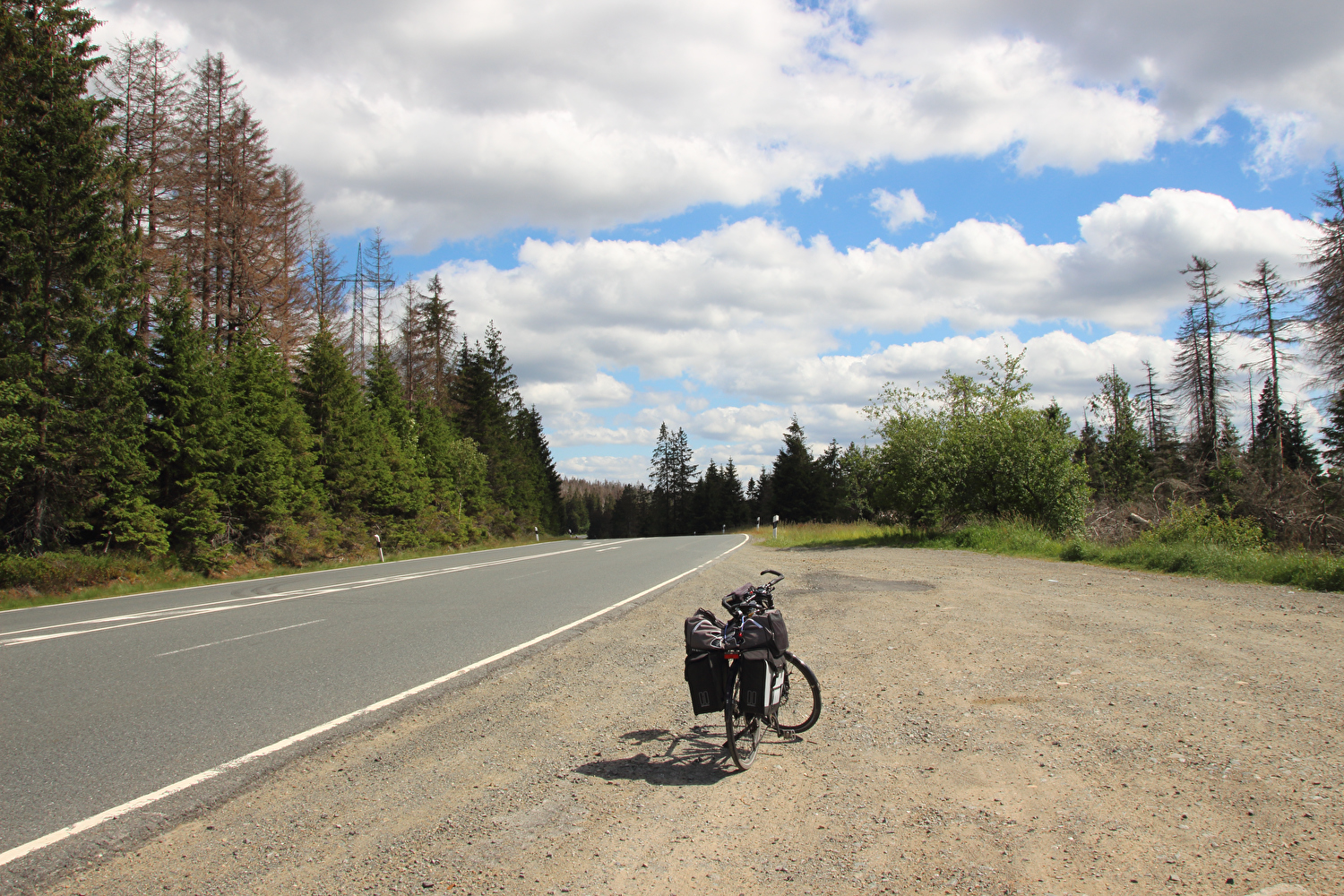 Beschreibung | Die Routenwahl dieser Viertagestour erfolgte aus mehreren Gründen. Zum einen sollte diese Tour reichlich Höhenmeter bergauf „auf der Straße“ enthalten. Zum anderen sollten Bahnan- und abreise kurz ausfallen, um vier Etappen mit Tageslänge fahren zu können. Zudem war Bahnfahren wegen des „Maskenballs“ (Pflicht zum Tragen einer Mund-Nase-Bedeckung) in den Zügen besonders unattraktiv. Bei der Routenwahl wurde in Kauf genommen, dass die beiden ersten Etappen bis auf Kleinigkeiten den am 22.06.2019 und 23.06.2019 gefahrenen Etappen entsprachen. Diese Etappe verlief bei trockenem Wetter und sehr starkem Südwestwind, der durch die Richtwirkung des Tals im Okertal von vorne blies. Auf dem Okerstausee erzeugte der Wind Wellen mit Schaumkronen. Das Wetter war nicht unfreundlich. Nachmittags verdichteten sich die Wolken aber zunehmend. Am Abend in Wernigerode fielen erste Regentropfen und deuteten einen Wetterwechsel an. Die L504 zwischen Altenau und Torfhaus war bei Altenau immer noch gesperrt, woraus sich eine ruhige Auffahrt nach Torfhaus ergab. Obwohl am westlichen Ortsausgang von Torfhaus auf diese Sperrung hingewiesen wurde, wollten es einige Kraftfahrer einfach nicht glauben: Also erstmal die Straße runter stinken und dann kurze Zeit später wieder hoch stinken – einfach nur dämlich. Im Hochharz stand nun noch viel mehr Totwald als im letzten Jahr, und das nur weil die Nationalparkverwaltung sich weigerte und nach wie vor weigert den Borkenkäfer zu bekämpfen. Dass toter Wald gefolgt von endlos öden Buchenwäldern, die schon die meisten norddeutschen Mittelgebirge dominieren, nicht gerade Besucher in den Harz lockt, scheint die Nationalparkverwaltung nicht zu interessieren oder aber genau das ist gewollt. |