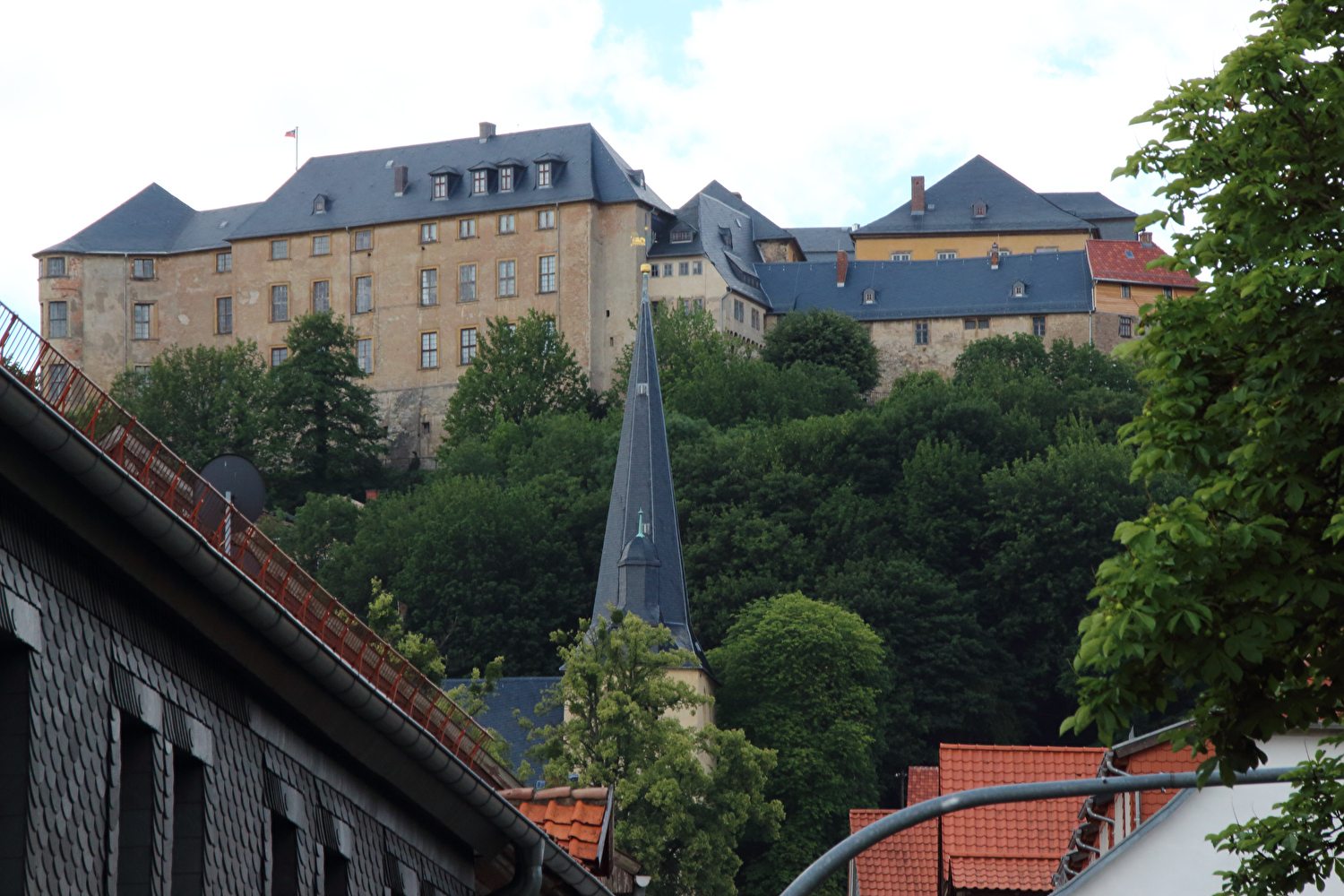 Zoom auf das Schloss Blankenburg, davor die Bergkirche St. Bartholomäus ![]() 300 dpi JPEG |