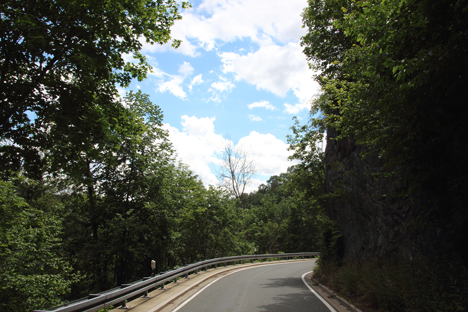 Beschreibung | Mit dieser Etappe gehörten die hohen Berge im Rahmen dieser Tour der Vergangenheit an. Überquert wurde der im Vergleich zum Hochharz deutlich niedrigere Südharz. Die Etappe hatte ein welliges Profil mit vier ausgeprägteren Sattelpunkten. Der erste stärkere Anstieg erfolgte in Blankenburg Richtung Cattenstedt. Von Wienrode erfolgte ein moderater, dafür aber lang gezogender Anstieg zur Passhöhe am Tresestein. Die Abfahrt nach Treseburg ließ etwas Bergfahrgefühl aufkommen, da die dort im steilen Hang verlaufende Straße notwendigerweise als Bergstraße trassiert ist. Nach der Mittagspause in Treseburg erfolgte die wegen der gesperrten, aber für Fahrradfahrer und Fußgänger passierbaren Straße sehr ruhige Fahrt durch das nur leicht ansteigende Luppbodetal. In Allrode zog die Steigung vom „Unterdorf“ zum „Oberdorf“ merklich an. Oben angekommen wirkt die Landschaft wie eine Hochebene. Die Bewölkung hatte sich im Verlauf der Etappe immer mehr verdichtet. In Breitenstein war dann im Westen die aufziehende Regenfront zu sehen. Zu Beginn der Abfahrt Richtung Stolberg setzte der Regen ein und verstärkte sich rasch. Deshalb gibt es von dieser Abfahrt auch keine Fotos, was in Stolberg, wo die historische Bausubstanz nicht einer Verbreiterung der Durchgangsstraße geopfert wurde, etwas ärgerlich war. Im Thyratal zwischen Stolberg und Rottleberode waren die Lichtverhältnisse zu schlecht. Ab Rottleberode rückte dann der Kyffhäuser, das Bergziel der Etappe am folgenden Tag, ins Blickfeld. Der Regen endete erst in Kelbra. |
