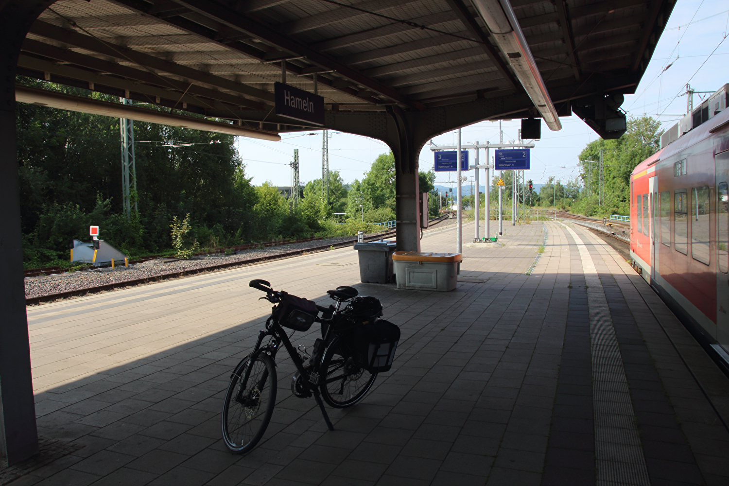 Beschreibung | Diese Tour war die letzte vor der geplanten Alpentour. Passend dazu bot die Fahrt auf der als Bergstraße trassierten Passstraße von Rühle nach Lütgenade durch die Rühler Schweiz einen allerersten zarten Vorgeschmack auf die planmäßig kommenden Pässe, dies allerdings auch im Hinblick auf den Motorradverkehr. Um Stinkeverkehr auszuweichen, wurde zwischen Bodenwerder und Rühle sowie zwischen Forst und Holzminden auf dem Weserradweg gefahren. Die Tour verlief bei sonnigem und recht warmem Wetter. Die Bahnabreise brachte neben dem derzeit obligatorischen Maskenball im Zug noch ein weiteres Ärgernis. Der Zug fuhr mit 12 Minuten Verspätung aus Holzminden ab. Dadurch wurde der Anschluss in Kreiensen verpasst. Um nicht eine knappe Stunde auf dem öden Bahnhof in Kreiensen zu verbringen, wurde dort eine kurze Runde gefahren. Für Fotos war es dabei schon zu dunkel. Außerdem bestätigte diese Runde: „In Kreiensen steigt man nicht aus sondern um.“ |