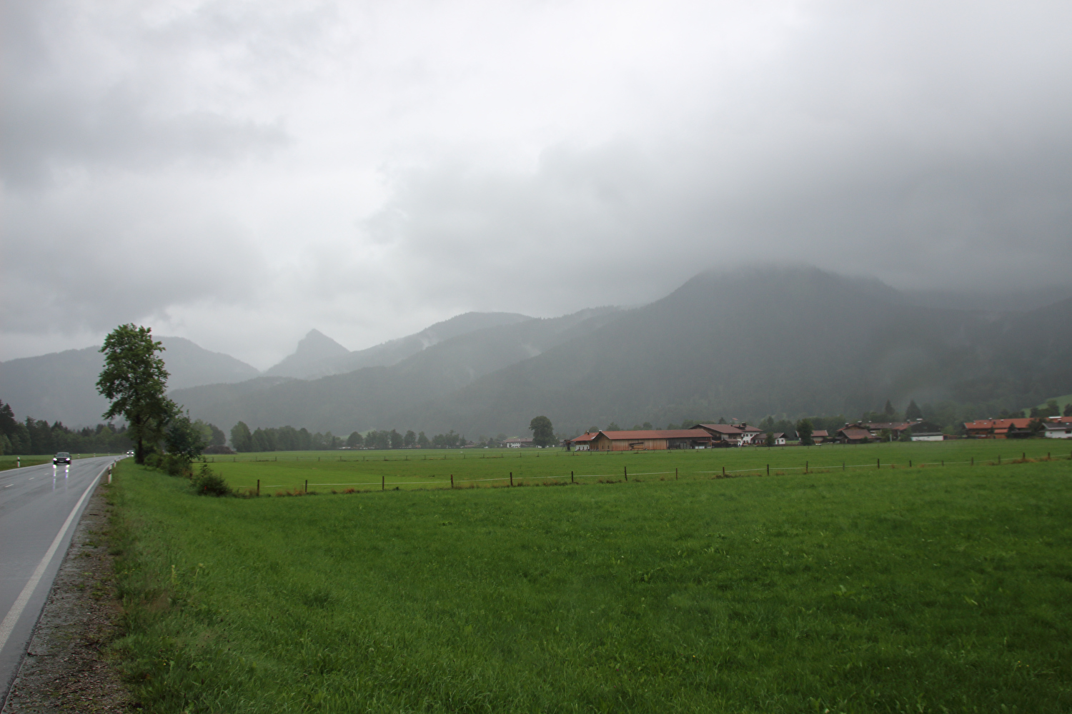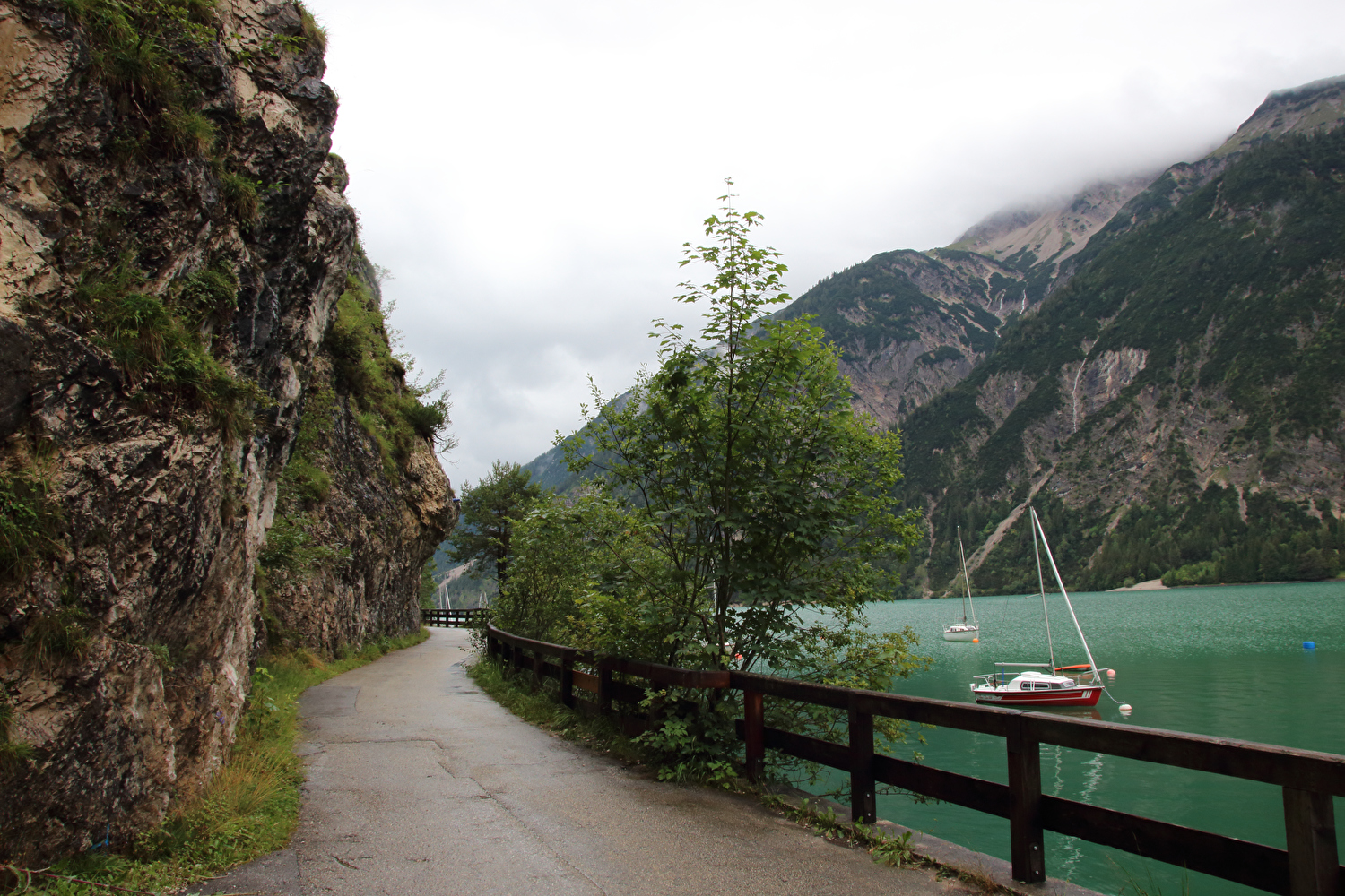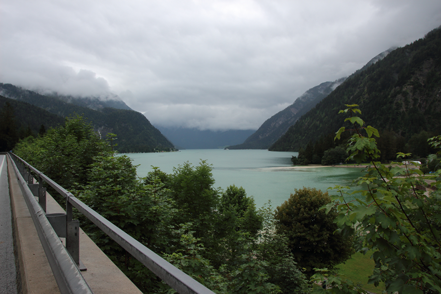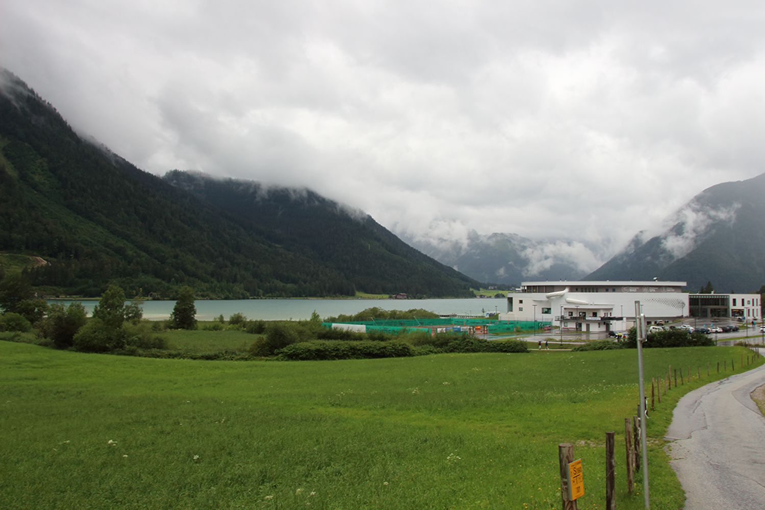 Beschreibung | Seit dem Vorabend fiel ergiebiger Dauerregen. Ein Ende desselben war an diesem Tag nicht absehbar. Das Gepäck war regenfest verstaut und die Kamera steckte in einem Gefrierbeutel, um überhaupt ein paar Fotos unabhängig von irgendwelchen Unterständen machen zu können. Da es zudem recht kalt war, wurde mit Ausnahme der Regenüberhandschuhe in norddeutscher Trachtenkleidung (Regen-Helmüberzieher, Regenjacke, Regenhose, Regengamaschen) gefahren, was insbesondere bergauf nicht zu den Spaßbringern zählte. Am Südufer des Tegernsees fiel der Blick auf die Mündung der Weißach, dem größten Zufluss des Tegernsees. Gefühlt begann hier mit dem Verlassen des Südufers des Tegernsees die Alpenüberquerung. Topografisch betrachtet hatte sie bereits am Vortag am Westufer des Tegernsees bei Reit begonnen. Mit dem Achenpass wurde der erste Bergpass der Tour erreicht. Allerdings bildete dieser nicht das „Dach der Etappe“, da Maurach noch etwas höher liegt. Etwa 1 km südlich des Achenpasses wurde die Grenze von Deutschland nach Österreich überquert. Mehr als ein paar Schilder beiderseits der Grenze wiesen nicht darauf hin, dass gerade eine Staatsgrenze überquert wurde. Am Achensee steht am Westufer ein Leuchtturm. Das ist nun schon der zweite Leuchtturm in den Alpen nach dem Leuchtturm auf dem Oberalppass. Leuchttürme gehören doch eigentlich ans Meer, und das ist vom Achensee wie auch vom Oberalppass weit weg. Zweifelsohne ist es einfacher einen Leuchtturm in den Alpen zu bauen als Berge etwa an der Nordsee. Von Maurach aus fällt die Straße ins Inntal steil ab mit maximalem Gefälle von 16 % und längeren Abschnitten mit Gefälle über 10 %. Die Straße durchquert dabei Jenbach, dass vom Talboden des Inntals aus in den Hang aufsteigt. Im Inntal wurde auf den Inn-Radweg gewechselt. Der verläuft zwischen Jenbach und Stans allerdings wenig romantisch direkt neben der Inntal Autobahn. Einige Kilometer vor dem Etappenziel hörte es endlich auf zu regnen. Diese zum Einrollen gedachte Etappe verlief wegen des Dauerregens weniger entspannt als angedacht, und Bergpanorama fiel auch aus. |