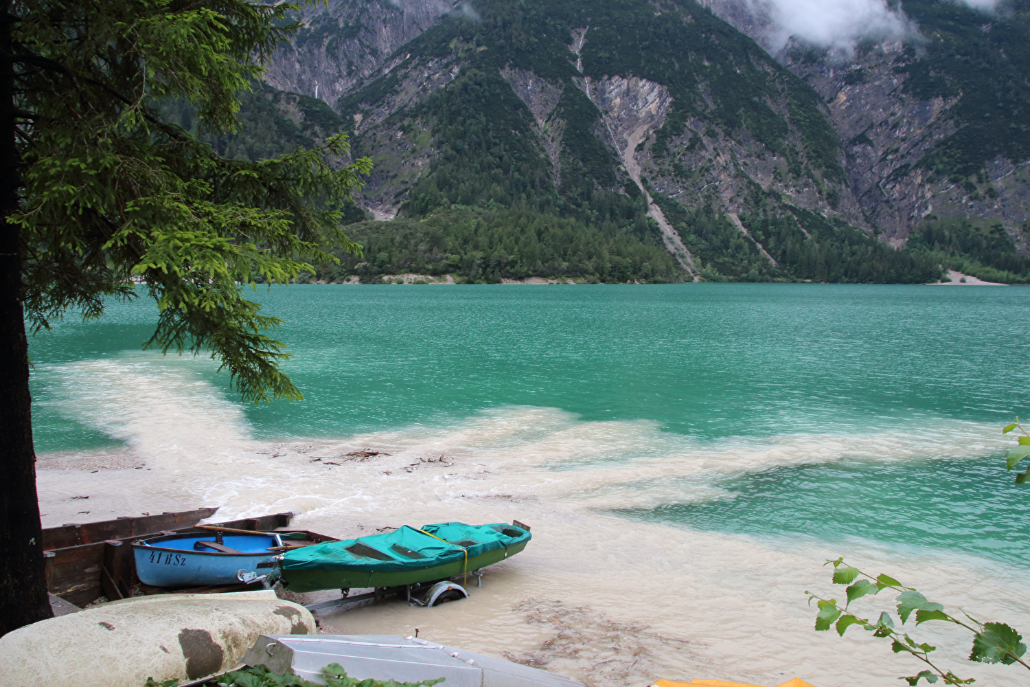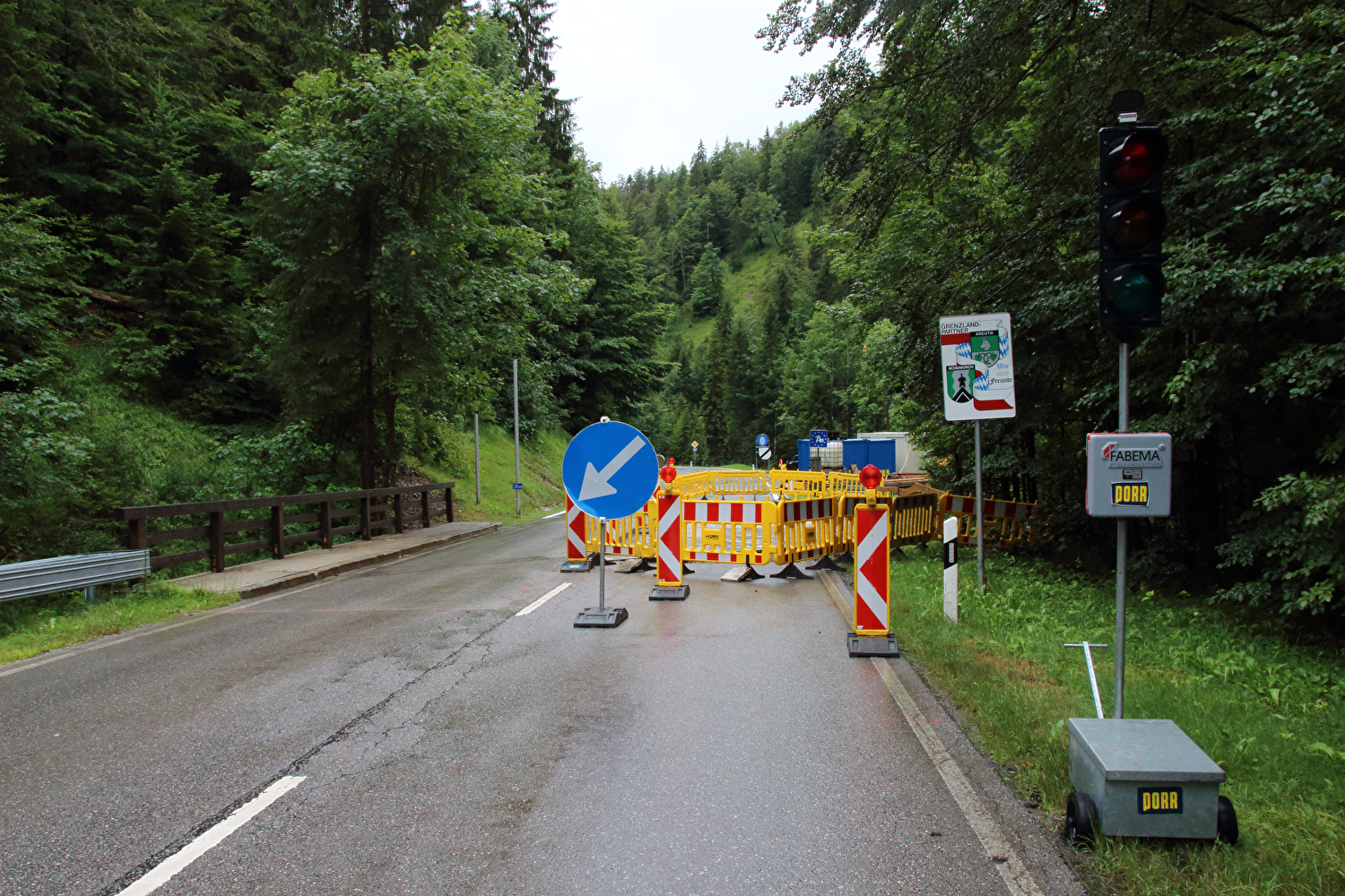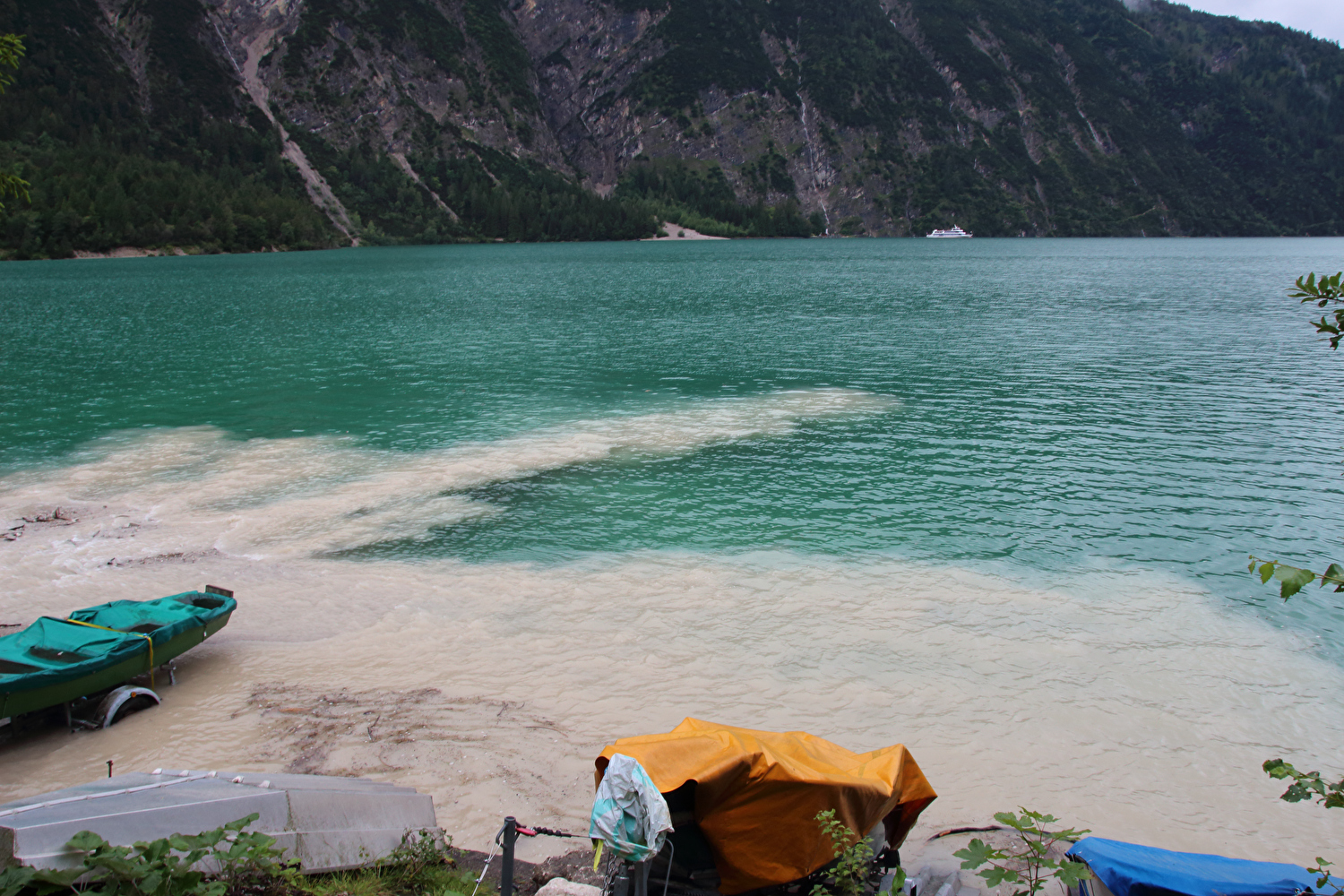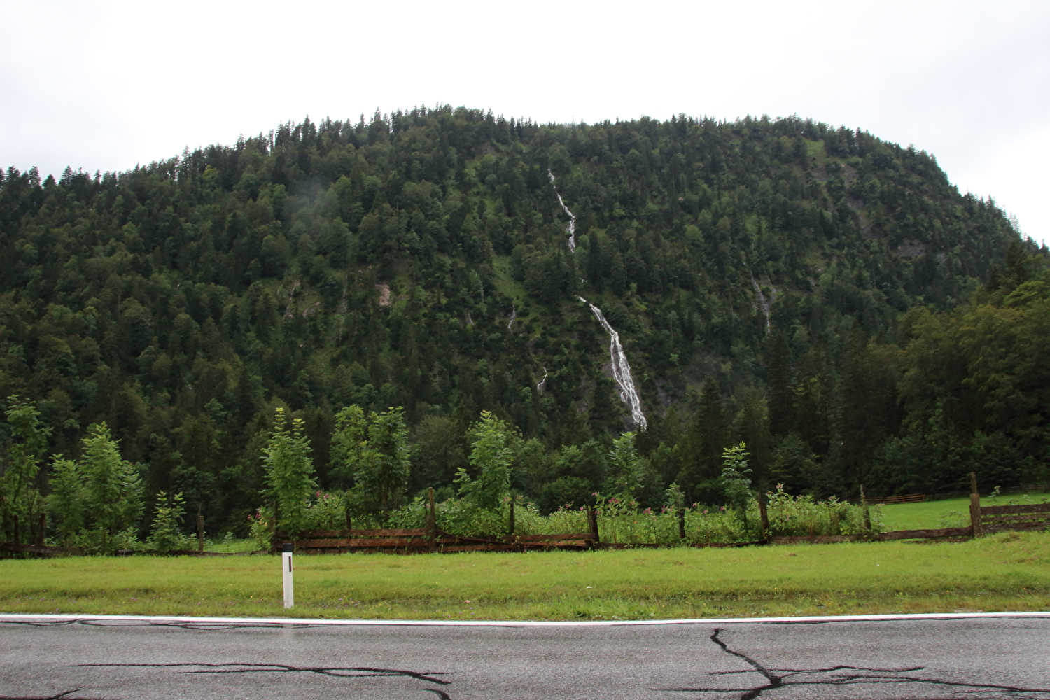 Beschreibung | Seit dem Vorabend fiel ergiebiger Dauerregen. Ein Ende desselben war an diesem Tag nicht absehbar. Das Gepäck war regenfest verstaut und die Kamera steckte in einem Gefrierbeutel, um überhaupt ein paar Fotos unabhängig von irgendwelchen Unterständen machen zu können. Da es zudem recht kalt war, wurde mit Ausnahme der Regenüberhandschuhe in norddeutscher Trachtenkleidung (Regen-Helmüberzieher, Regenjacke, Regenhose, Regengamaschen) gefahren, was insbesondere bergauf nicht zu den Spaßbringern zählte. Am Südufer des Tegernsees fiel der Blick auf die Mündung der Weißach, dem größten Zufluss des Tegernsees. Gefühlt begann hier mit dem Verlassen des Südufers des Tegernsees die Alpenüberquerung. Topografisch betrachtet hatte sie bereits am Vortag am Westufer des Tegernsees bei Reit begonnen. Mit dem Achenpass wurde der erste Bergpass der Tour erreicht. Allerdings bildete dieser nicht das „Dach der Etappe“, da Maurach noch etwas höher liegt. Etwa 1 km südlich des Achenpasses wurde die Grenze von Deutschland nach Österreich überquert. Mehr als ein paar Schilder beiderseits der Grenze wiesen nicht darauf hin, dass gerade eine Staatsgrenze überquert wurde. Am Achensee steht am Westufer ein Leuchtturm. Das ist nun schon der zweite Leuchtturm in den Alpen nach dem Leuchtturm auf dem Oberalppass. Leuchttürme gehören doch eigentlich ans Meer, und das ist vom Achensee wie auch vom Oberalppass weit weg. Zweifelsohne ist es einfacher einen Leuchtturm in den Alpen zu bauen als Berge etwa an der Nordsee. Von Maurach aus fällt die Straße ins Inntal steil ab mit maximalem Gefälle von 16 % und längeren Abschnitten mit Gefälle über 10 %. Die Straße durchquert dabei Jenbach, dass vom Talboden des Inntals aus in den Hang aufsteigt. Im Inntal wurde auf den Inn-Radweg gewechselt. Der verläuft zwischen Jenbach und Stans allerdings wenig romantisch direkt neben der Inntal Autobahn. Einige Kilometer vor dem Etappenziel hörte es endlich auf zu regnen. Diese zum Einrollen gedachte Etappe verlief wegen des Dauerregens weniger entspannt als angedacht, und Bergpanorama fiel auch aus. |