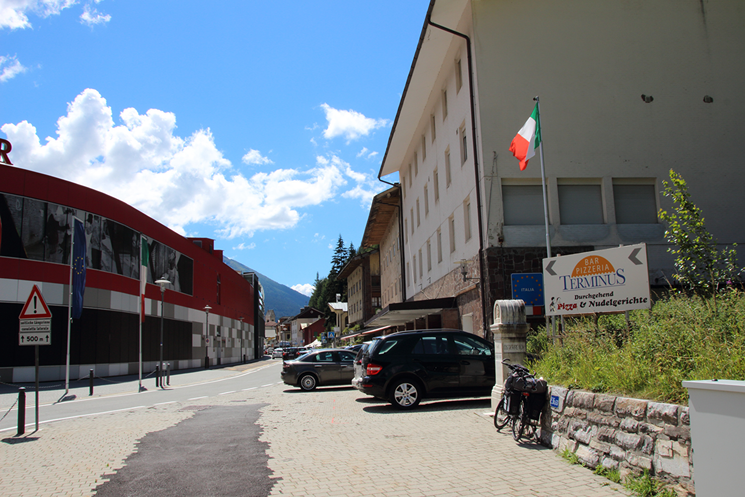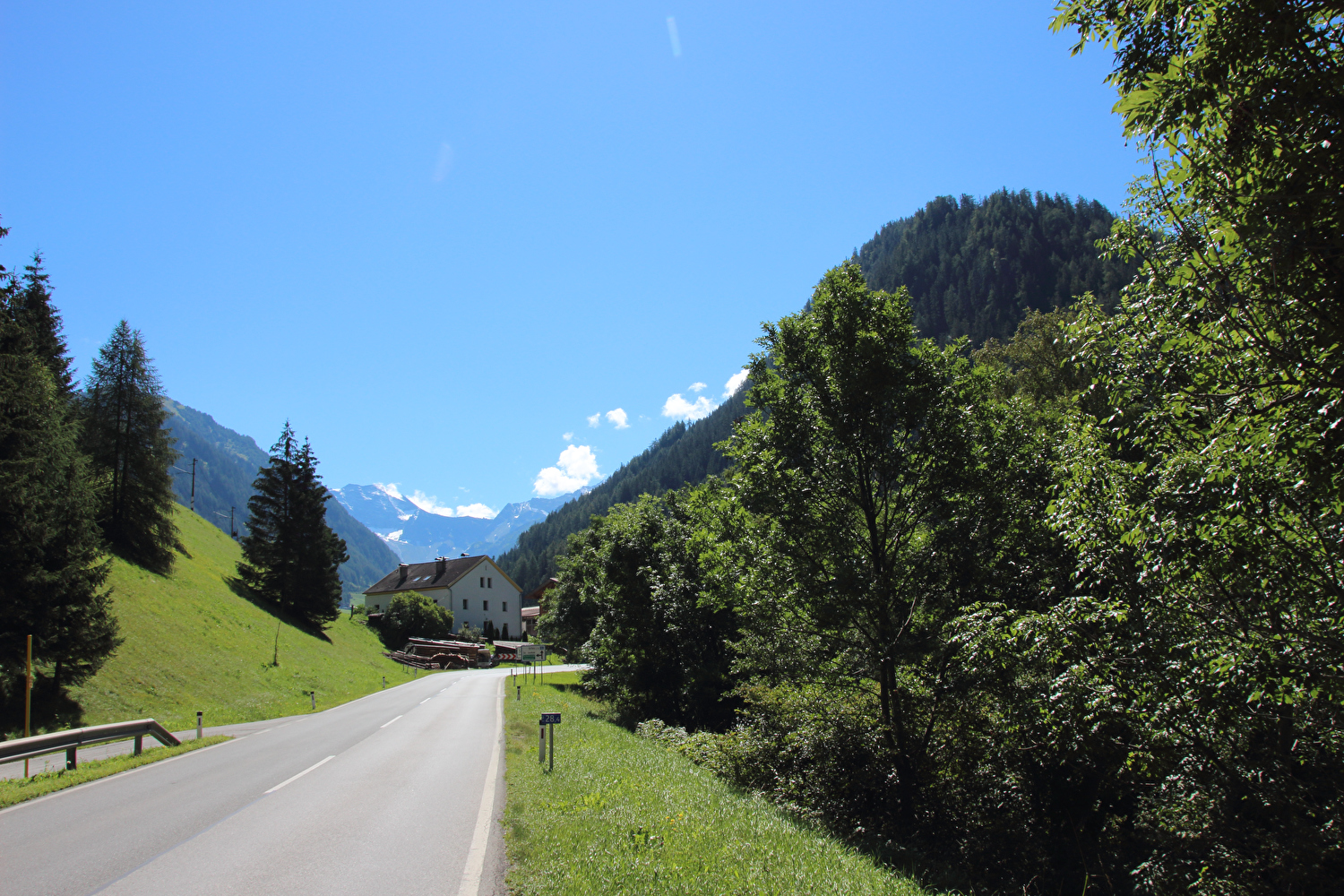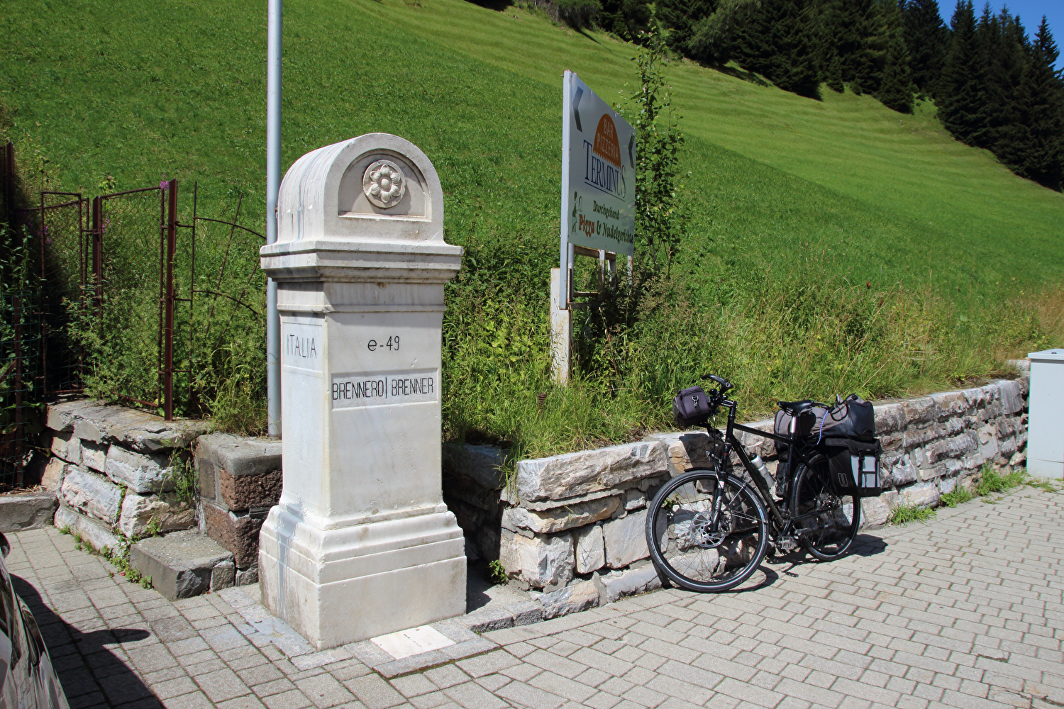 Beschreibung | Das Wetter hielt. Bei fast wolkenlosem Himmel verlief diese Etappe. Wie schon zwei Tage zuvor bildete die Passhöhe des überquerten Bergpasses, hier der Brennerpass nicht das „Dach der Etappe“, da mit der Bergankunft in Kalch ein höher gelegener Ort erreicht wurde. Der Bernnerpass wurde schon im Rahmen mehrerer Alpentouren überquert. Dies liegt darin begründet, dass er den Alpenhauptkamm überquert und zudem sehr zentral liegt. Das äußert sich auch darin, dass über den Brennerpass eine Straße, eine Autobahn und eine Eisenbahnlinie – noch mit Nah-, Fern- und Güterverkehr, nach der Fertigstellung und Inbetriebnahme des Brenner-Basistunnels wohl nur noch mit Nahverkehr – führen. Zudem beginnt auf der Passhöhe auf italinischer Seite ein Fernradweg. Eine Durchbindung dieses Fernradweges nach Norden scheitert am sehr begrenzten Platz im Wipptal nördlich des Brennerpasses. Das Wipptal ist etwas seltsam, denn hydrogeografisch sind es zwei Täler. Der Abschnitt zwischen Brennerpass und Innsbruck wird auch als Unteres Wipptal oder Silltal bezeichnet, der Abschnitt zwischen Brennerpass und Franzenfeste als Oberes Wipptal oder Oberes Eisacktal. Über den Brennerpass verläuft die Inn-Etsch-Wasserscheide. Die Sill und ihre Zuflüsse entwässern über den Inn und die Donau ins Schwarze Meer, die Eisack und ihre Zuflüsse über die Etsch in die Adria. Ab der Brennerpasshöhe wurde auf den Brennerradweg gewechselt, der zwischen Passhöhe und Vallming streckenweise auf der stillgelegten alten Trasse der Brennerbahn, welche diesen Bereich nunmehr in einem Tunnel umfährt, geführt wird. Bei Vallming erreicht der Radweg den Talboden des Pflerschtals. Ab hier wurde bis Sterzing auf die Straße gewechselt. Die bis Gossensaß verkehrsarme Straße verläuft auf dem Talboden, steigt in Gossensaß nur wenige Meter zur Brennerstaatsstraße an und diese fällt dann durchgängig bis Sterzing ab. Der Radweg hingegen weißt zwischen Vallming und Gossensaß ein welliges Profil auf und hat zwischen Gossensaß und Sterzing bei Ried eine üble Gegensteigung. Der Radweg weist in beiden Richtungen nach Ried Steigungen bis zu 17 % auf. So sollte ein Fernradweg nicht trassiert werden! In Sterzing wieder dem Radweg folgend führte die Fahrt mitten durch die Innenstadt. Am Südrand von Sterzing wurde der Radweg Richtung Gasteig verlassen, wo dann der Schlussanstieg der Etappe auf der Jaufenpassstraße bis zum Etappenziel Kalch begann. |