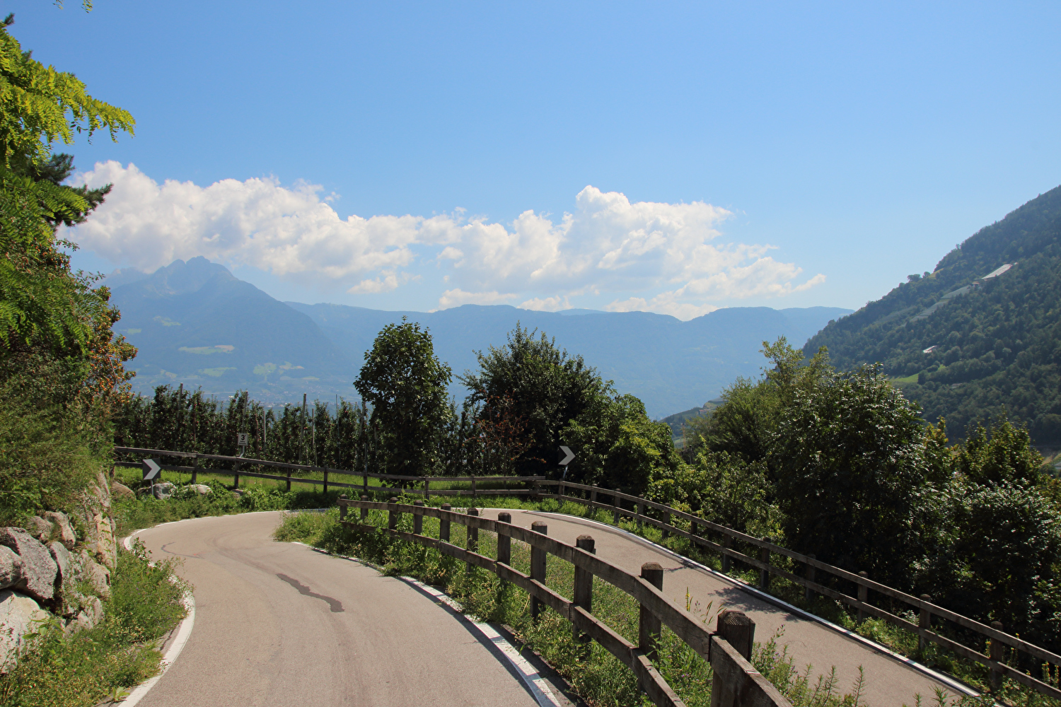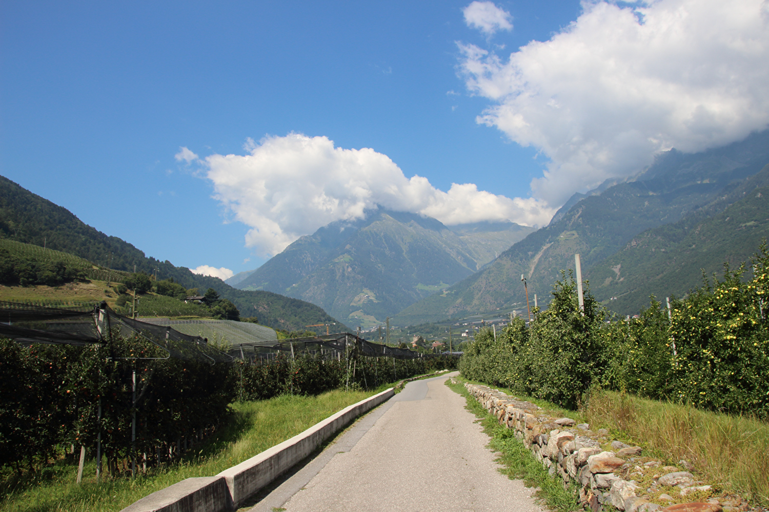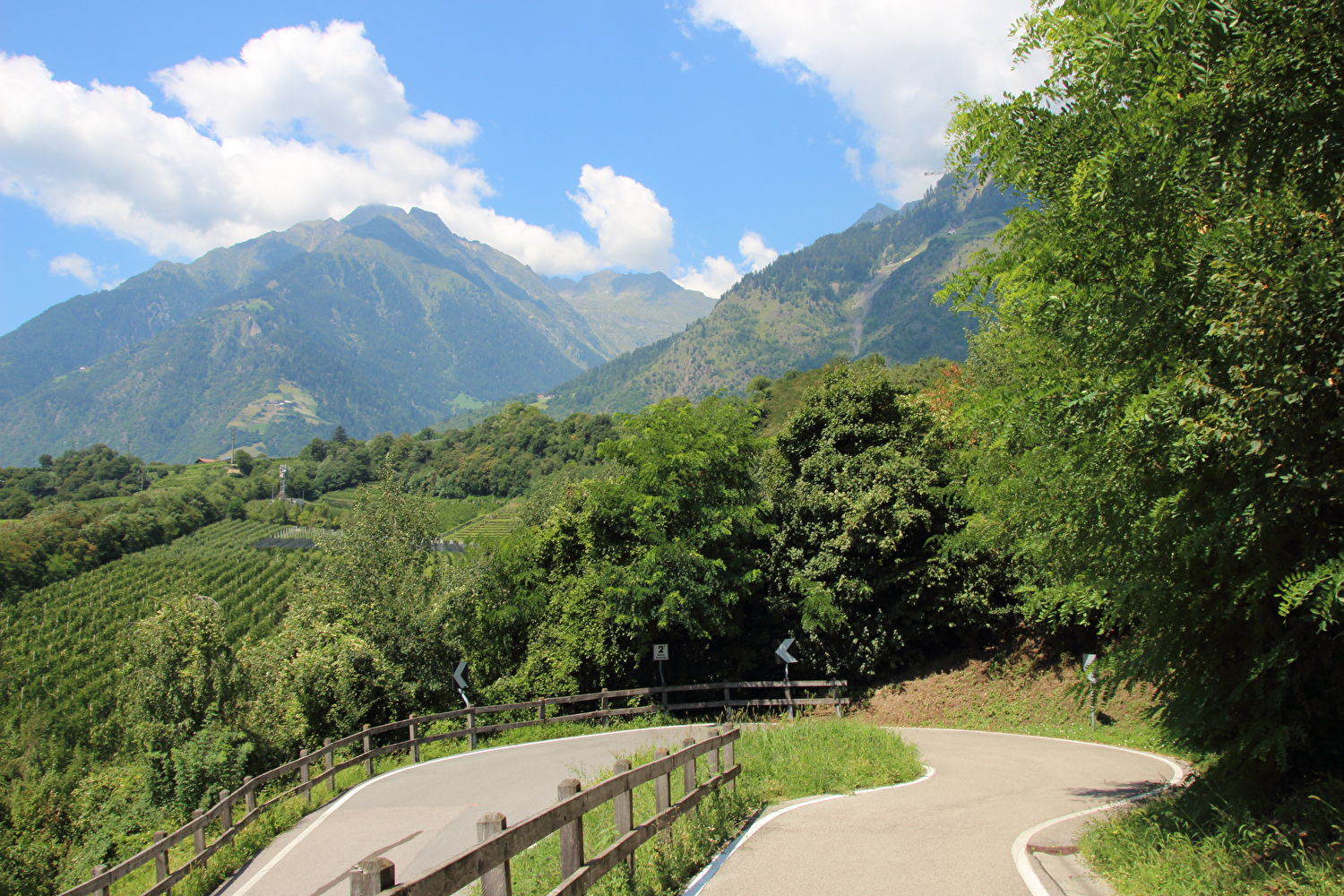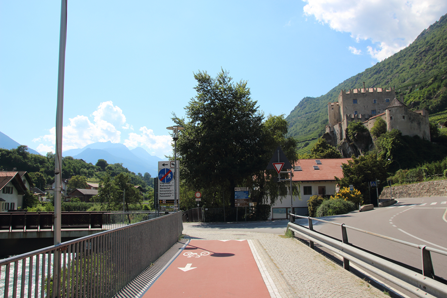 Route | Riffian (495) – Meran (325) – Algund (350) – Töll (500) – Rabland (515) – Plaus (519) – Naturns (533) – Staben (560) – Kastellbell (587) – Latsch (639) – Goldrain (650) – Göflan (735) – Laas (868) |