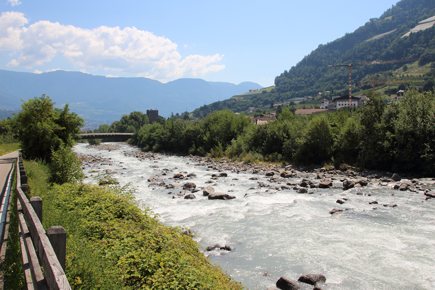 Etschtal-Radweg und Etsch westlich von Algund, Blick flussaufwärts … ![]() 300 dpi JPEG |