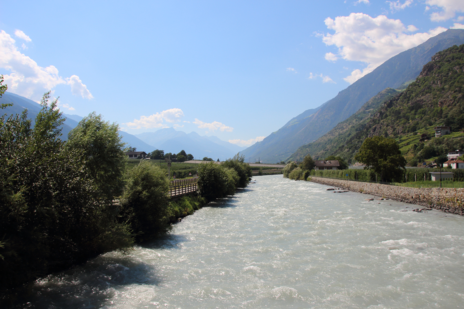 die Etsch im Ort Töll, Blick flussaufwärts ![]() 300 dpi JPEG |