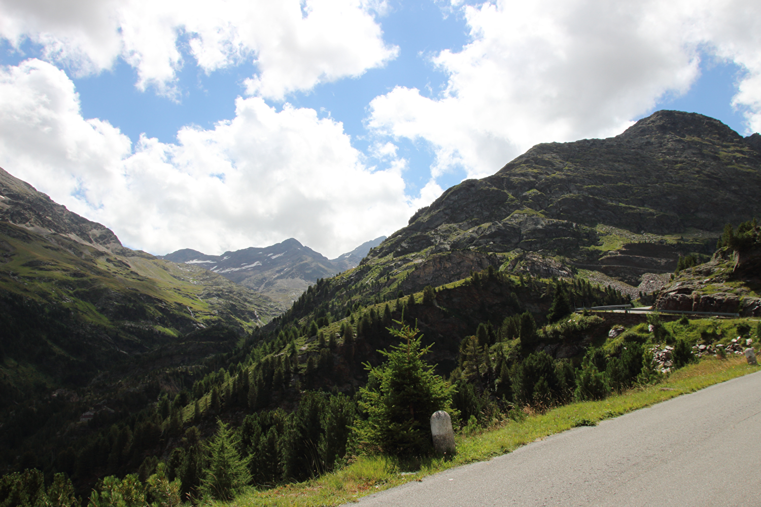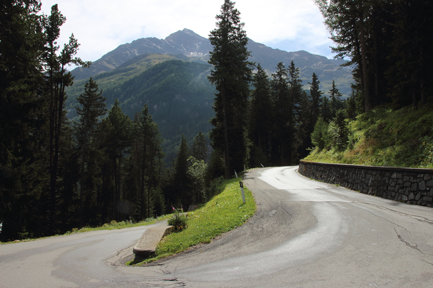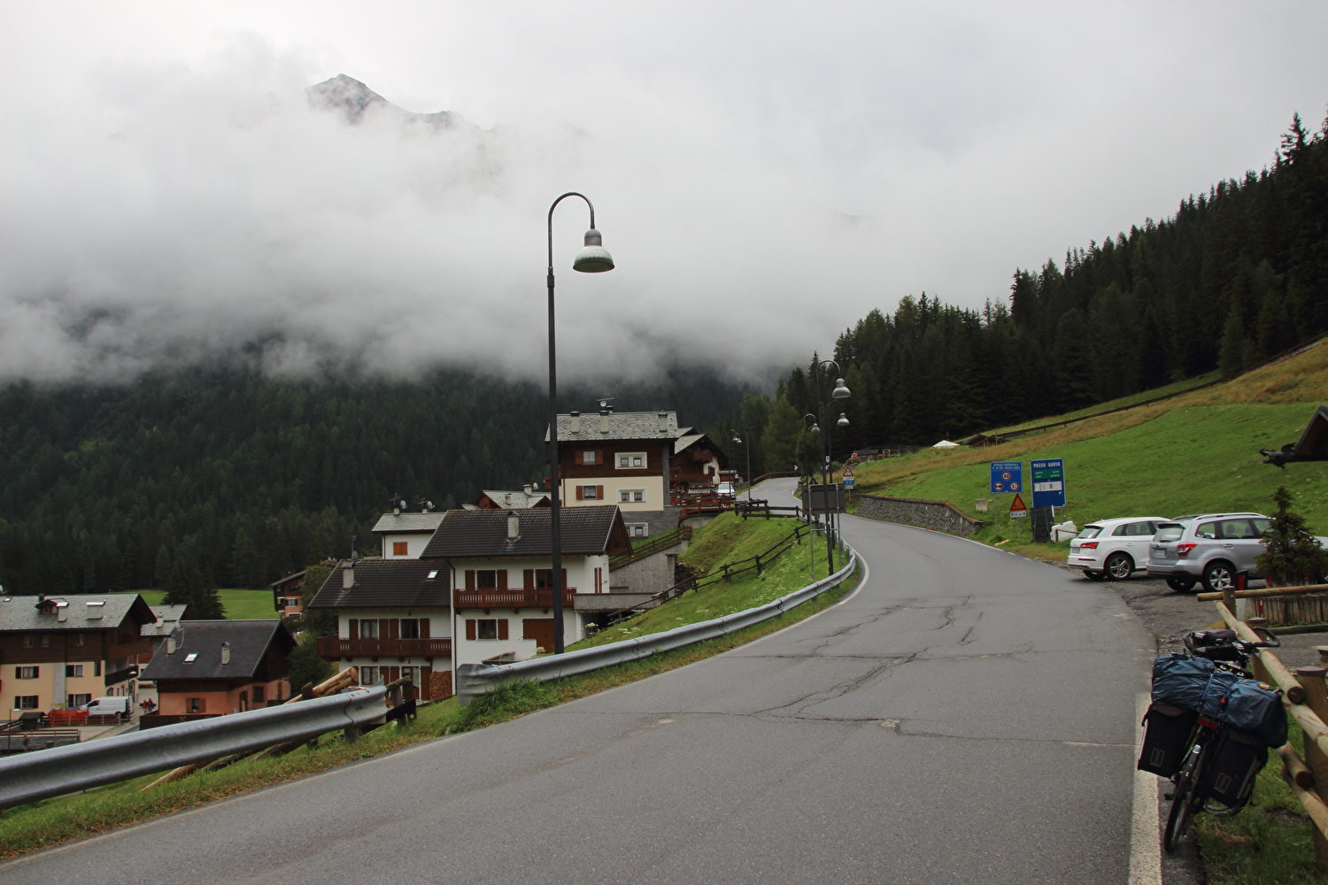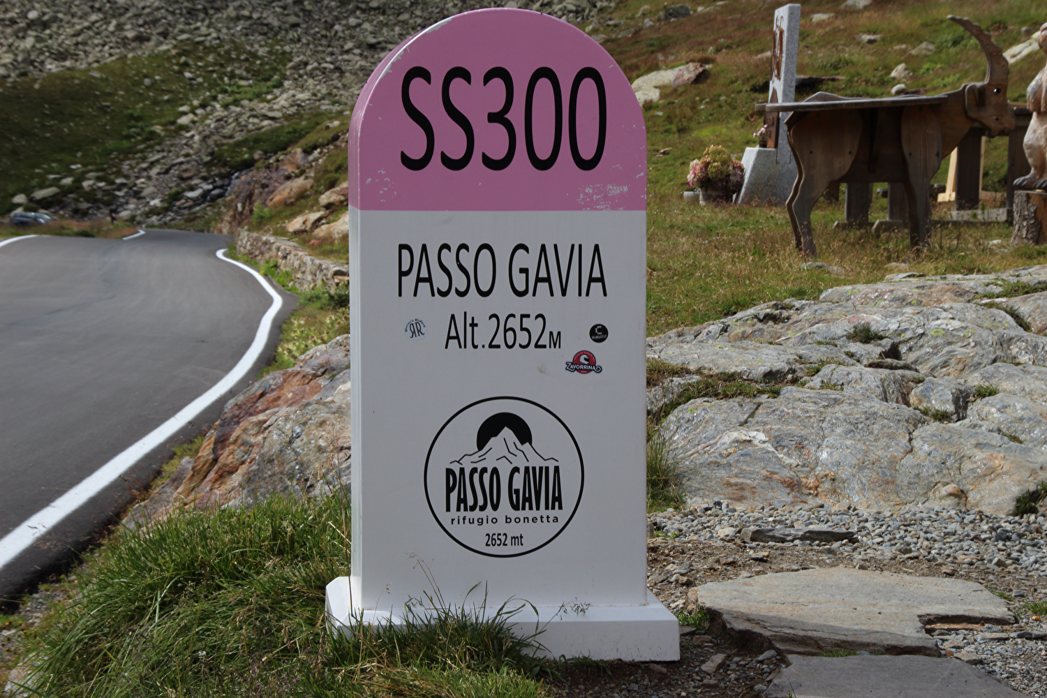 Beschreibung | Diese Etappe führte über den letzten über 2000 Meter hoch gelegenen Bergpass im Rahmen dieser Tour und auch ein letztes Mal in Regionen oberhalb der montanen Waldgrenze und montanen Baumgrenze. Die Strecke dieser Etappe war bereits vor drei Jahren schon einmal gefahren worden. Anders als damals lag auf dem Passo di Gavia dieses Mal nicht das „Dach der Tour“, denn das war im Rahmen dieser Tour bereits mit dem Passo dello Stelvio überquert worden. Am Morgen sah es nach Regen aus. Daher wurden Gepäck und Kamera auf Regenfahrt vorbereitet, aber für die Bergauffahrt noch keine Regenkleidung angelegt. Während des Anstiegs klarte es aber etwas auf und blieb vor allem trocken. Der eine oder andere Sturzbach (italienisch: Torrente) führte noch das Regenwasser der Nacht zu Tal. Ab Santa Caterina Valfurva windet sich die Nordrampe des Passo di Gavia mit einer Kehrengruppe bestehend aus 10 Kehren aus dem Valfurva in Richtung Val di Gavia. Danach folgt auf der nun kurvenärmeren Strecke nur noch im Bereich der Malga del'Alpe eine lang gezogene Kehre, die mit der Ponte del'Alpe den Torrente del'Alpe überquert. In Bereich der Malga del'Alpe überschreitet die Nordrampe die montane Waldgrenze. Nach der Kehre folgt das einzige etwas längere Steilstück mit einer durchschnittlichen Steigung von 11 %. Die Nordrampe überschreitet nun auch die montane Baumgrenze. Von dort bis zur Passhöhe verläuft die Nordrampe mit sehr moderater Steigung. Auf der Passhöhe hält sich hartnäckig die falsche Höhenangabe „2652 m“, obwohl die Passhöhe auf 2621 m s.l.m. liegt. Der Zustand der Strada Provinciale 29 del Gavia lässt streckenweise sehr zu wünschen übrig. Anders als die Passhöhe des Passo dello Stelvio war die Passhöhe des Passo di Gavia nicht überlaufen. Der Andrang hielt sich in überschaubaren Grenzen. Während des Aufenthalts auf der Passhöhe zog es sich zu und wurde mit nur noch +15 °C recht frisch. Nun kamen für die Abfahrt doch noch die bis dahin ungenutzt mitgeführten langen Klamotten inklusive Sturmhaube und Regenjacke als Windschutz zum Einsatz. Mit dieser Abfahrt folgte im Rahmen der Tour die dritte Abfahrt mit reichlich Höhenmetern bergab und entsprechend viel Arbeit für die Bremsen. Von der Passhöhe nach Ponte di Legno geht es 1363 Höhenmeter bergab. In der Abfahrt wurden im Rahmen dieser Tour zum letzten Mal die montane Baumgrenze und die montane Waldgrenze unterschritten. Damit endete der hochalpine Teil dieser Tour. Sehr ungewöhnlich war, dass die Temperatur von der Passhöhe bis zur die montanen Waldgrenze um gerade einmal 2 K von +15 °C auf +17 °C stieg. Erst sehr viel weiter unten mit der Annäherung ans Valcamonica stieg die Temperatur merklich an. In Ponte di Legno fiel während des Abendessens ein Regenschauer als Vorgeschmack auf die folgende Etappe. |