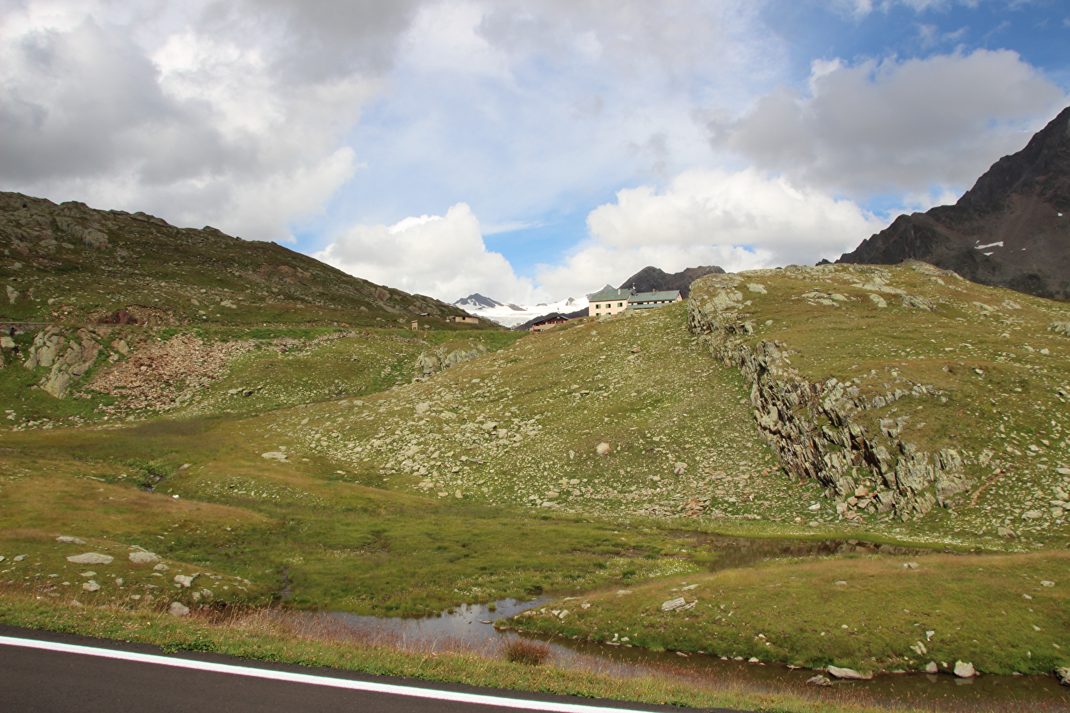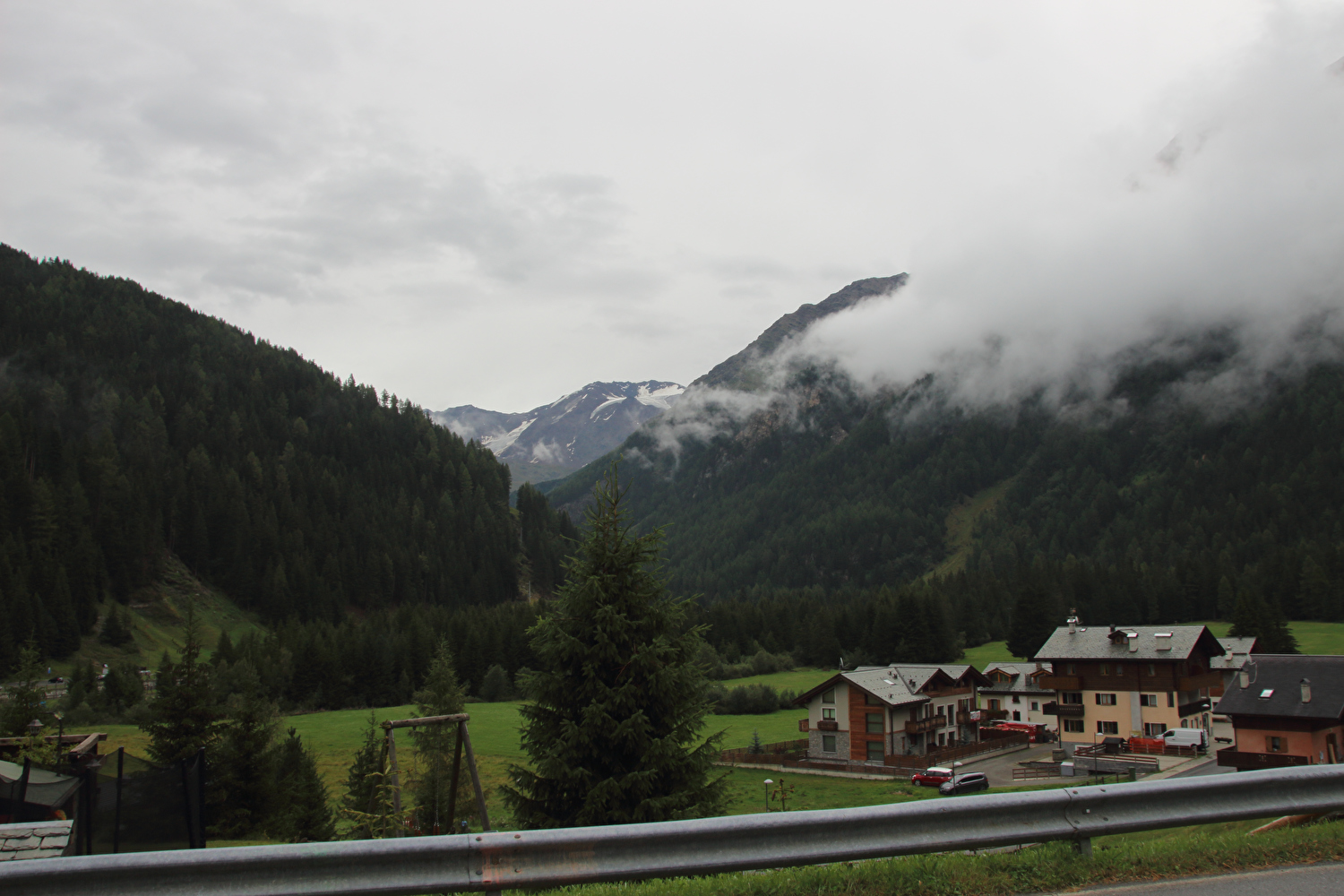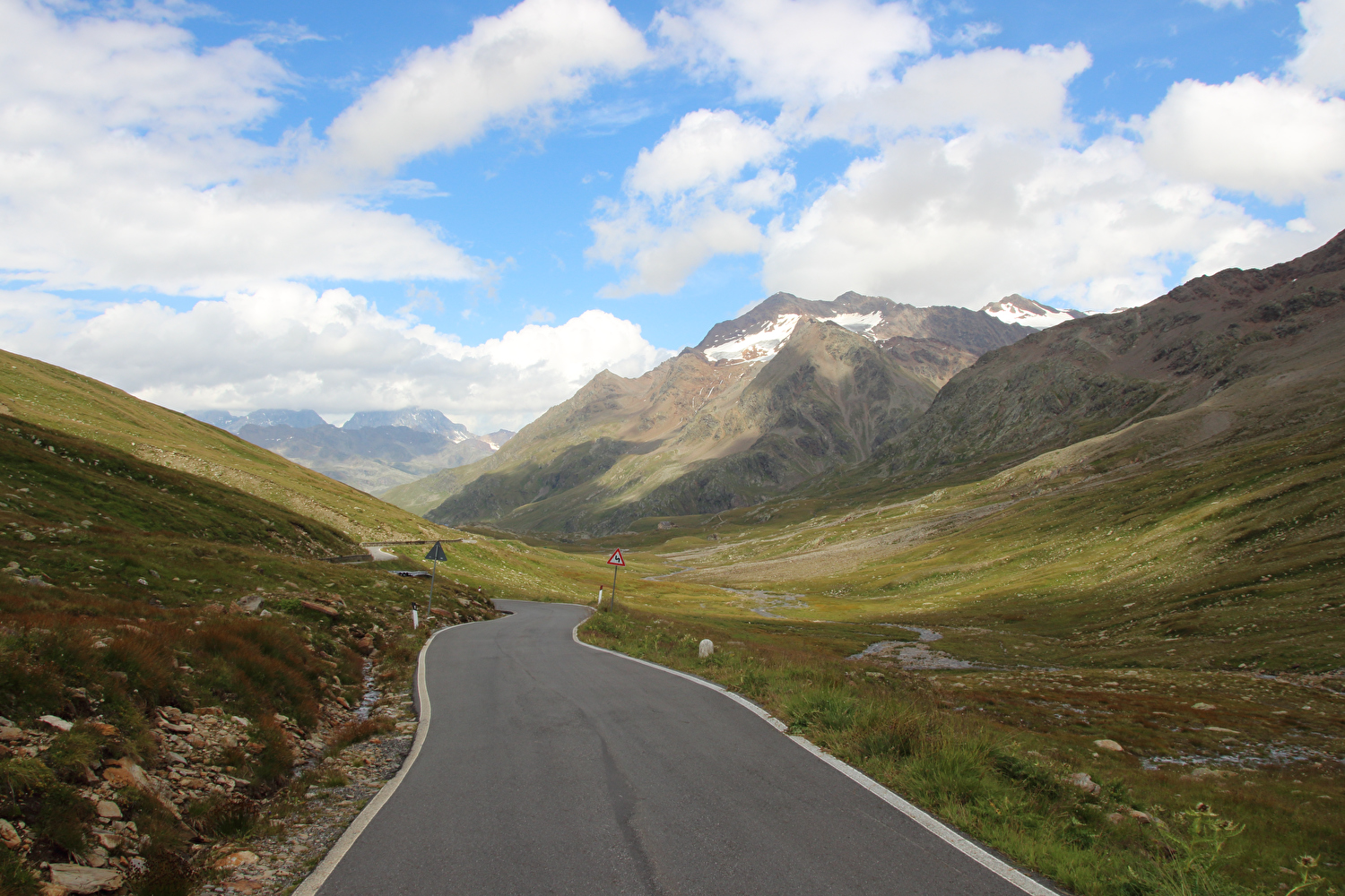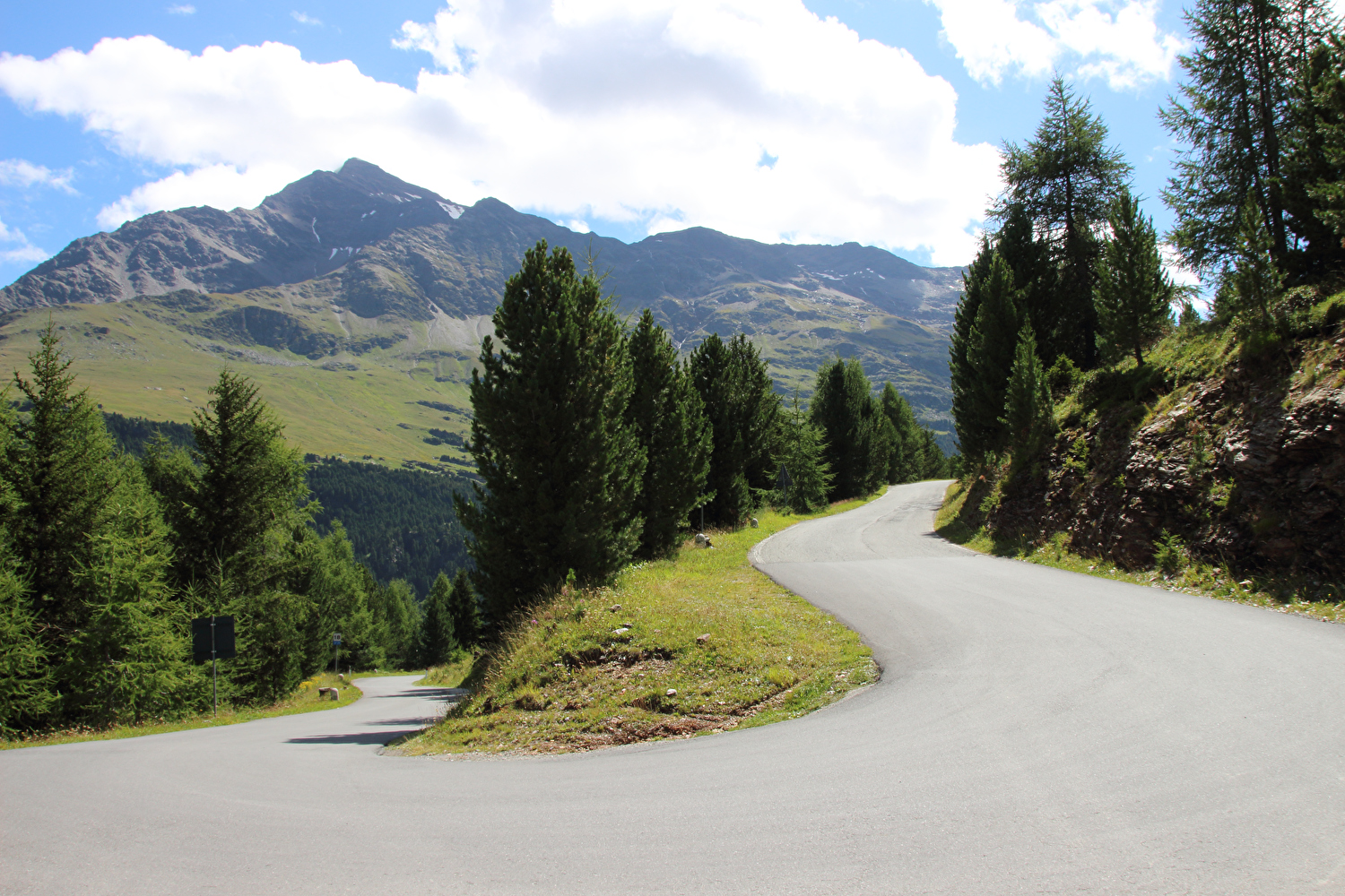 Beschreibung | Diese Etappe führte über den letzten über 2000 Meter hoch gelegenen Bergpass im Rahmen dieser Tour und auch ein letztes Mal in Regionen oberhalb der montanen Waldgrenze und montanen Baumgrenze. Die Strecke dieser Etappe war bereits vor drei Jahren schon einmal gefahren worden. Anders als damals lag auf dem Passo di Gavia dieses Mal nicht das „Dach der Tour“, denn das war im Rahmen dieser Tour bereits mit dem Passo dello Stelvio überquert worden. Am Morgen sah es nach Regen aus. Daher wurden Gepäck und Kamera auf Regenfahrt vorbereitet, aber für die Bergauffahrt noch keine Regenkleidung angelegt. Während des Anstiegs klarte es aber etwas auf und blieb vor allem trocken. Der eine oder andere Sturzbach (italienisch: Torrente) führte noch das Regenwasser der Nacht zu Tal. Ab Santa Caterina Valfurva windet sich die Nordrampe des Passo di Gavia mit einer Kehrengruppe bestehend aus 10 Kehren aus dem Valfurva in Richtung Val di Gavia. Danach folgt auf der nun kurvenärmeren Strecke nur noch im Bereich der Malga del'Alpe eine lang gezogene Kehre, die mit der Ponte del'Alpe den Torrente del'Alpe überquert. In Bereich der Malga del'Alpe überschreitet die Nordrampe die montane Waldgrenze. Nach der Kehre folgt das einzige etwas längere Steilstück mit einer durchschnittlichen Steigung von 11 %. Die Nordrampe überschreitet nun auch die montane Baumgrenze. Von dort bis zur Passhöhe verläuft die Nordrampe mit sehr moderater Steigung. Auf der Passhöhe hält sich hartnäckig die falsche Höhenangabe „2652 m“, obwohl die Passhöhe auf 2621 m s.l.m. liegt. Der Zustand der Strada Provinciale 29 del Gavia lässt streckenweise sehr zu wünschen übrig. Anders als die Passhöhe des Passo dello Stelvio war die Passhöhe des Passo di Gavia nicht überlaufen. Der Andrang hielt sich in überschaubaren Grenzen. Während des Aufenthalts auf der Passhöhe zog es sich zu und wurde mit nur noch +15 °C recht frisch. Nun kamen für die Abfahrt doch noch die bis dahin ungenutzt mitgeführten langen Klamotten inklusive Sturmhaube und Regenjacke als Windschutz zum Einsatz. Mit dieser Abfahrt folgte im Rahmen der Tour die dritte Abfahrt mit reichlich Höhenmetern bergab und entsprechend viel Arbeit für die Bremsen. Von der Passhöhe nach Ponte di Legno geht es 1363 Höhenmeter bergab. In der Abfahrt wurden im Rahmen dieser Tour zum letzten Mal die montane Baumgrenze und die montane Waldgrenze unterschritten. Damit endete der hochalpine Teil dieser Tour. Sehr ungewöhnlich war, dass die Temperatur von der Passhöhe bis zur die montanen Waldgrenze um gerade einmal 2 K von +15 °C auf +17 °C stieg. Erst sehr viel weiter unten mit der Annäherung ans Valcamonica stieg die Temperatur merklich an. In Ponte di Legno fiel während des Abendessens ein Regenschauer als Vorgeschmack auf die folgende Etappe. |